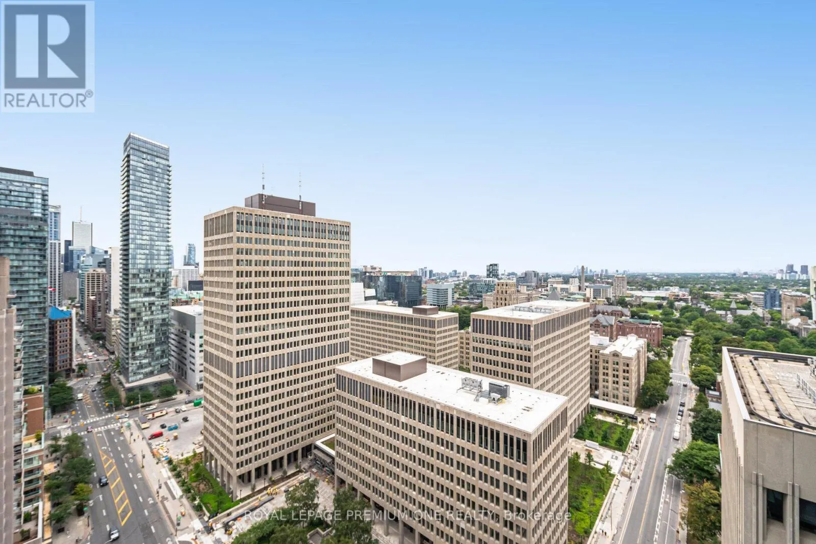 Bay St North of Wellesley St W PRICE FOR QUICK SALE Floorplan attached. Freshly painted & professionally deep cleaned this spotlless unit is move in ready! This is your opportunity to own a 775 sqft CORNER SUITE with WRAP AROUND BALCONY on the 26th floor of The BRITT in the Heart of Downtown Toronto! Ideal split bedroom floorplan design, both with windows offering a view of the city. Enjoy stunning breath-taking SOUTH and WEST views from this corner unit! Exceptional downtown location close to everything. 2 bedrooms, 2 bathrooms, modern kitchen with integrated appliances. Floor to ceiling wall to wall windows with south and west facing views provide sun drenched days in your living space and end with a beautiful view of the sunset in the evening. Wood flooring throughout for a cohesive look. Close to U of T, TMU, Queens Park, the Financial District, luxury Shopping at Bloor-Yorkville, delicious Dining, fabulous Entertainment and top Toronto Hospitals. Walking distance to Wellesley station and many markets, nightclubs, cafes and grocery stores - the best of the city at your doorstep! Amenities include 24-hour concierge, an elegant party room with formal dining and hosting kitchen, library, theatre room, internet room, state-of-the-art fitness centre, multiple guest suites, mulitple outdoor lounge areas with barbecues and alfresco dining tables, a resort-style outdoor pool as well as an indoor spa with hot tub and saunas. (id:27476)