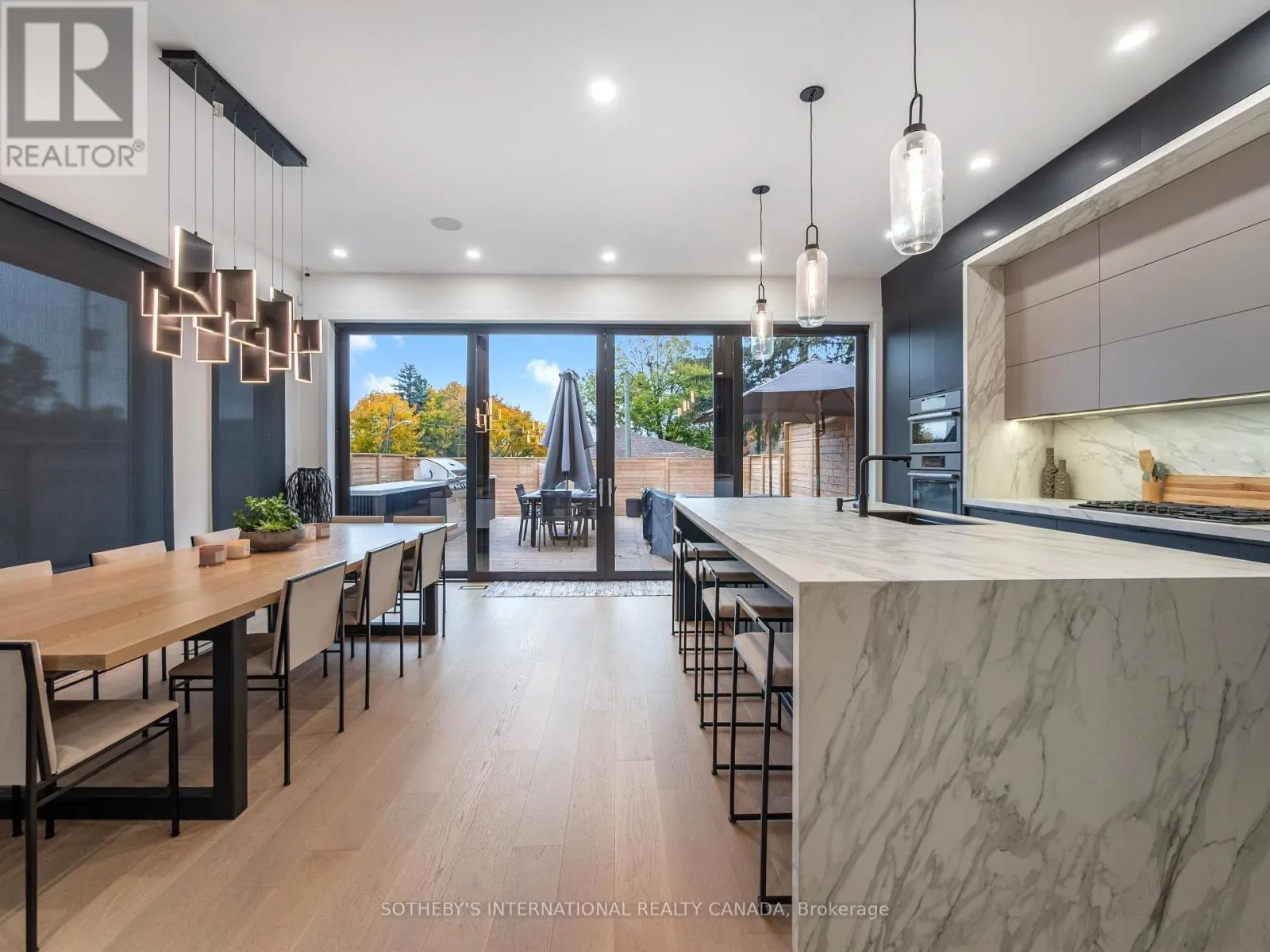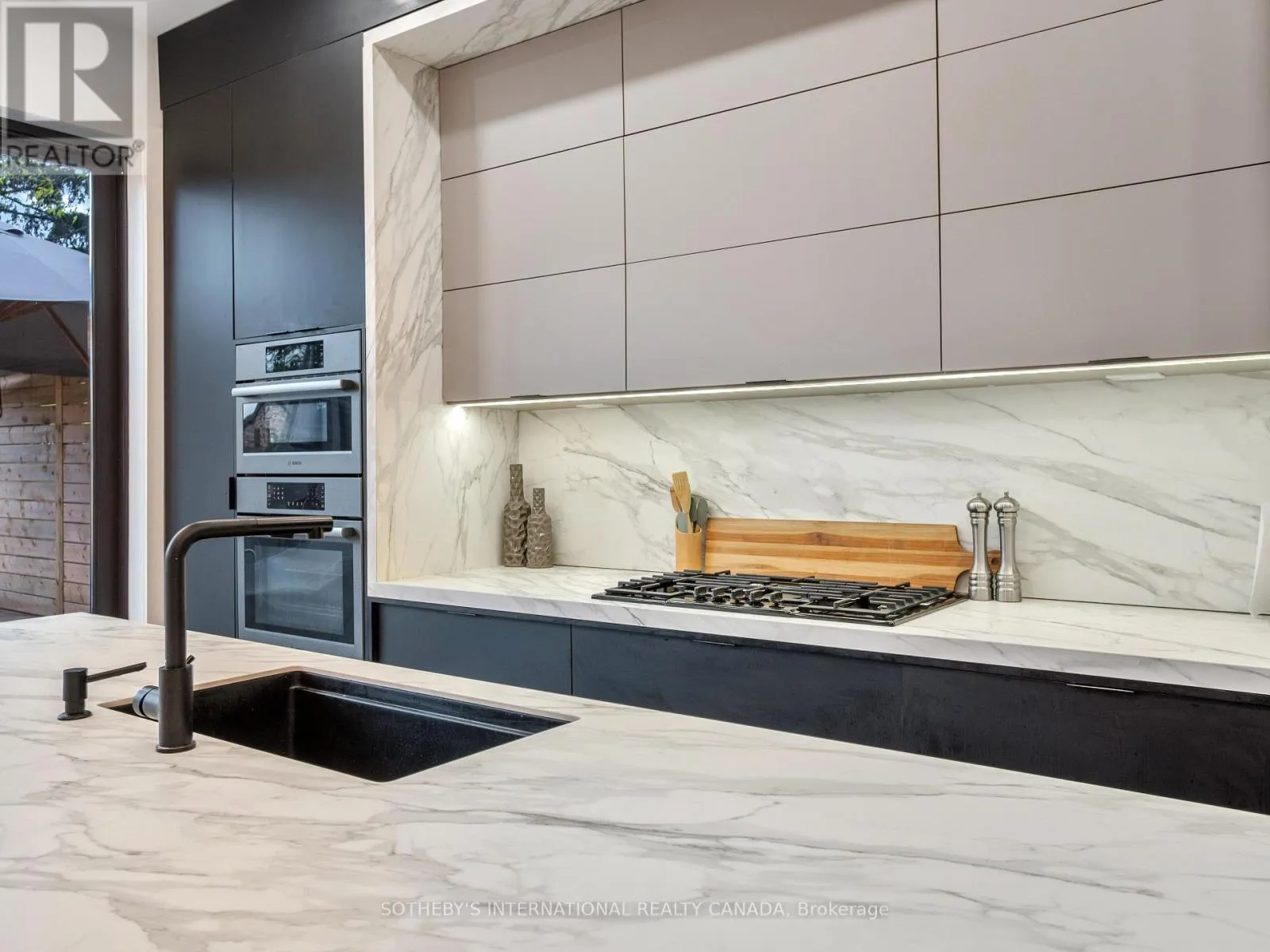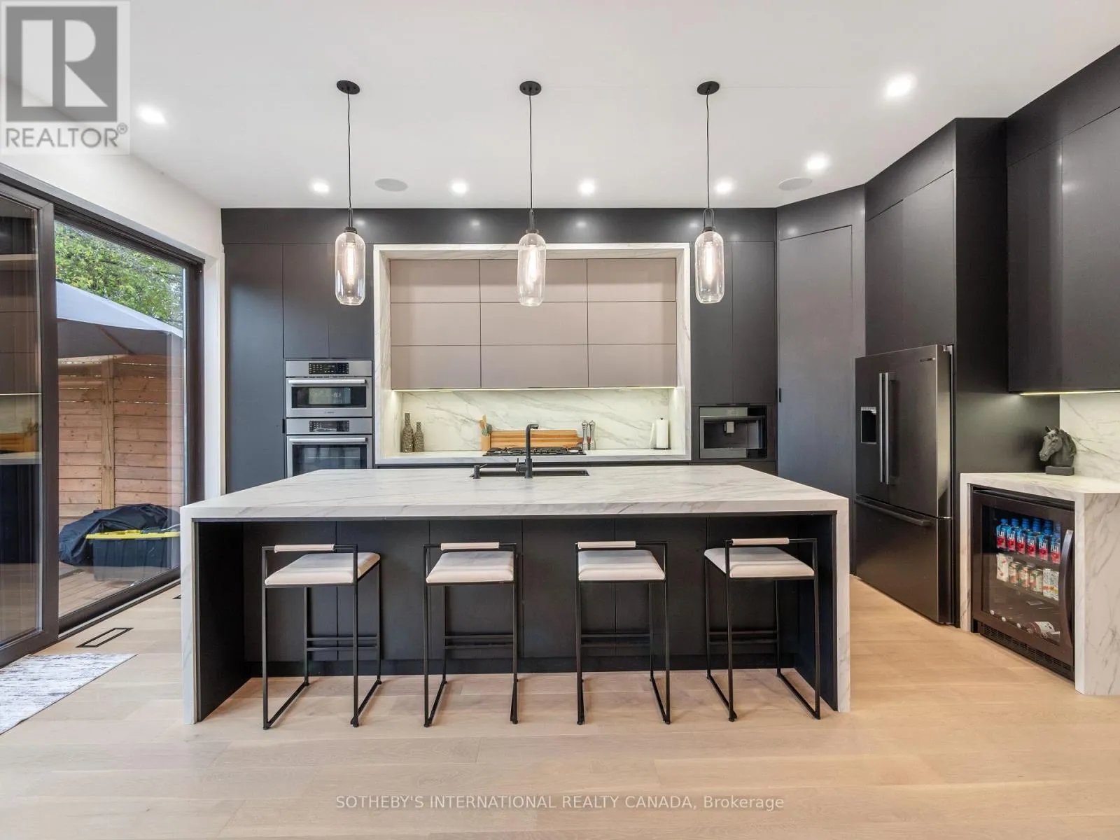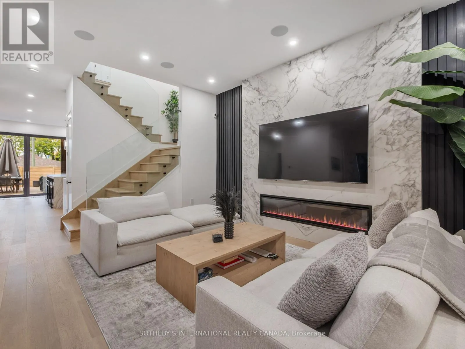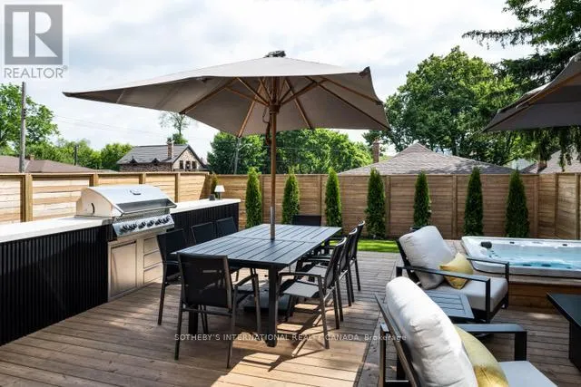 Park Lawn & Queensway Welcome to this impeccably finished, executive furnished custom home ideally situated at the foot of Sunnylea-just 15 minutes from downtown Toronto. Perfectly positioned for effortless living, the home offers exceptional proximity to major highways, the GO Train, Pearson International Airport, and the premier shopping and dining at Sherway Gardens. Families will appreciate the convenience of excellent public and private schools nearby, along with direct access to a beautiful bike trail system leading to the lake and all the way downtown. Designed for comfort, sophistication, and seamless convenience, the residence features a full Control4 smart home system ensuring personalized automation throughout. The main floor showcases a showpiece chef's kitchen with integrated appliances and an impressive 10 ft island, ideal for cooking, gathering, and entertaining. Large sliding doors open to an expansive deck complete with a built-in BBQ and private hot tub, creating a true indoor-outdoor retreat for evening relaxation or weekend hosting. A spacious living room with a sleek linear porcelain fireplace and custom wood feature wall offers a warm and contemporary setting to unwind or welcome guests. An elegant office and beautifully designed powder room complete this exceptional main-floor layout. Direct access from the garage connects to the mudroom, providing room for a vehicle or storage, along with a Level 2 EV charger. Upstairs, the luxurious primary suite delivers hotel-inspired comfort with a glass-enclosed shower, double vanity, built-in speakers, walk-in closet with illuminated glass cabinetry, a private water closet with washlet and heated seat, and a tranquil balcony perfect for sunset views. The second level also features two additional spacious bedrooms and a convenient laundry room, ensuring everyday comfort and functionality. Welcome to absolute style and comfort in a beautifully efficient home in Toronto's west end! (id:27476)