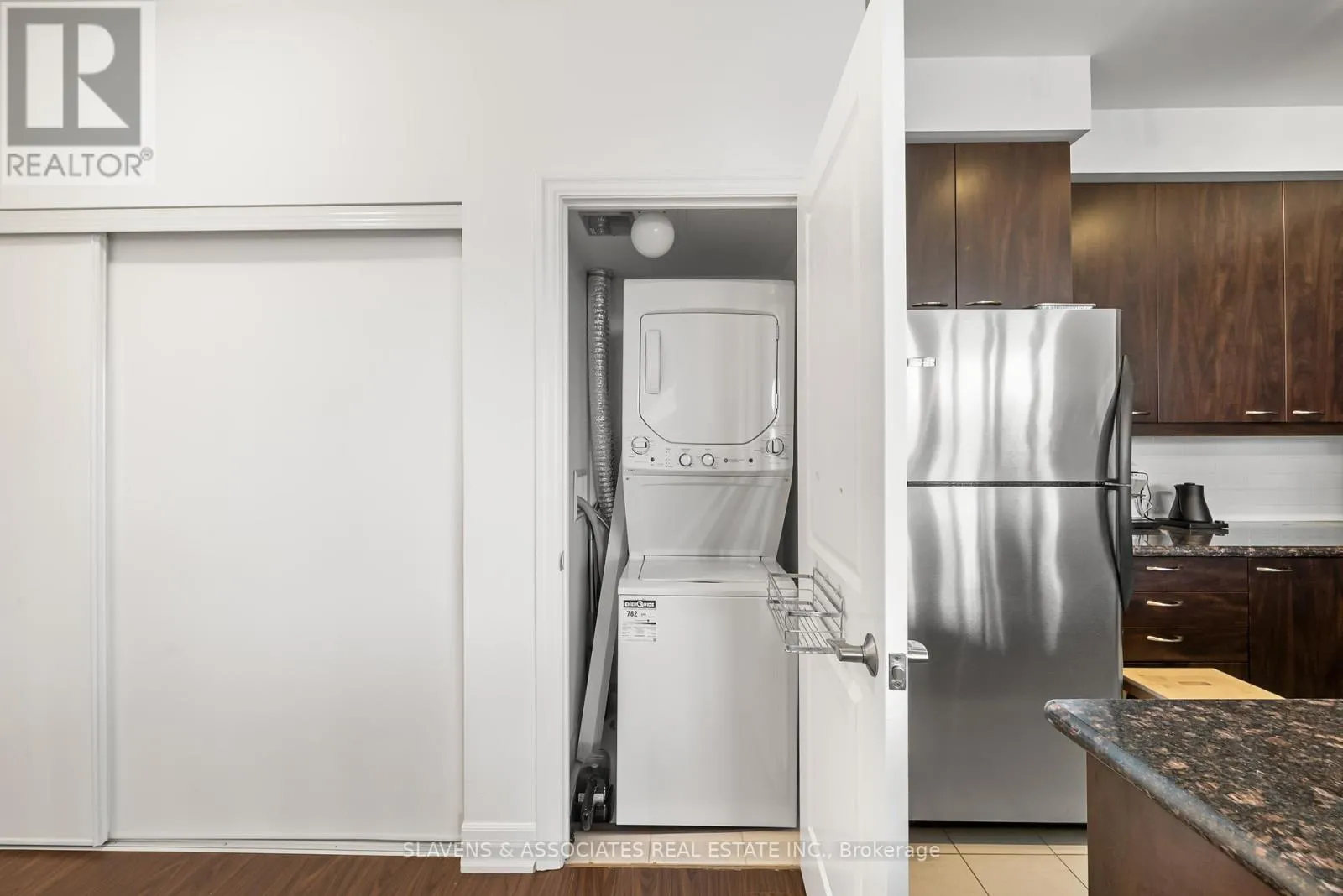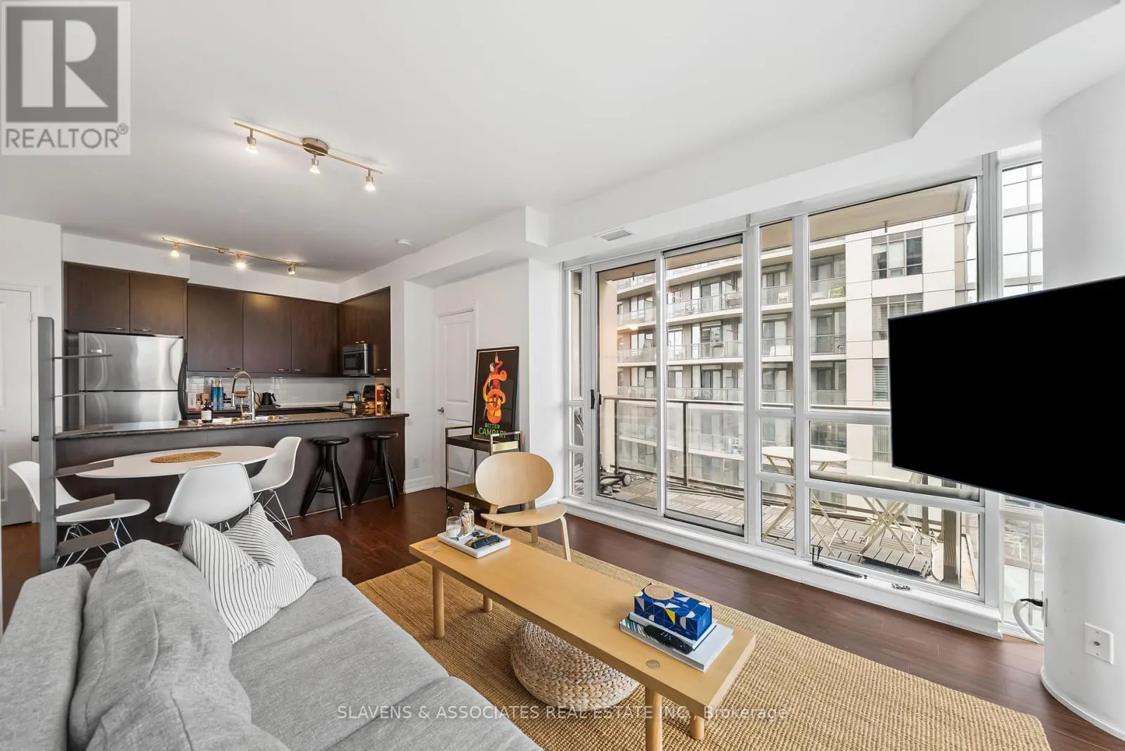 Bathurst & St Clair Ave W Experience luxury living in this elegant corner suite featuring 9-foot ceilings and an open-concept layout. The modern kitchen boasts stainless steel appliances, granite countertops, and a breakfast bar-perfect for entertaining. The bright living and dining area opens onto a private balcony, offering a seamless indoor-outdoor flow. Ideally located just steps from St. Clair Subway Station, Loblaws, and Hillcrest School. Enjoy resort-style living with access to a BBQ lounge area, theatre room, guest suites, party/meeting room, hot tub, sauna, fitness centre, billiards room, concierge service, and visitor parking. (id:27476)