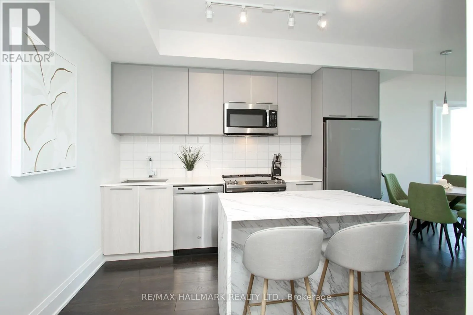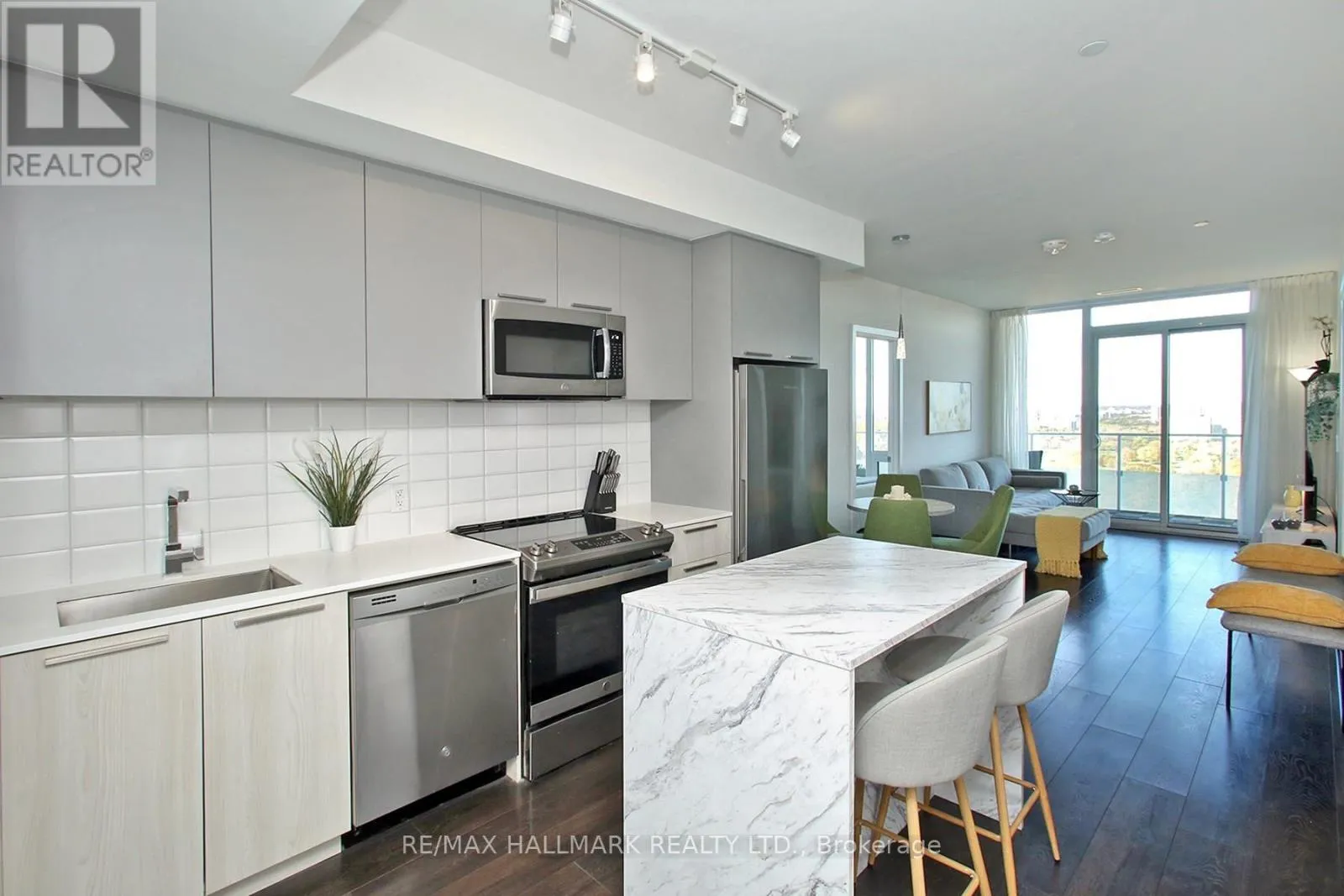 Cross Streets: Royal York Rd/Dundas. ** Directions: Dundas/Royal York. Welcome to Kingsway by the River-where panoramic sky views, endless treetops, and the shimmer of the Humber River create one of the most breathtaking outlooks in Etobicoke. This bright and sophisticated 2-bedroom, 2-bath residence offers an incredible vantage point: miles of open sky, the CN Tower on the horizon, and sweeping views over the Humber River and Lambton Golf Course.Step onto your oversized 175 sq. ft. balcony, upgraded with premium composite decking, and enjoy quiet mornings, golden sunset evenings, and a skyline that never gets old.Inside, an airy open-concept layout features floor-to-ceiling windows, 9-ft smooth ceilings, wide-plank floors, quartz counters, built-in stainless steel appliances, and a stylish breakfast bar with extra storage. The primary bedroom includes a private 3-pc ensuite and direct balcony walkout-your own peaceful retreat. Immaculately maintained and truly move-in ready.Residents enjoy resort-style amenities: a full fitness centre, elegant party room, guest suite, bike storage, library/meeting room, and a stunning 7th-floor rooftop terrace with BBQs overlooking the valley.Perfectly situated in one of Etobicoke's most desirable pockets, you're surrounded by top-rated schools, scenic trails, and everyday conveniences including Bruno's Fine Foods, Starbucks, Shoppers Drug Mart, a local pet store, and the new Marché Leo's Market-all just steps away.Unbeatable Connectivity: Downtown Toronto: approx. 15-20 minutes Toronto Pearson Airport: approx. 12-15 minutes Bloor West Village: approx. 5 minutes Royal York Subway Station: approx. 7 minutes High Park: approx. 8 minutes Quick access to Gardiner Expressway, Hwy 427, TTC bus routes, and nearby subway stations.A rare opportunity to own a luxury suite with showstopper views and unmatched convenience. This one is a must-see. (id:27476)