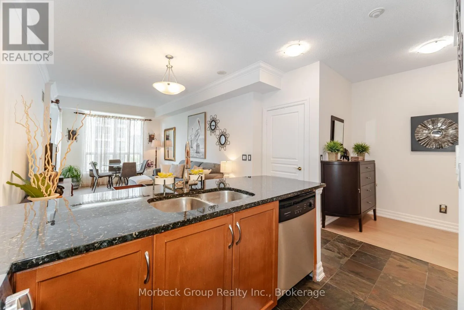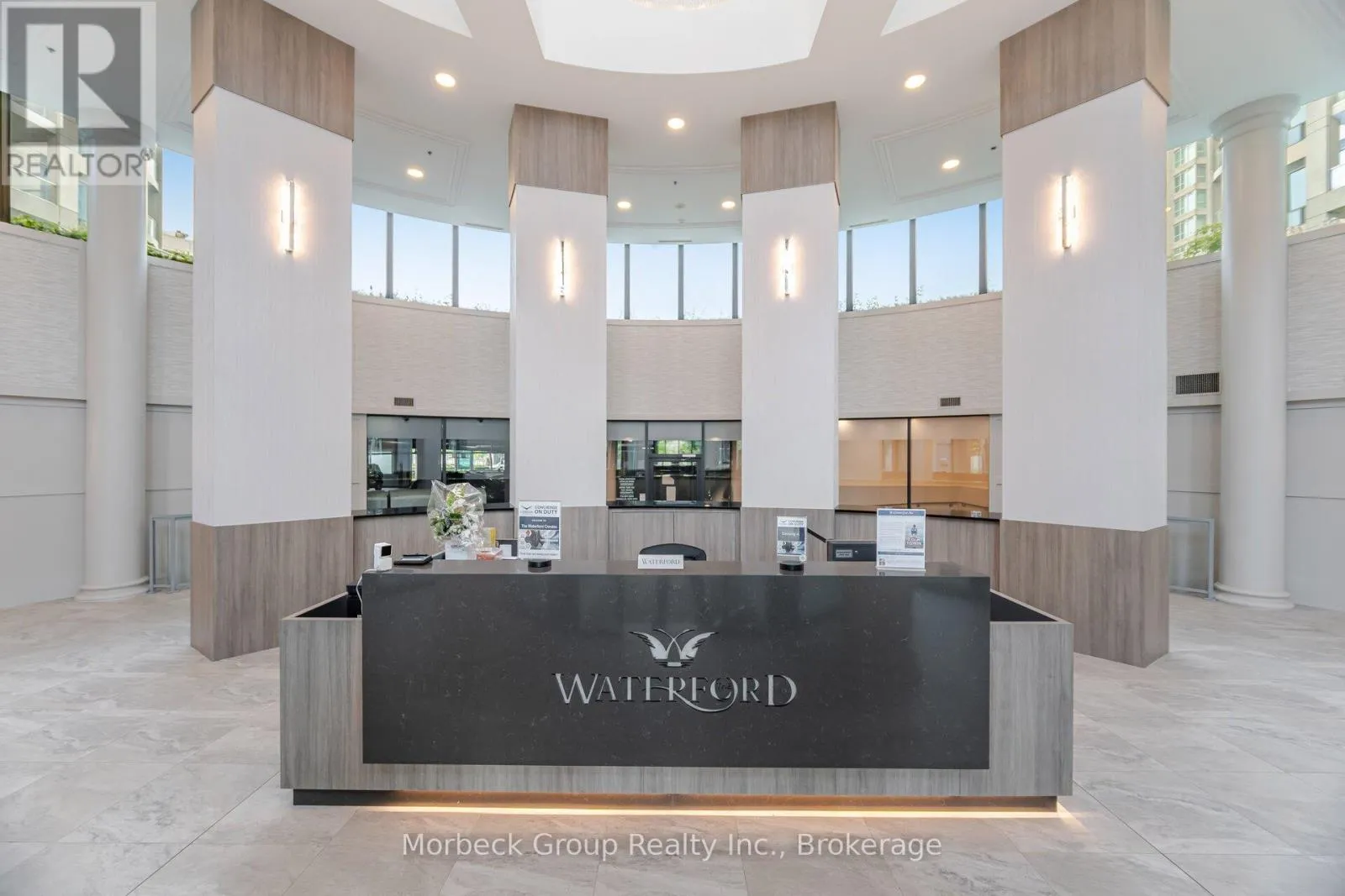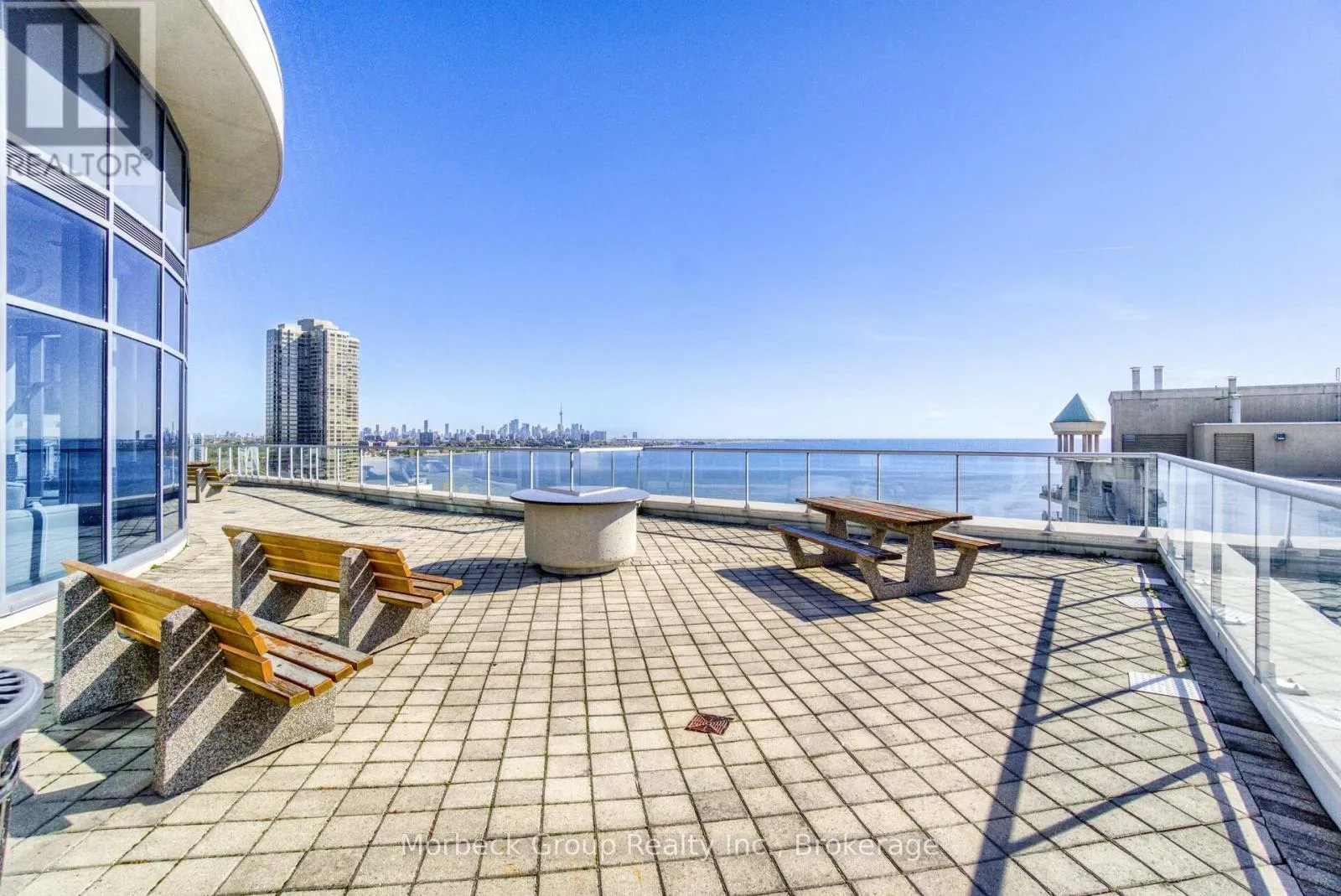 Park Lawn / Lake Shore Blvd W. This Sophisticated One Bedroom + Den In Waterford Towers Offers Breathtaking Lake Ontario Views From Your Private Balcony. The Open-Concept Layout Features A Gourmet Kitchen With Granite Counters, Stainless Appliances & Slate Flooring, Flowing Seamlessly To Living Areas With Laminate Flooring And Crown Moldings. The Spa-Like 4-Pc Bath Boasts Stone Flooring And Pot Lights, While The Bedroom Includes California Shutters, W/O To Balcony & Closet Organizer. Building Amenities Like A Rooftop Party Room With Panoramic Views, Indoor Pool, Gym & Much More. Includes 1 Parking + Locker, With Unbeatable Access To TTC, Gardiner/QEW , And Trendy Waterfront Dining. Luxury Living In One Of Toronto's Most Desirable Lakefront Communities. (id:27476)