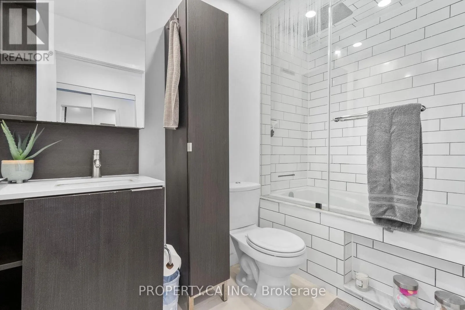 Sumach & Dundas Welcome to Suite 2212 at 170 Sumach a stunning 1 Bed + Den condo with rare breathtaking 180 unobstructed views to the north and stunning water views to the south. This unique and functional layout is one of a kind, offering a spacious living area and a versatile den perfect for a home office or guest space. The upgraded bathroom is a true spa-like retreat, featuring a luxurious steam shower and waterfall showerhead. Floor-to-ceiling windows flood the space with natural light, making every corner feel open and airy. Located in the heart of the vibrant Regent Park neighbourhood, this condo is part of a building loaded with premium amenities: fully equipped gym, basketball court, rooftop terrace with BBQs, party room, and 24/7 concierge. Steps to parks, TTC, restaurants, and more. A truly special suite you wont find anywhere else! (id:27476)