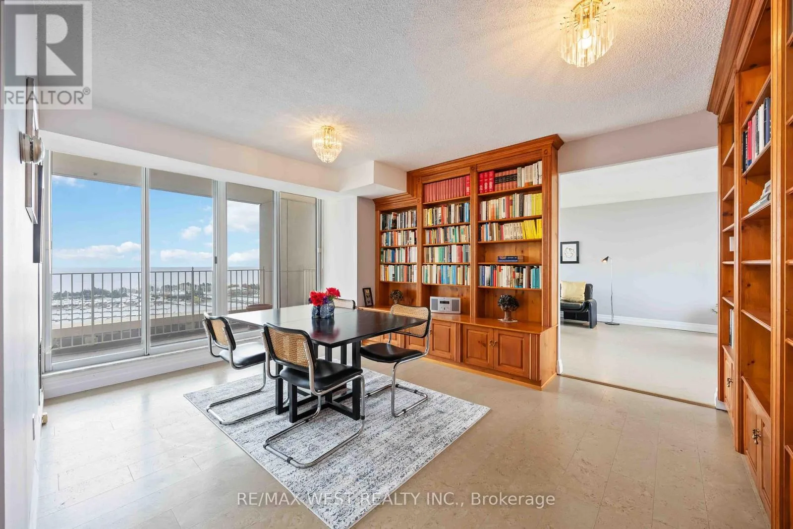 Cross Streets: Lake Shore Blvd W & Park Lawn Road. ** Directions: West of Park Lawn Road, on the south side of Lake Shore Blvd. Ever wonder what its like to live in the iconic *ARCH* of Grand Harbour? This is your chance to own one of the most distinctive and rarely available suites in the building offered for the very first time! This spacious 2-bedroom, 3-bathroom residence offers over 1,500 sq ft of thoughtfully designed living space, with both north and south exposures for stunning sunsets and peaceful marina views. The living and dining areas enjoy complete privacy, natural light, and picturesque views in both directions. A dedicated home office with custom built-in bookcases overlooks the marina ideal for reading, hobbies, or working from home.The generous kitchen features a walk-in pantry, built-in cabinetry, and an eat-in area facing the lake. A convenient pass-through to the hallway adds ease for groceries and daily living. Both bedrooms have their own private ensuites and enjoy serene north-facing views. The primary suite includes a luxurious soaker tub, separate shower, and a spacious walk-in closet, while the second bedroom features its own full bath and large closets. Additional highlights include warm cork flooring throughout and a dedicated in-suite storage room. Two parking spots and one locker are included. **Maintenance fees cover ALL UTILITIES including cable, and internet for worry-free living** Grand Harbour offers a true resort-style lifestyle with 24-hour concierge, pool, gym, sauna, party room, and guest suites. Just steps to the lake, marinas, Martin Goodman Trail, restaurants, shops, and transit. Easy access to the Gardiner, QEW, 427, airport, downtown, and the vibrant Humber Bay Shores. If you've been waiting for a one-of-a-kind waterfront home in a well-managed, welcoming community this is the one. (id:27476)