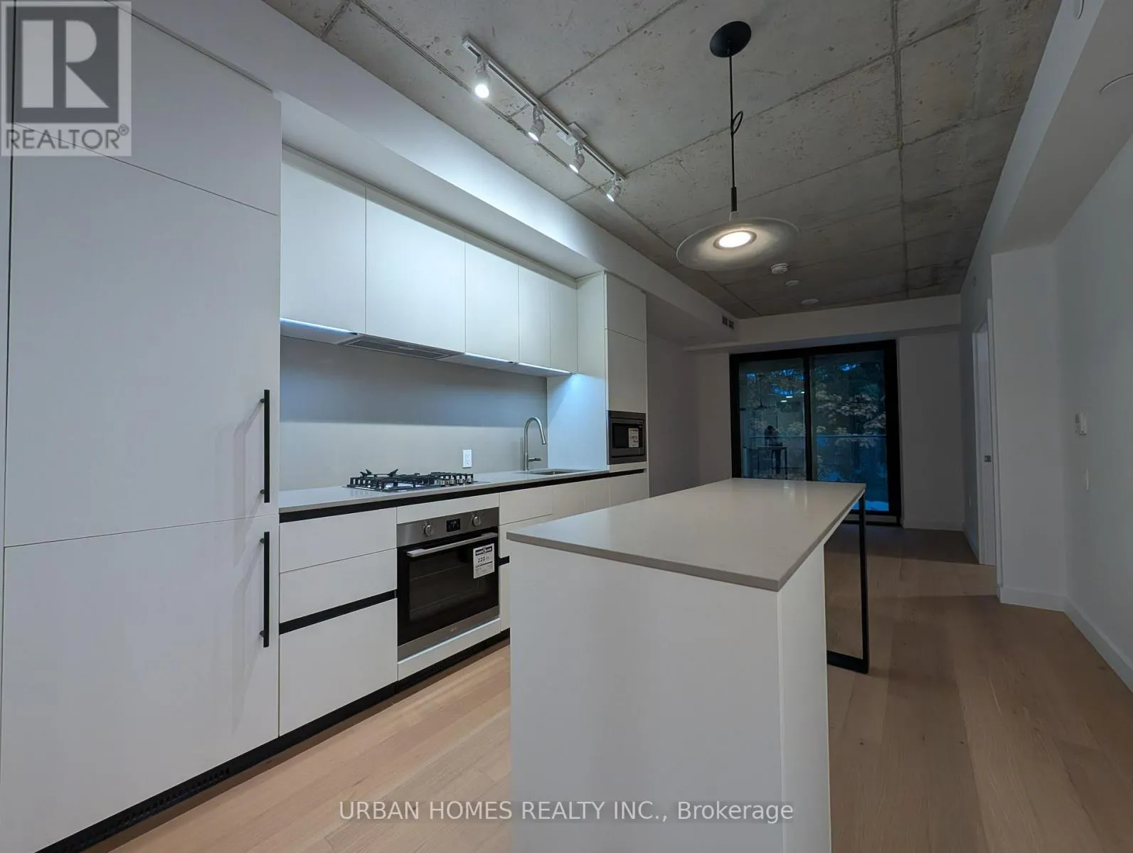 Cross Streets: Bayview and Eglinton. ** Directions: NE corner of Bayview and Eglinton. Experience refined living at Leaside Common, a brand-new boutique residence in the heart of Leaside. This beautifully designed 2-bedroom, 2-bath suite blends modern finishes with thoughtful functionality throughout. You'll find smooth concrete ceilings, a Scavolini kitchen with Porter & Charles appliances, stone counters and backsplash, a gas cooktop, and a generous island ideal for daily meals or casual entertaining. Warm light hardwood floors, under-cabinet lighting, and plenty of storage elevate the space, offering a seamless mix of style, comfort, and practicality. All just steps from the soon-to-open Eglinton Crosstown LRT. Includes one EV parking and locker. (id:27476)
