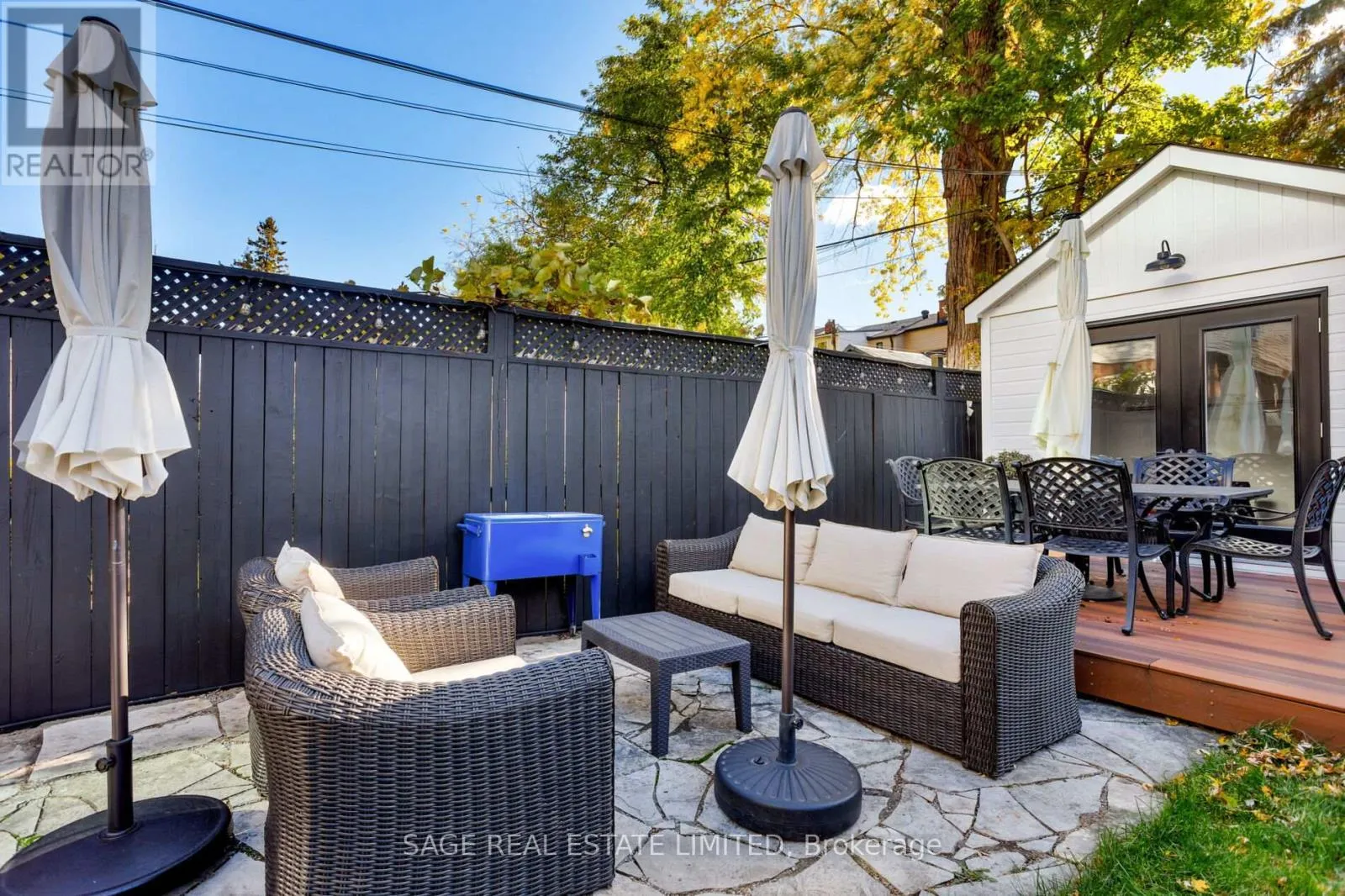 Cross Streets: Danforth Ave. / Coxwell Ave. ** Directions: Via Danforth Ave. A Little Sunshine on Sammon. Charming and clever, 573 Sammon Ave. makes the most of every inch. Nestled in the heart of East York, this three-bedroom, two-bath semi offers modern comfort, thoughtful design, and unbeatable access to everything the Danforth has to offer, perfect for young families and first-time buyers alike. The main floor offers bright, open living spaces with hardwood flooring and a stylish kitchen featuring quartzite counters, custom cabinetry, and stainless-steel appliances. A walkout leads to a sunny tree-lined backyard, complete with a new deck, flagstone patio, and a versatile accessory unit that is ideal for a gym, studio, or home office. Upstairs, three well-proportioned bedrooms provide peaceful retreats, complemented by thoughtful storage and natural light throughout. The finished basement, with its own separate entrance, offers flexible space for a family room, guest suite, or play area. With licensed front-pad parking, updated windows, and a long list of quality improvements, this home is truly move-in ready. Located in the sought-after R.H. McGregor school catchment, and just steps from Dieppe Park, the TTC, and the vibrant cafés, restaurants, and shops of the Danforth, 573 Sammon Ave. perfectly blends the best of east end living. A bright and happy place to call home. (id:27476)