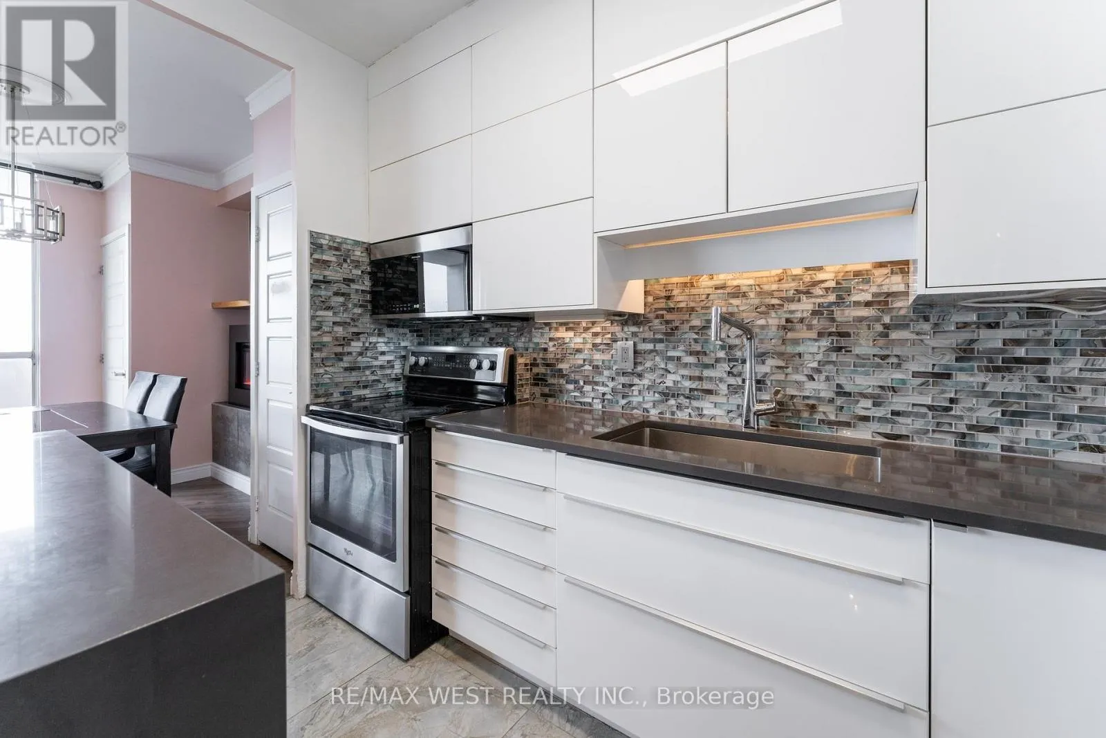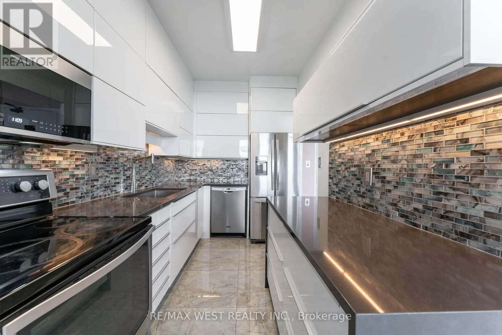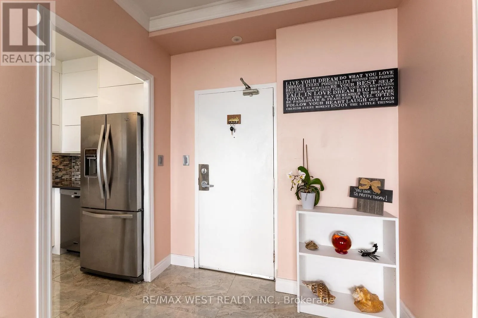 Cross Streets: Victoria Park / Danforth. ** Directions: Take Line 2 subway to Victoria Park Station, then walk 3 minutes southwest to 5 Massey Square, Toronto. Penthouse corner unit offering 978 sq ft of well-appointed space in Crescent Town, just steps from Victoria Park Station. This 2-bedroom, 1-bath condo features 9-foot ceilings, crown mouldings, and upgraded flooring throughout. The kitchen has been updated with quartz countertops, a waterfall island, glass tile backsplash, and a farmhouse-style sink. Pot lights provide ambient lighting across the open-concept living and dining area, which leads to a private balcony with expansive views of the lake and golf course. The primary bedroom includes a walk-in closet with custom organizers. Additional conveniences include ensuite laundry and a walk-in pantry. Residents enjoy complimentary access to an on-site club featuring pools, squash and racquetball courts, a gymnasium, and multipurpose rooms. Building amenities also include two daycares. With direct subway access via an elevated walkway, nearby parks, schools, shopping, and Dentonia Park Golf Course, this unit offers generous living space in a connected and established community. (id:27476)