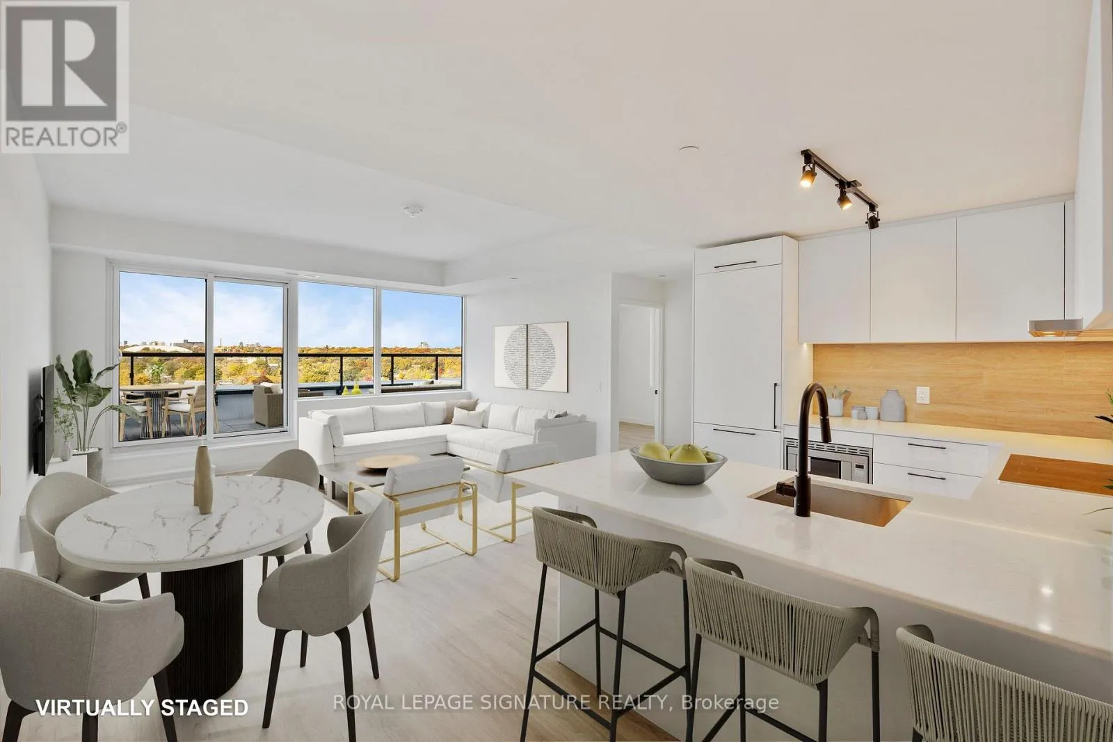 Queen/Coxwell Amazing opportunity, assignment property $200,000 below the original price. "Queen and Ashbridge" brand new, never lived in 990 square foot 2 bedroom, 2 washroom corner suite. Enjoy your morning coffee or dine alfresco on your amazing 263 sq. ft terrace with breathtaking unobstructed views of the lake and city skyline. Modern kitchen with full size built-in stove top, oven and microwave with integrated fridge and dishwasher, under-mount lighting and upgraded backsplash. Elegant wide plank vinyl flooring throughout, wall to wall windows that flood the unit with natural light. The private terrace provides a seamless indoor-outdoor lifestyle and stunning backdrop for everyday living.Enjoy exclusive access to an oasis of unmatched amenities. They include 24 hour concierge, state-of-the-art 5000 sq.ft. fitness centre complete with yoga and spin studios, steam rooms and spa-like change rooms. The 9th floor rooftop terrace and Sky Club offers BBQ areas, dining and lounge areas, a resident bar and lounge, all with stunning views, more like a country club. Pet owners will love the 8th floor with a massive dog run and dog shower. Your work-from-home needs are met with a modern co-working space featuring study and meeting rooms along with 2 visitor lounges, guest suites and plenty of secure bike storage.Perfectly located just steps to Queen Street with public transit at your door, cafes, boutiques, shops and restaurants. Turn right and you are surrounded by parks, the lake, the beach and the boardwalk along the shores of Ashbridges Bay. This is truly about lifestyle and community! (id:27476)