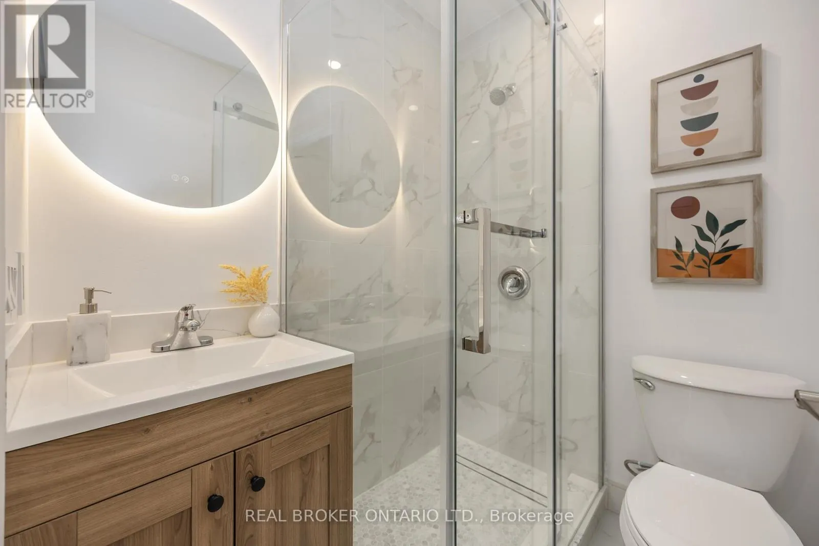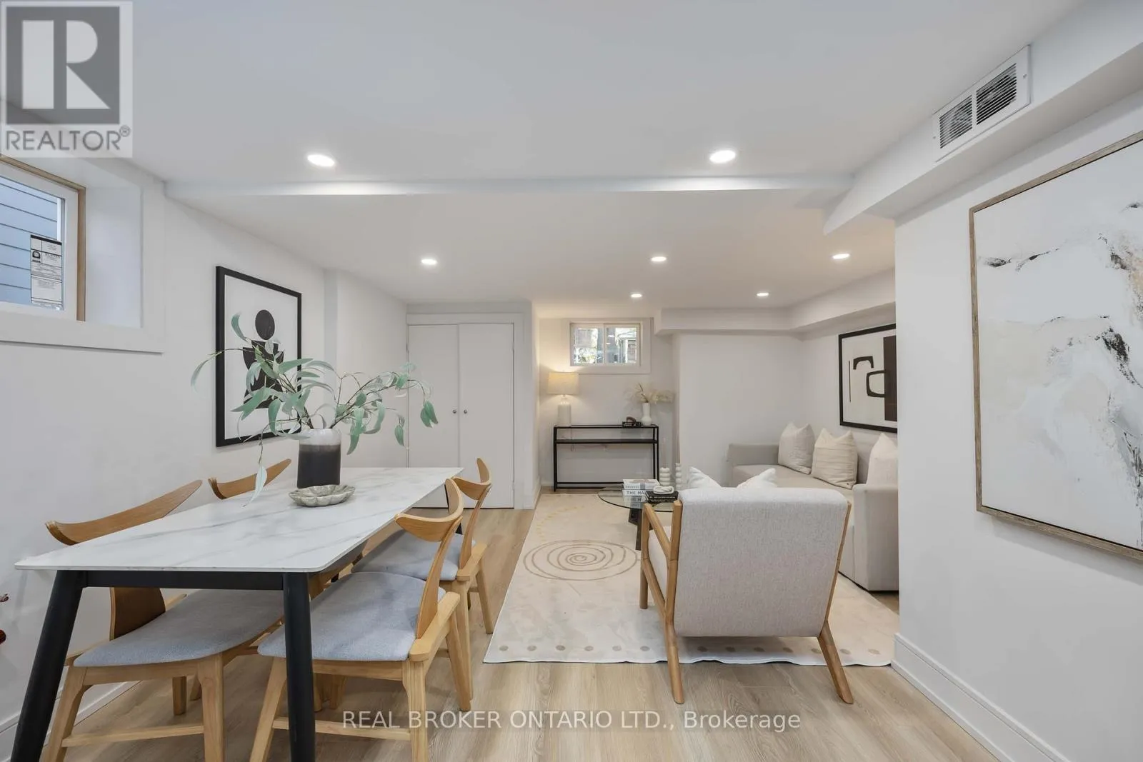 Victoria Park & Kingston Rd Welcome to 152 Pickering Street - a beautifully renovated detached bungalow in Toronto's desirable Upper Beaches. Behind the classic red-brick façade lies a bright, open-concept home thoughtfully designed for modern living. The sunlit main floor features wide-plank wood floors, pot lights throughout, and a seamless flow between living, dining, and kitchen areas - perfect for entertaining or quiet evenings in. A large bay window bathes the space in natural light, creating a warm and welcoming atmosphere. At the heart of the home, the contemporary kitchen impresses with sleek white cabinetry, a striking black marble-look backsplash, stainless steel appliances & an oversized island with breakfast seating. Two well-appointed bedrooms and a beautifully updated full bath complete the main level. The fully finished lower level offers exceptional versatility with a spacious rec room, third bedroom, second full bath & kitchen rough-in - ideal for guests, a home office, or an in-law suite. Set on a 27 x 140 ft lot, this home offers generous outdoor space with endless potential for gardening, play, or future expansion. The WIDE mutual driveway accommodates 2 vehicles - a rare convenience in this coveted neighbourhood. Nestled on a quiet, tree-lined street, you're steps from Kingston Road Village's cafés, shops, and restaurants, and minutes from the Beach, Glen Stewart Ravine, top-rated schools, and the TTC. Enjoy the best of both worlds - city living with a relaxed, community feel. Stylishly renovated and move-in ready, 152 Pickering Street is the perfect blend of charm, comfort, and modern elegance - a true Upper Beaches gem ready to welcome you home. (id:27476)