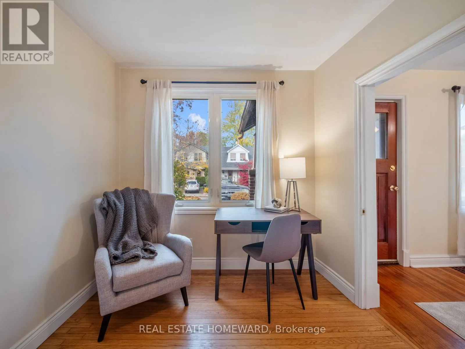 Cross Streets: Victoria Park & Kingston Road. ** Directions: North of Kingston Road. Charming, inviting and full of potential, this detached two-bedroom home in the sought-after Hunt Club is a wonderful opportunity to get into the neighbourhood. From the moment you walk in, you get a good feeling, with a warm and comfortable space to gather. The hardwood floors and wood accents add character to the living and dining rooms. The large eat-in kitchen offers ample counter space and storage with updated cabinetry. The separate back entrance and unfinished basement provide a blank canvas with countless possibilities.Steps to Blantyre Park, Blantyre Public School, public transit, and all that Kingston Road has to offer, 5 Northview Ave is the ideal spot to plant roots and make your own. (id:27476)