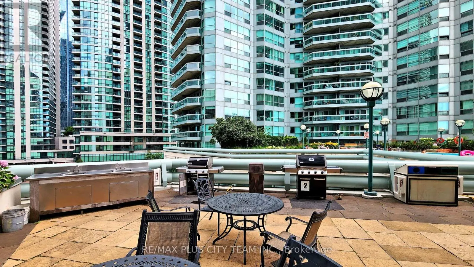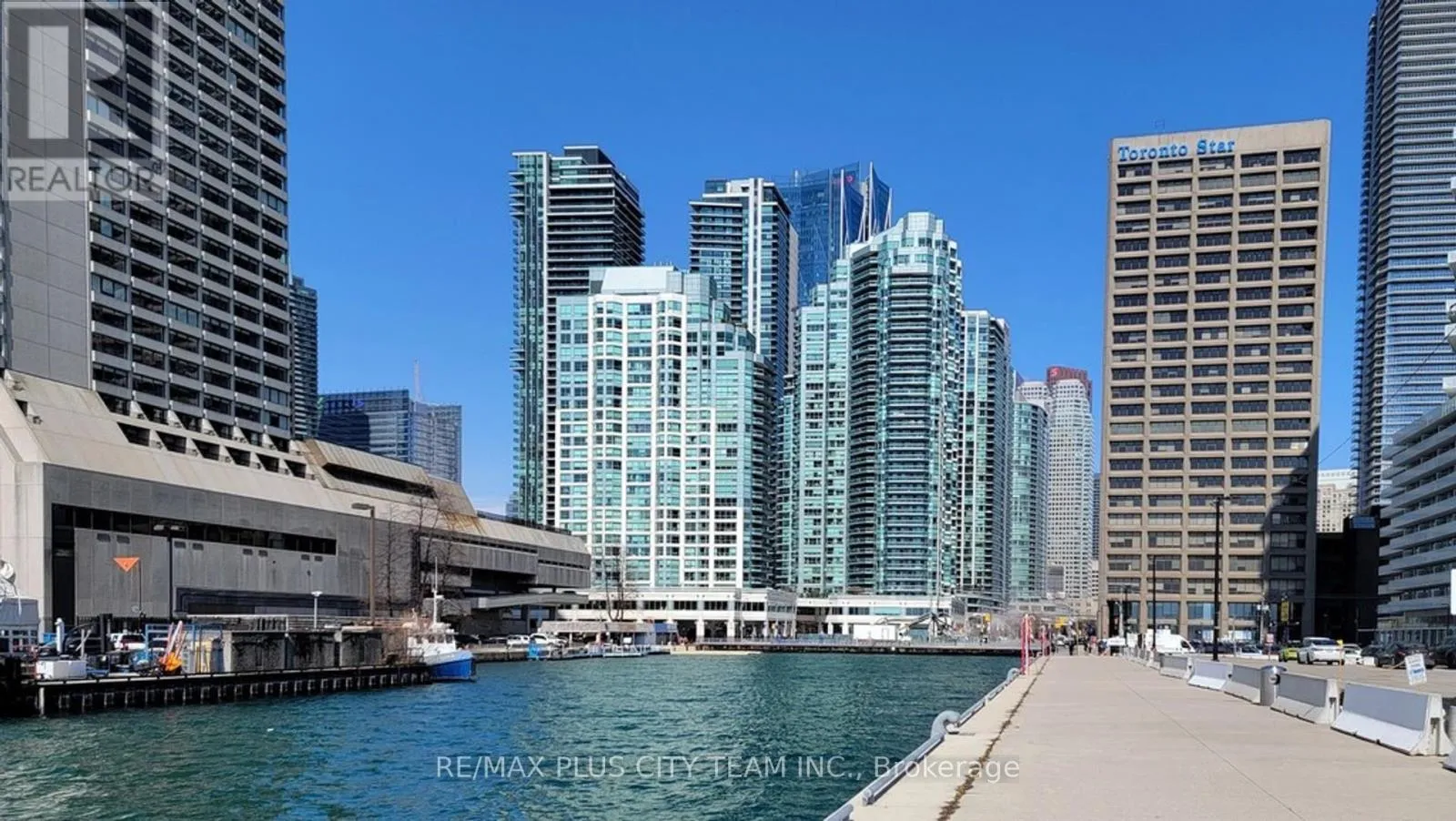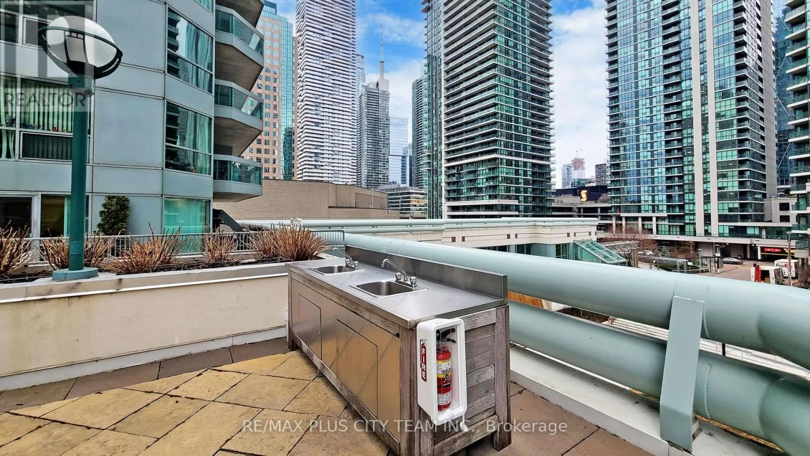 Cross Streets: Yonge and Lakeshore. ** Directions: Yonge / Queens Quay. Welcome to 10 Yonge Street, Suite 310 - a bright and beautifully maintained unit in the heart of Toronto's Harbourfront community. This well-loved suite offers over 600 sq. ft. of functional interior living space plus a rare, private terrace-perfect for relaxing, entertaining, or simply enjoying the fresh air. The thoughtfully designed layout allows for a comfortable living area, dining space, home office, and bedroom without ever feeling cramped. The open-concept living/dining room is filled with natural light from floor-to-ceiling windows, while the versatile den provides the flexibility to expand your living area or create a dedicated workspace. The kitchen overlooks the living space and features a convenient breakfast bar with seating for three. The private bedroom includes a large closet and washer/dryer closet. A 4-piece bathroom, in-suite laundry, and coat closet complete this functional and inviting home. Did I mention that the maintenance fees include all utilities plus Bell hi-speed internet and basic cable? This suite offers the perfect opportunity to add your own personal touch while enjoying one of the city's most desirable downtown locations in a building that offers a wonderful community feel. Steps to Loblaws, Farm Boy, Harbourfront, Walking trails, Union Station and Restaurants. Building Amenities: 38th floor Party Room with Amazing Views of the Lake & City, Outdoor BBQ Terrace Area. Second Floor Amenities: Indoor Pool, Hot Tub, Outdoor Patio with BBQs, Gym, Sauna, Internet Lounge, Games Room with Billiards, Media/Theatre Room. 24-Hour Concierge, Guest Suites, and Visitor Parking (id:27476)