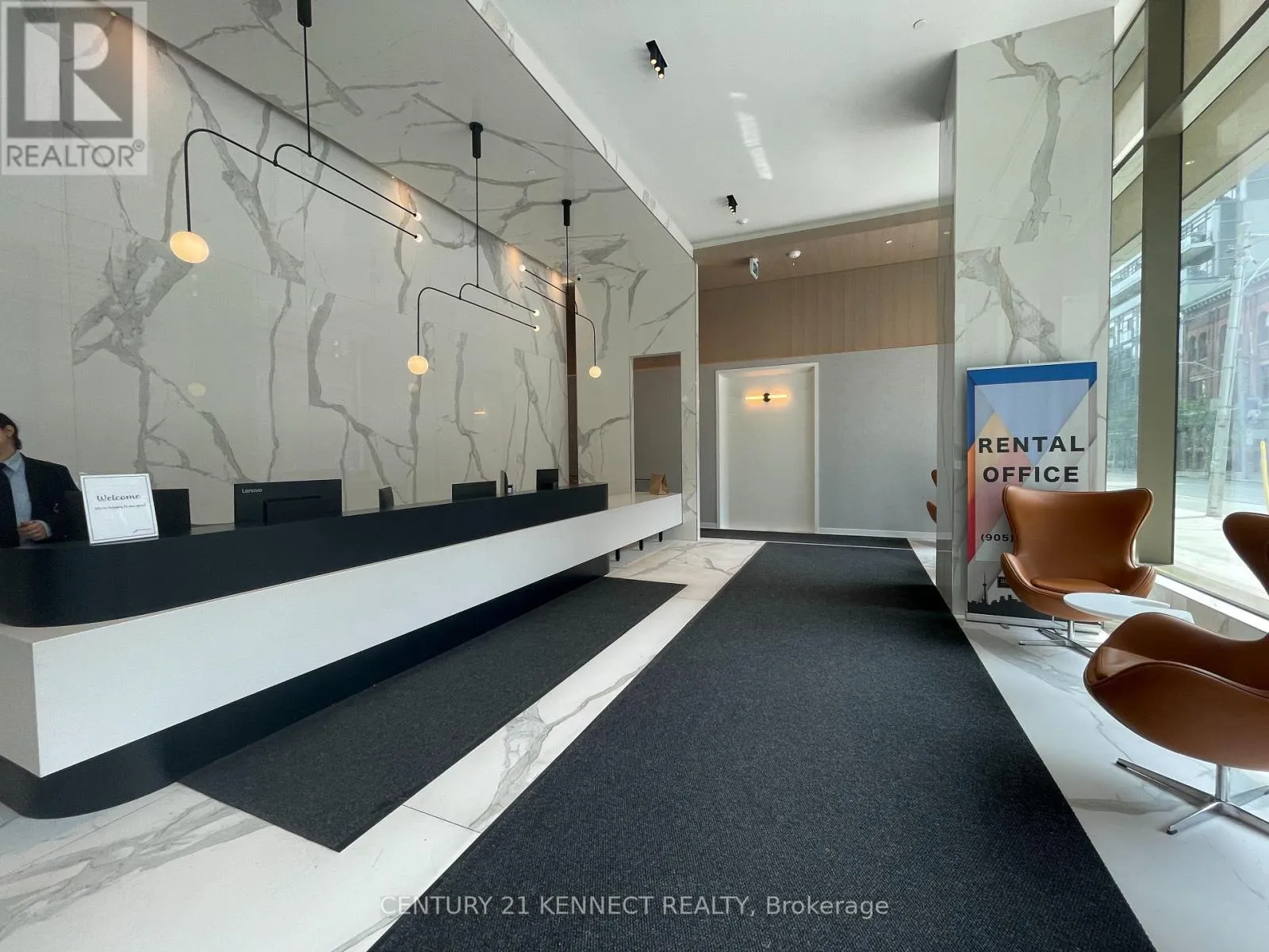 Church St / Queen St E Brand new, never-lived-in 1+den with 2 full bath suite near Church & Queen. Immediate occupancy. Bright, spacious layout. TTC at doorstep, 5-min walk to subway. Steps to Eaton Centre, Financial District, City Hall, George Brown, TMU. Surrounded by shops, dining, banks, groceries. Exceptional amenities: gym, guest suites, co-working space, theatre, yoga area, party room, outdoor pool, cabanas, terrace w/ fireplace & BBQs. (id:27476)