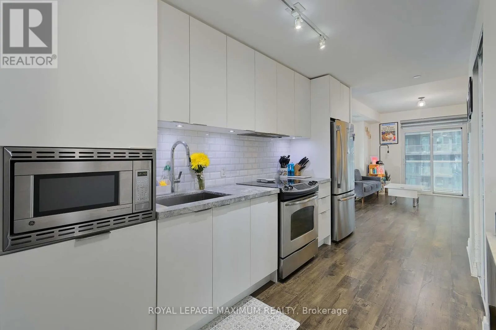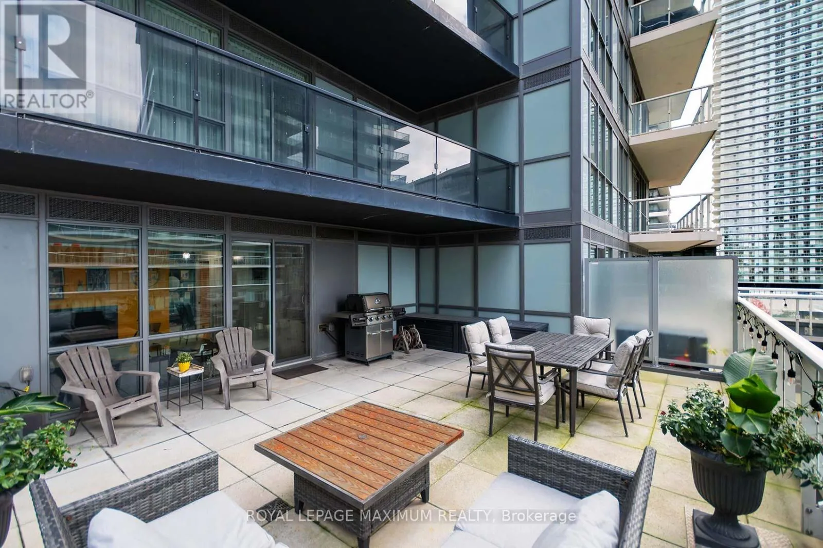 Lake Shore / Park Lawn Experience Lakeside Luxury at Riva Del LagoWelcome to this stunning 1-bedroom corner suite in the highly desirable Bayview Shores community. Located in the prestigious Riva Del Lago building, this bright and modern residence offers the perfect blend of style, comfort, and outdoor living.Enjoy two private outdoor spaces, including a balcony off the primary bedroom with breathtaking city and lake views, plus a massive 486 sq. ft. terrace off the main living area - complete with water and natural gas hookups for a BBQ, ideal for entertaining or unwinding outdoors.The sleek kitchen features stainless steel appliances and upgraded quartz countertops, while the spacious open-concept living and dining area is filled with natural light and provides two walkouts to the terrace. The primary bedroom offers serene views and direct outdoor access, and the heated bathroom floors add a touch of everyday luxury.Riva Del Lago offers resort-style amenities and a modern lobby, all set right on the shores of Lake Ontario. Nestled in vibrant Humber Bay Shores, you'll enjoy easy access to trails, waterfront parks, restaurants, and just a short drive to downtown Toronto.A truly unique opportunity to live lakeside in one of Toronto's most coveted communities. (id:27476)