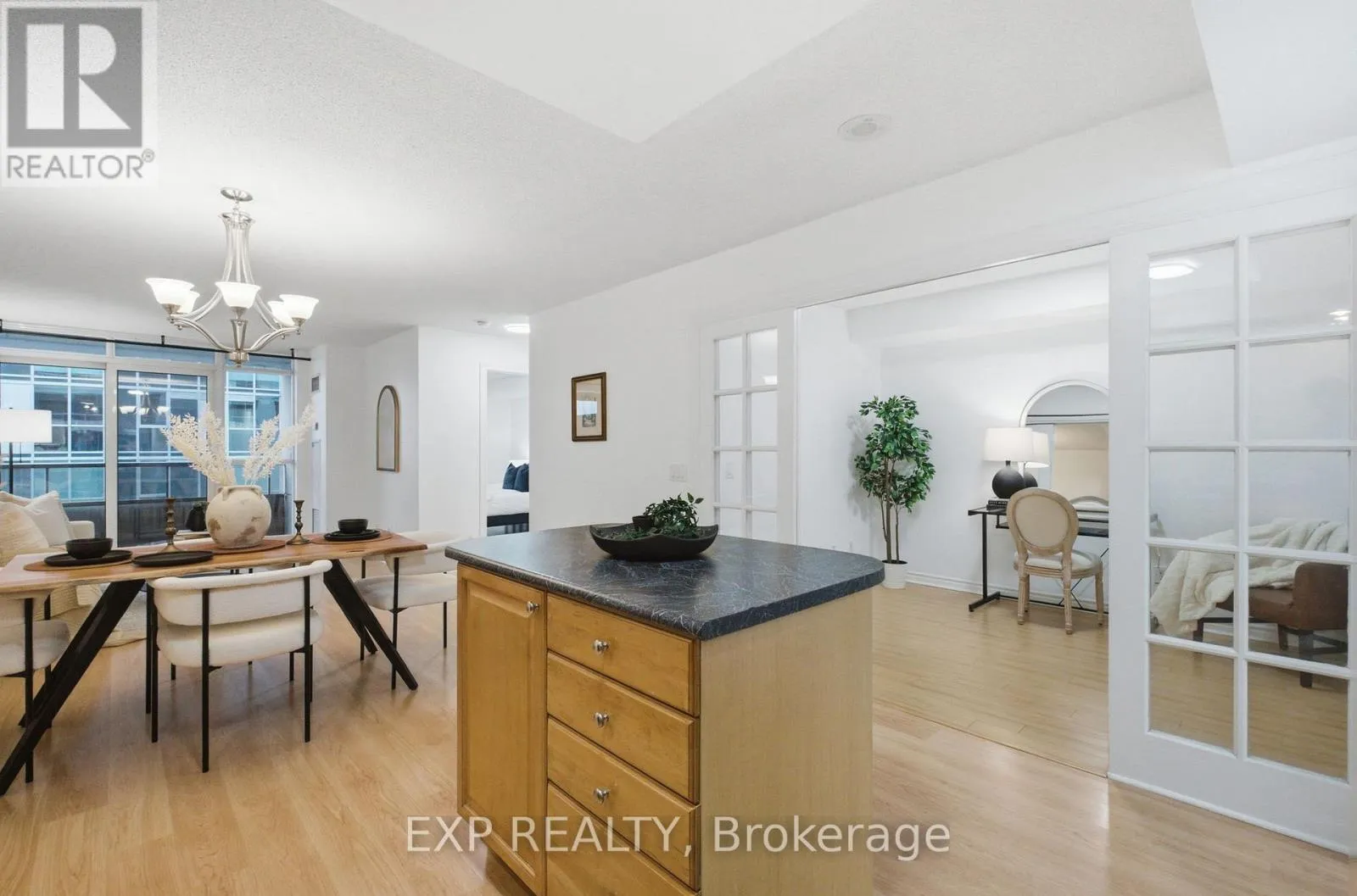 Dundas/Bloor/Kipling Welcome to this spacious and beautifully maintained 1 Bedroom + Den condo located in theprestigious Tridel Essex community. Offering over 800 sq ft of thoughtfully designed livingspace, this unit is perfect for professionals, couples, or small families seeking comfort andconvenience in a vibrant location.The versatile den, complete with elegant French doors, can easily serve as a second bedroom,home office, or guest space-ideal for today's flexible living needs. The modern kitchenfeatures brand new stainless steel appliances, abundant counter space, and ample cabinetry,making it a dream for home cooks and entertainers alike.Enjoy a bright and generously sized bedroom with a large window, and stylish laminate flooringthroughout the unit for a sleek and low-maintenance finish.Located just steps to Kipling Subway Station, this home offers unbeatable access to transit,while being surrounded by a wealth of shops, cafes, restaurants, and everyday conveniences.Residents also enjoy access to phenomenal building amenities including a gym, pool, party room,and more.Don't miss your chance to live in one of Etobicoke's most sought-after communities! (id:27476)