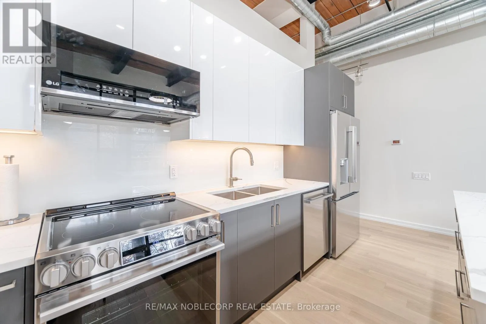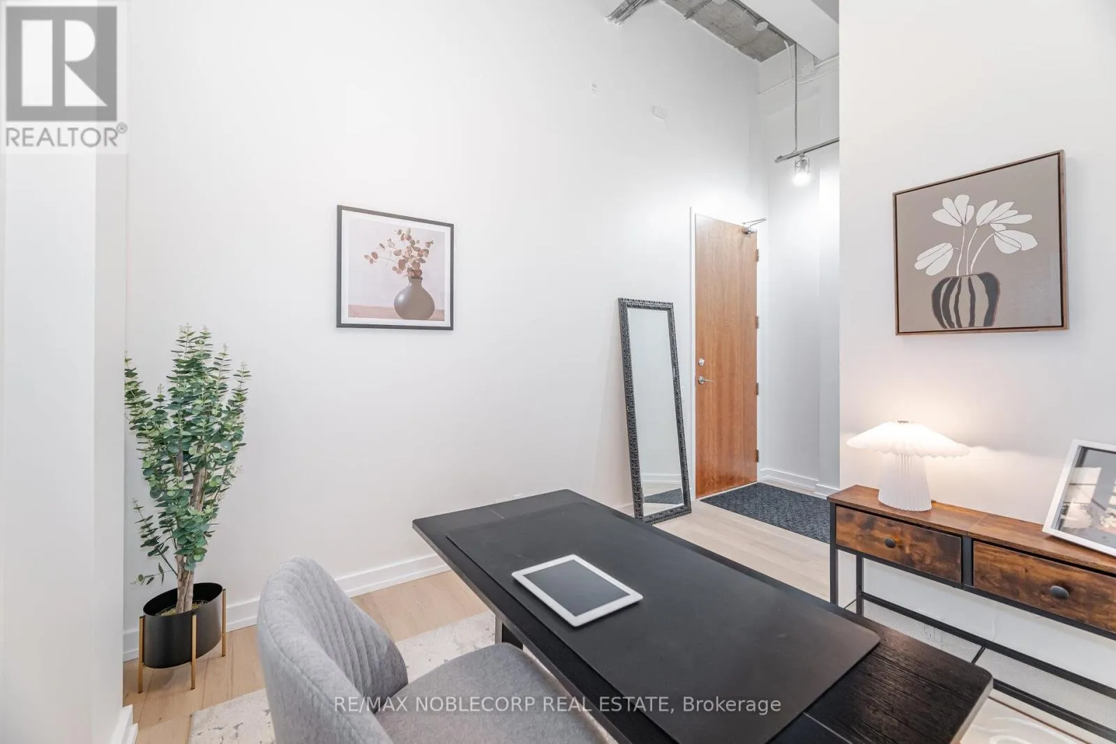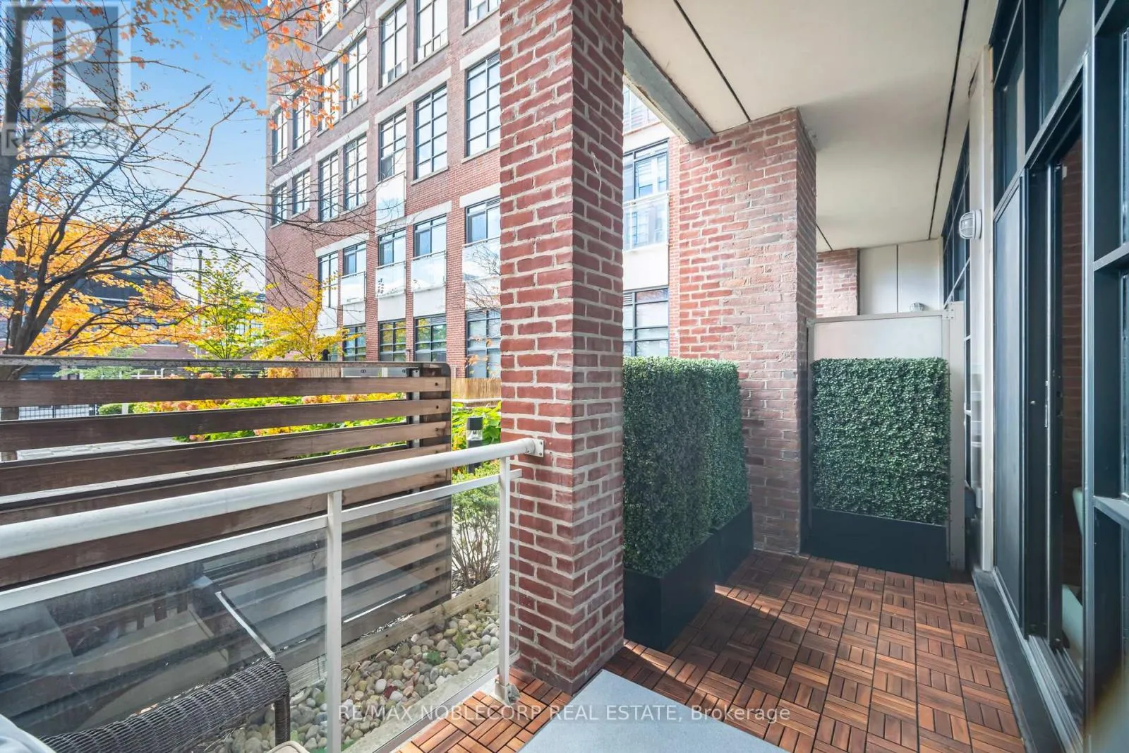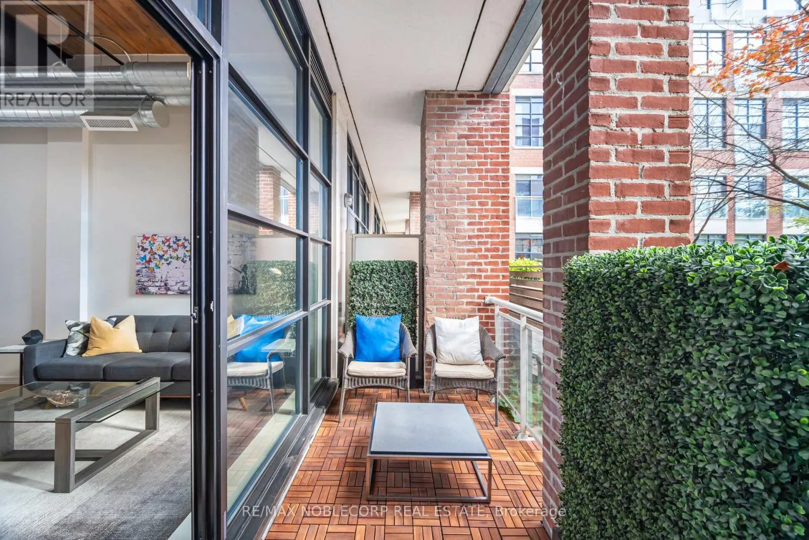 East Liberty st/ hanna ave Welcome to one of the most impressive lofts in the city, located in one of its most sought-after buildings! Be the first to enjoy this brand new unit - extensively renovated to the nines and never lived in! This rare, sunny, south-facing hard loft features a large original brick private terrace. The ground floor location offers a beautiful view backing onto the quiet, gated private courtyard. Soaring 13 ft. wood beam ceilings and exposed red brick create the perfect blend of old industrial charm and modern, sleek, high-end finishes. Enjoy easy, elevator-free access with prime ground floor parking and a locker literally just steps from the unit - living here truly feels more like a house. This loft has undergone a complete high- end renovation with the highest quality materials: brand new hardwood flooring, a stunning new bathroom with large porcelain tiles, heated floors, an oversized soaker tub, and premium vanities. The brand new two-tone kitchen features a custom glass backsplash and over $10K spent on top-of-the-line appliances. The exposed brick wall in the living area gives this unit a true "wow" factor - a special, unique space that shows 10/10! This unit is ideally situated on the south side of the building and is one of the few with outdoor space offering this desirable exposure. No need to worry about future condos being built in front of you! The building is exceptionally well-managed with low maintenance fees. Enjoy a convenient 5-minute walk to Exhibition GO Station with easy access to Union Station in just 8 minutes. A future subway station and a large park are also being developed right across the street. (id:27476)