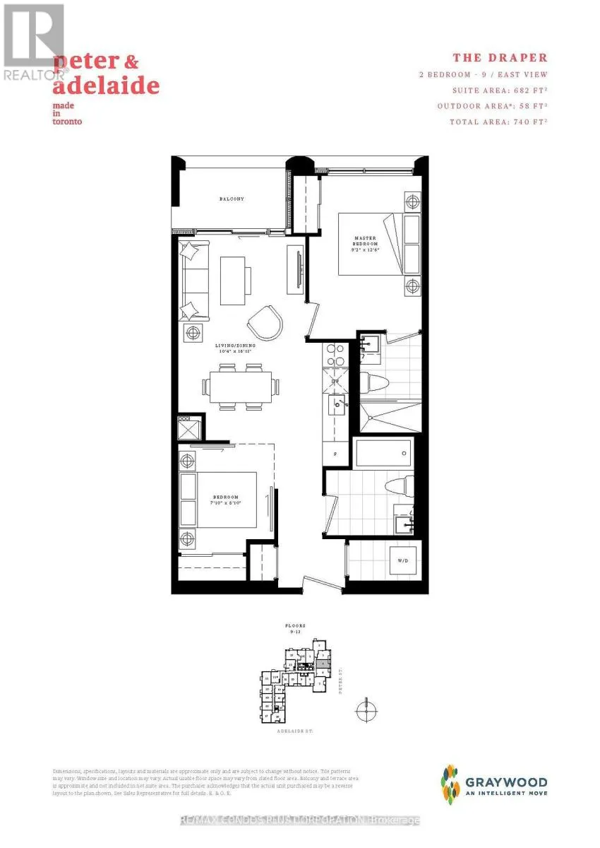 Cross Streets: Peter and Adelaide. ** Directions: on the west side of Peter St., north of Adelaide St. Experience luxury living at Peter & Adelaide Condo! This well-designed 2 beds, 2 Baths suite offers modern living space, featuring a stylish designer kitchen with premium Integrated appliances, sleek laminate flooring, and impressive 9-ft ceilings. The second bedroom enclosed by a sleek glass sliding door with blinds, offers the perfect setting for a stylish and functional office or bedroom. 682 sq.ft + 58 sq.ft. Total 740 sq.ft. Step onto the balcony and take in city views of Toronto's dynamic cityscape. Residents enjoy an array of top-tier amenities, including a rooftop outdoor pool with an elegant lounge area, a state-of-the-art gym, a yoga studio, a business centre with WiFi, an indoor child play area, a dining room with a catering kitchen, and more. Prime downtown location! Just steps from Toronto's top universities, charming cafes, vibrant nightlife, lush parks, high-end shopping, and seamless TTC transit access. (id:27476)