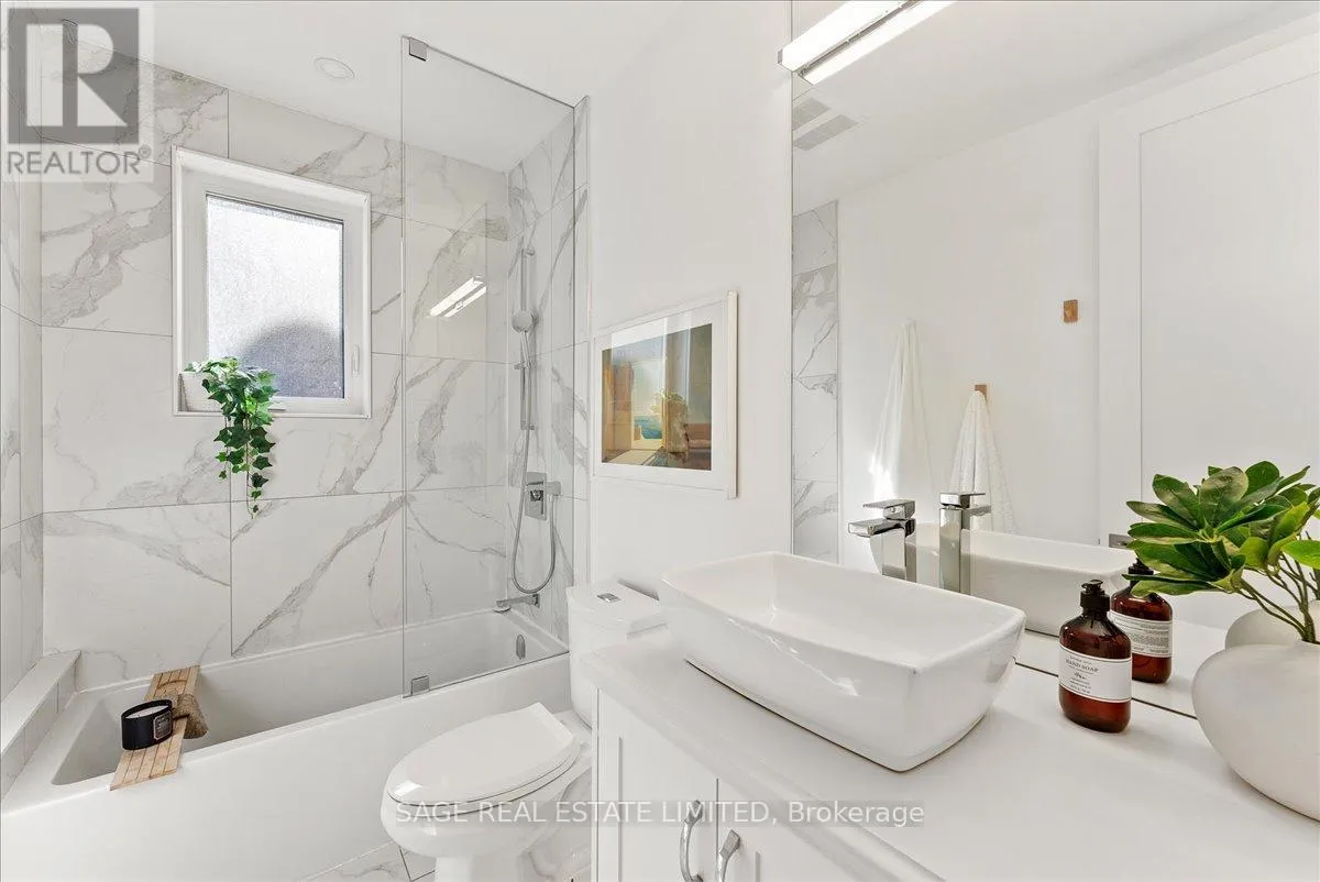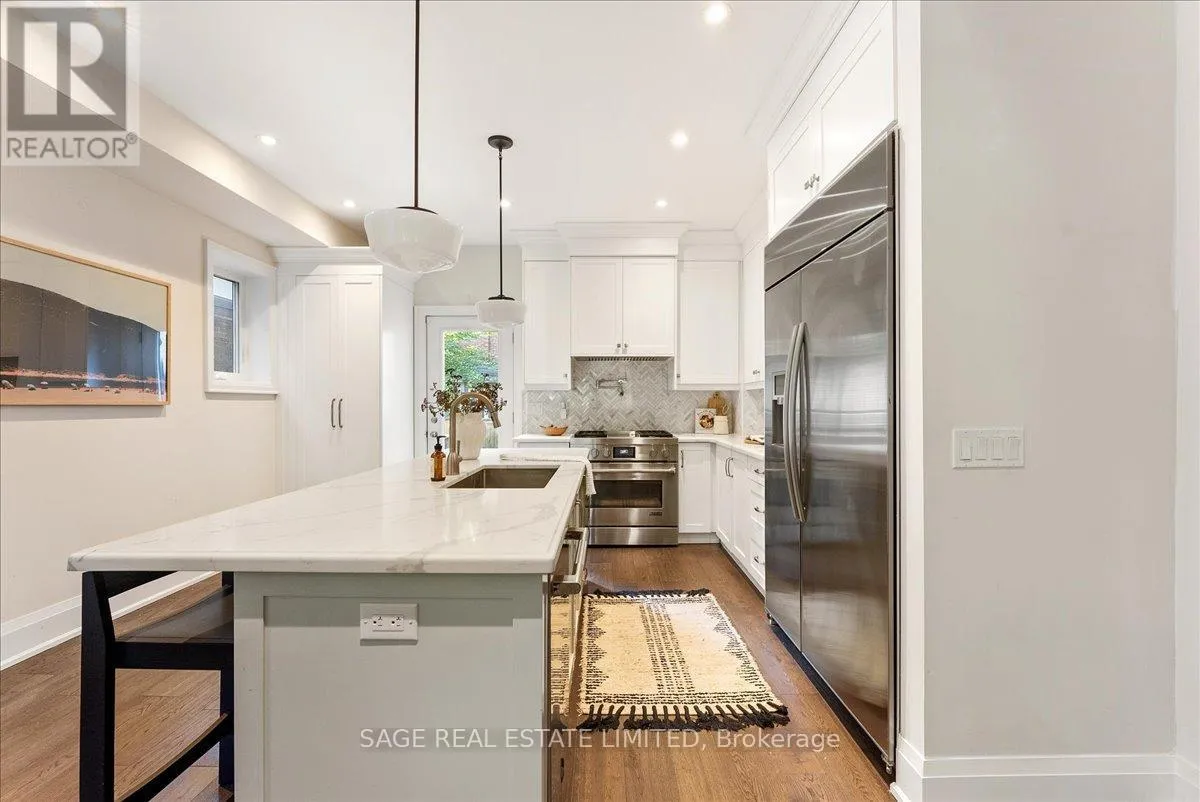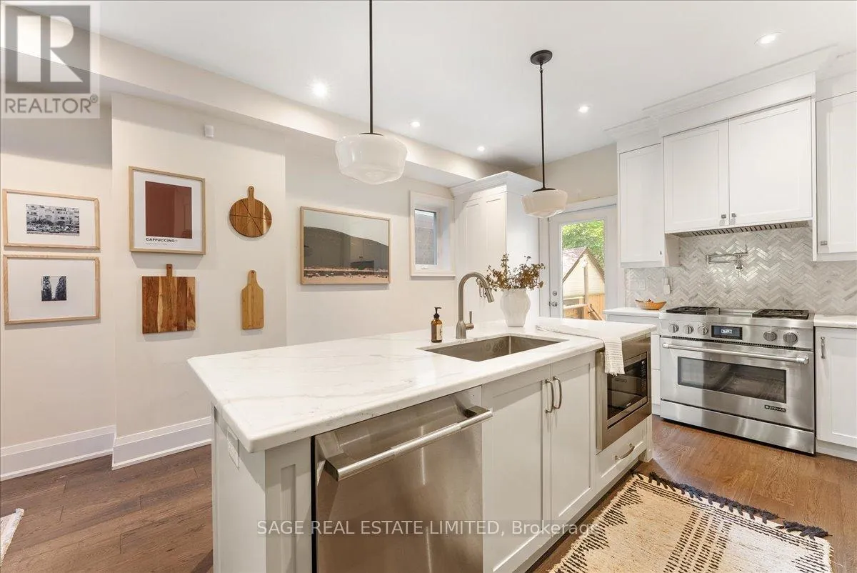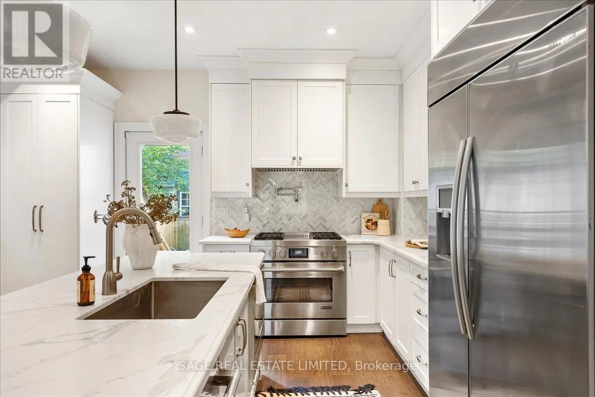 Cross Streets: Kingston Rd & Main St. ** Directions: South of Kingston Rd. Theres a certain calm that lives on Beech Ave, where the canopy stretches high overhead and the street drifts naturally toward the lake. Behind its stately brick exterior and classic front porch lies a fully reimagined 3+1 bed, 4 bath home that embodies coastal sophistication and quiet luxury. A full-scope renovation blends warmth and refinement with rich hardwood floors, tall ceilings, a dreamy steam fireplace, deep bay windows that call for a good book, and a custom kitchen designed for connection. Sunlight pours in from east, south & west exposures, dancing across carefully chosen finishes and glass details that shift beautifully throughout the day. The kitchens oversized island anchors daily life transitioning from morning coffees and breakfast debriefs to afternoon homework sessions and family dinners prepared together. Upstairs, three serene bedrooms, two spa-inspired marble baths, and a convenient laundry offer boutique-hotel comfort. The lower level extends the living space with a spacious family room and 2-pc bath the perfect backdrop for movie nights, playtime, or a home gym plus a self-contained studio suite with private entrance, ideal for guests, in-laws, nanny, or income-generating rental. Life here feels as effortless as it is enriching moments from Balmy Beach CS, bookended by Kingston Rd Village cafes just steps up and Queen Sts lively energy a short stroll south. With ravine trails, the boardwalk, YMCA, and streetcar all nearby, this home captures the unmistakable essence of Beach living in the city: intimately connected, yet blissfully its own. (id:27476)
