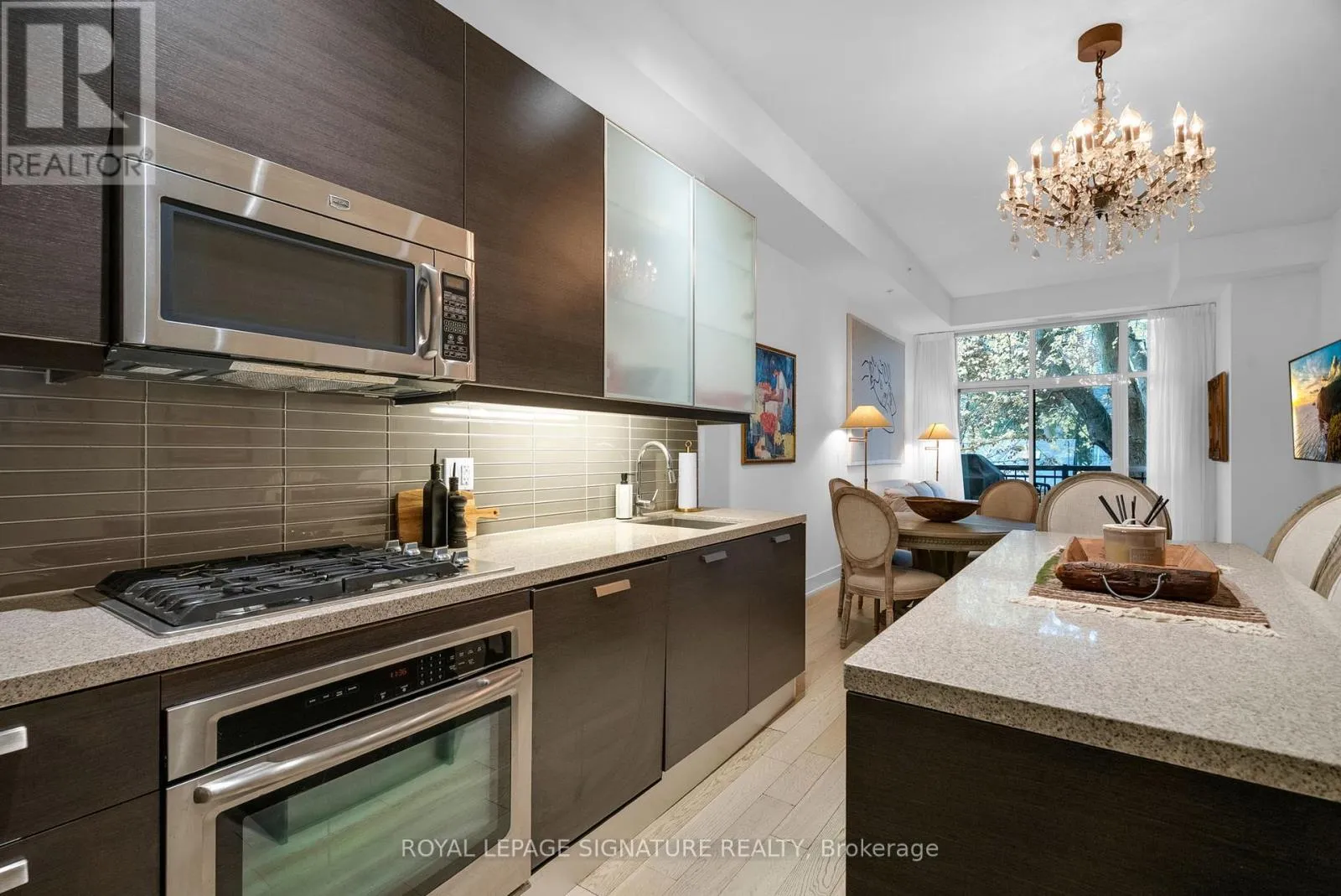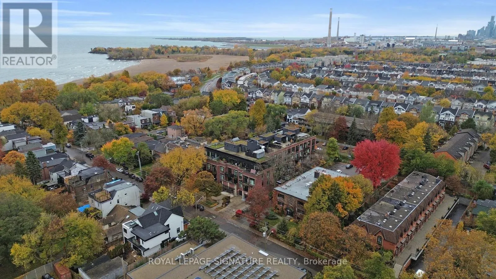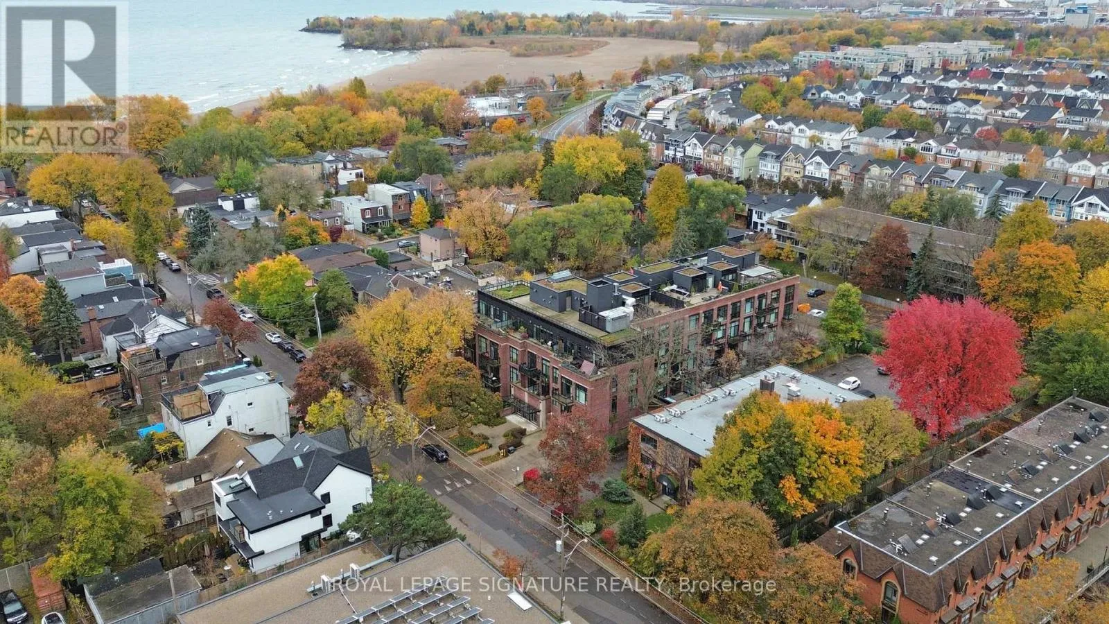 Queen and Woodbine Boutique living at its finest at The Kew Lofts, just south of Queen on one of the most beloved streets in The Beaches. This beautifully proportioned 2-bedroom, 2-bath suite offers 1,040 sq.ft. of airy, open-concept living with 10-ft ceilings, large windows, and a well-appointed kitchen featuring a generous granite island ideal for daily living or easy entertaining. Enjoy your private balcony with gas BBQ hook-up, surrounded by mature trees and calm residential charm.Located steps from the lake, boardwalk, Kew Gardens, and the shops + cafés along Queen St, this is the perfect blend of village atmosphere and refined urban comfort. The building offers thoughtful amenities including a main-floor lounge with courtyard, rooftop terrace, and lush, elegant landscaping. (id:27476)
