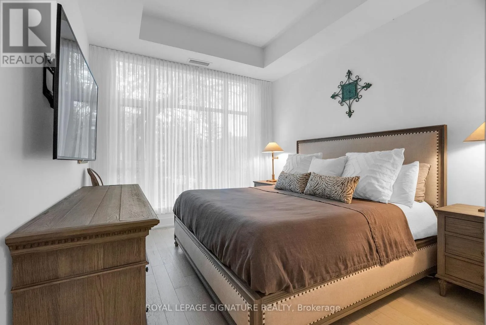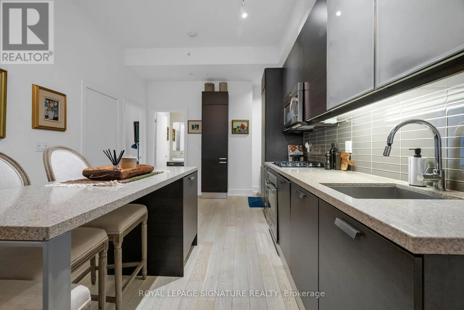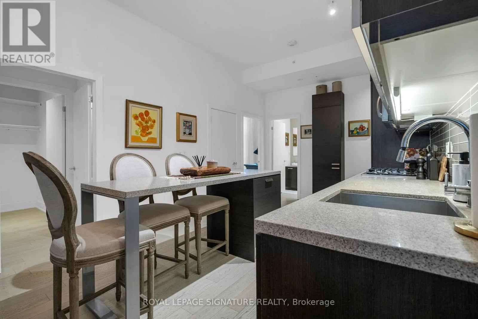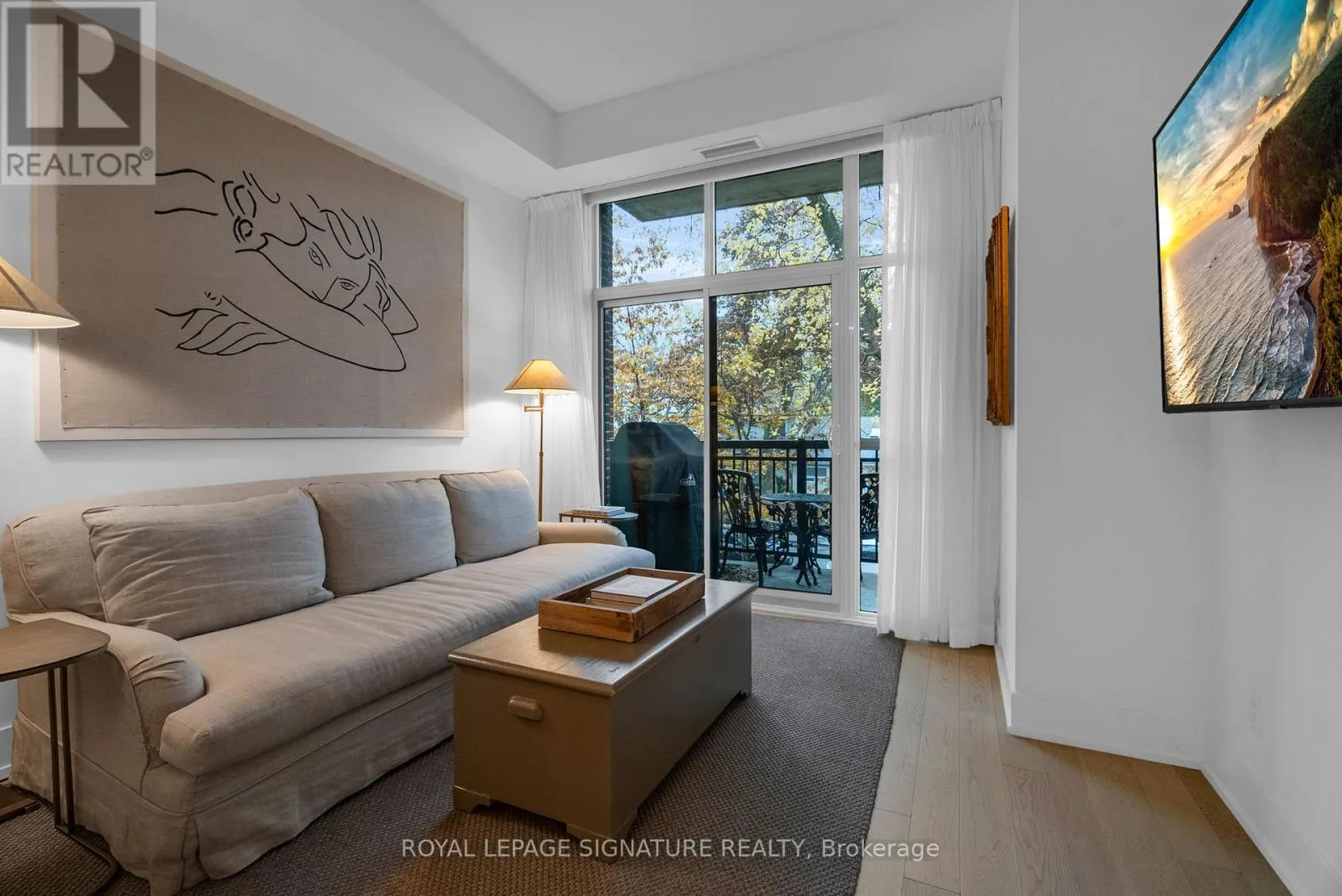 Queen and Woodbine Boutique living at its finest at The Kew Lofts, just south of Queen on one of the most beloved streets in The Beaches. This beautifully proportioned 2-bedroom, 2-bath suite offers 1,040 sq.ft. of airy, open-concept living with 10-ft ceilings, large windows, and a well-appointed kitchen featuring a generous granite island ideal for daily living or easy entertaining. Enjoy your private balcony with gas BBQ hook-up, surrounded by mature trees and calm residential charm.Located steps from the lake, boardwalk, Kew Gardens, and the shops + cafés along Queen St, this is the perfect blend of village atmosphere and refined urban comfort. The building offers thoughtful amenities including a main-floor lounge with courtyard, rooftop terrace, and lush, elegant landscaping. (id:27476)
