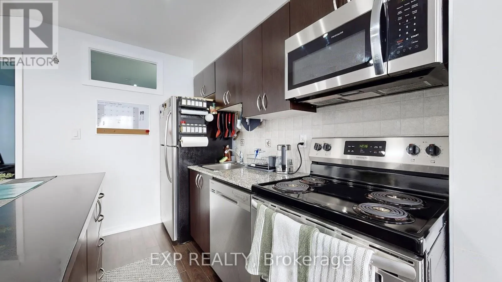 Cross Streets: Sheppard Ave / Bathurst St. ** Directions: https://maps.app.goo.gl/wtWxvG26oUG4PqPKA. Welcome to Unit 607 at 801 Sheppard Ave West, a rare gem in a boutique condominium with only 61 suites. This functional 1-bedroom plus den offers a versatile layout, with the den serving as a private office or second bedroom. Highlighting this suite is the nearly 200 sq. ft. sunny, south-facing terrace-your ideal space for outdoor living and entertaining during warmer months. Inside, enjoy quality finishes, including stainless steel appliances, granite and quartz countertops, and a kitchen island with a quartz breakfast bar. The open-concept living and dining areas are perfect for modern living. Located in the sought-after Clanton Park neighbourhood, you're just a short walk to Downsview Subway and minutes from Allen Road, Highway 401, Yorkdale Mall, Costco, Home Depot, and more. Surrounded by parks, schools, shops, restaurants, and places of worship, this condo is ideal for first-time buyers and investors alike. Underground parking and a locker are included. Don't miss this exceptional opportunity! (id:27476)