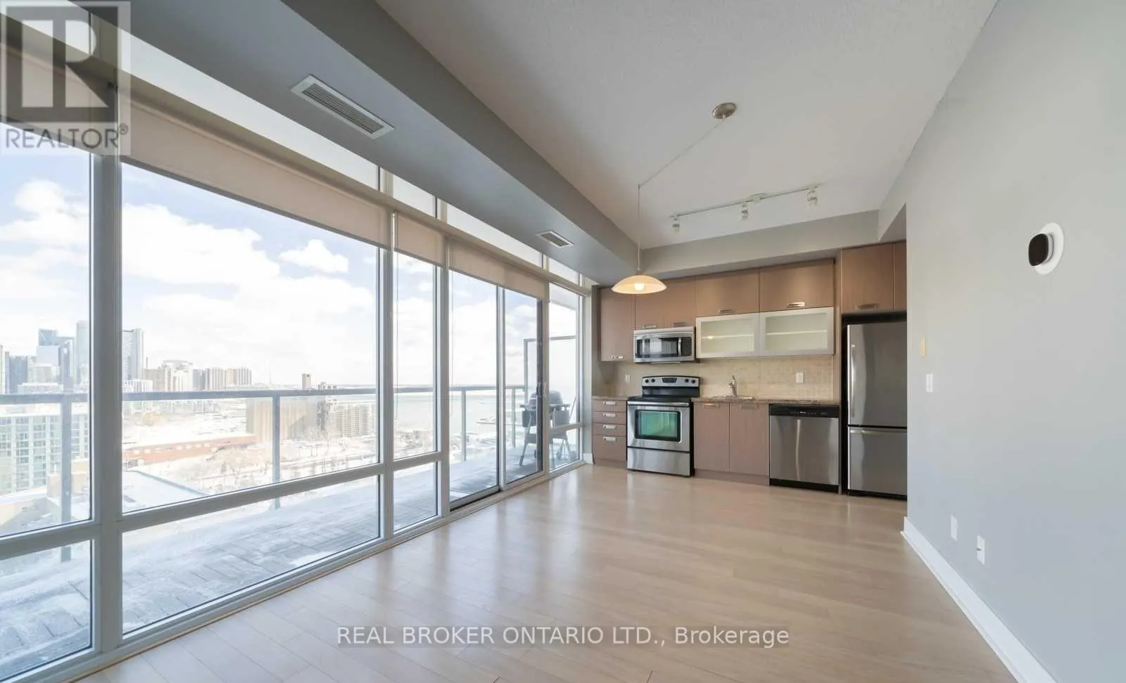 Lakeshore And Bathurst Experience the best of city living in this 1-bedroom suite with a million-dollar skyline view. The unit features 9 ft ceilings, full-size stainless steel appliances, and an Ecobee thermostat for modern comfort. Enjoy your morning coffee or evening unwind on the large balcony, complete with custom-fit tiles-perfect for soaking in that downtown backdrop.Inside, you'll find thoughtful upgrades like a built-in shoe rack, bedroom ceiling fan with light, and ensuite laundry for convenience. Window coverings are included, and there's even an electric BBQ-it can stay or go, your choice. Parking and locker are included. (id:27476)