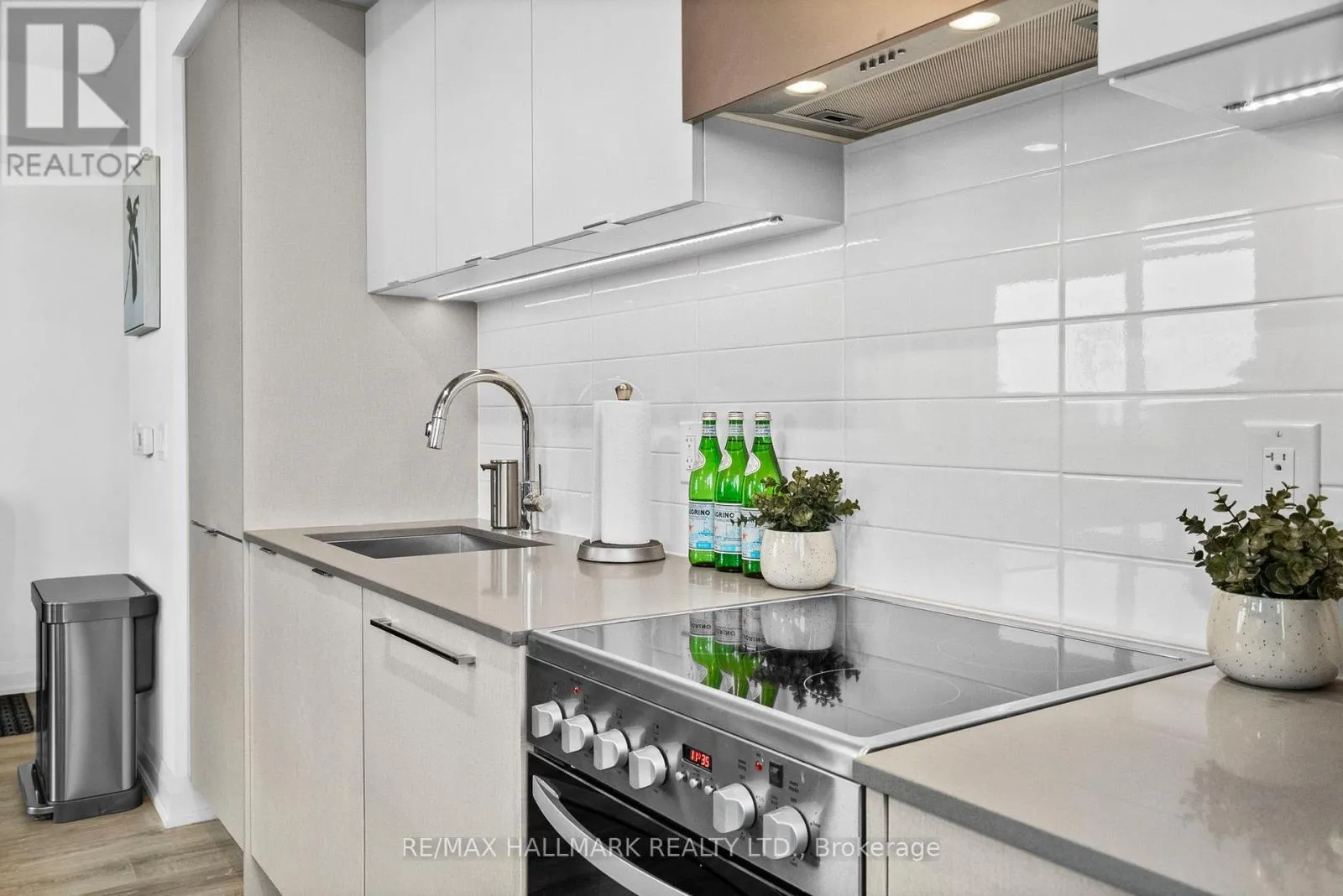 Cross Streets: East Mall and Bloor. ** Directions: East Mall - Bloor. Truly a rare find at Park Terraces. This 2 bedroom, 2 full bathroom corner unit with wrap around balcony (including a gas line for your BBQ and a water line for your plants too!) Ideal layout with maximum natural light from the multiple windows of this corner suite! Upgraded finish package includes integrated appliances, kitchen island, custom remote Hunter Douglas blinds, newly installed washer/ dryer pair and upgraded lighting throughout. Ensuite bedroom has a sizeable walk in closet as well as a separate den space located away from main living area. In addition, you'll love all this boutique building has to offer. Full service amenities including 24 hr Conceirge, outdoor pool, play area for the kids, gym, party room, sauna, library and more! Direct access to Hwy 427, 401 and Gardiner Expressway. (id:27476)