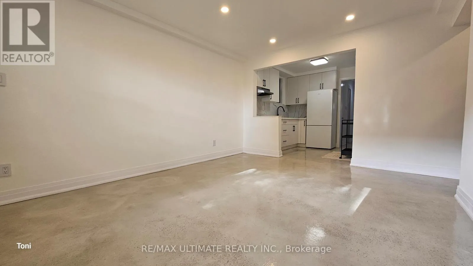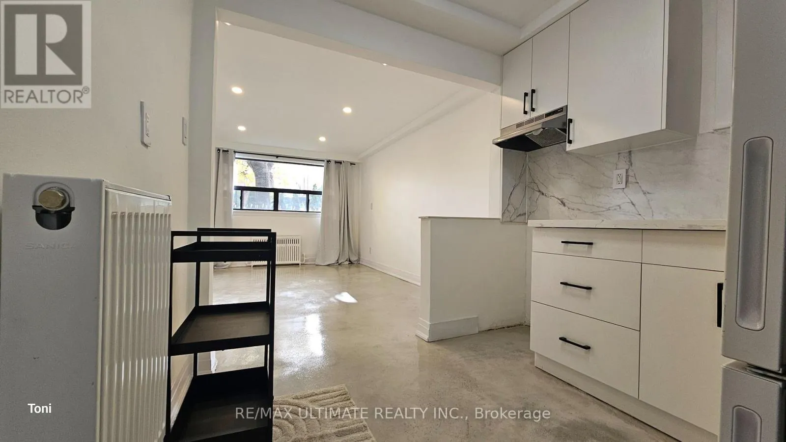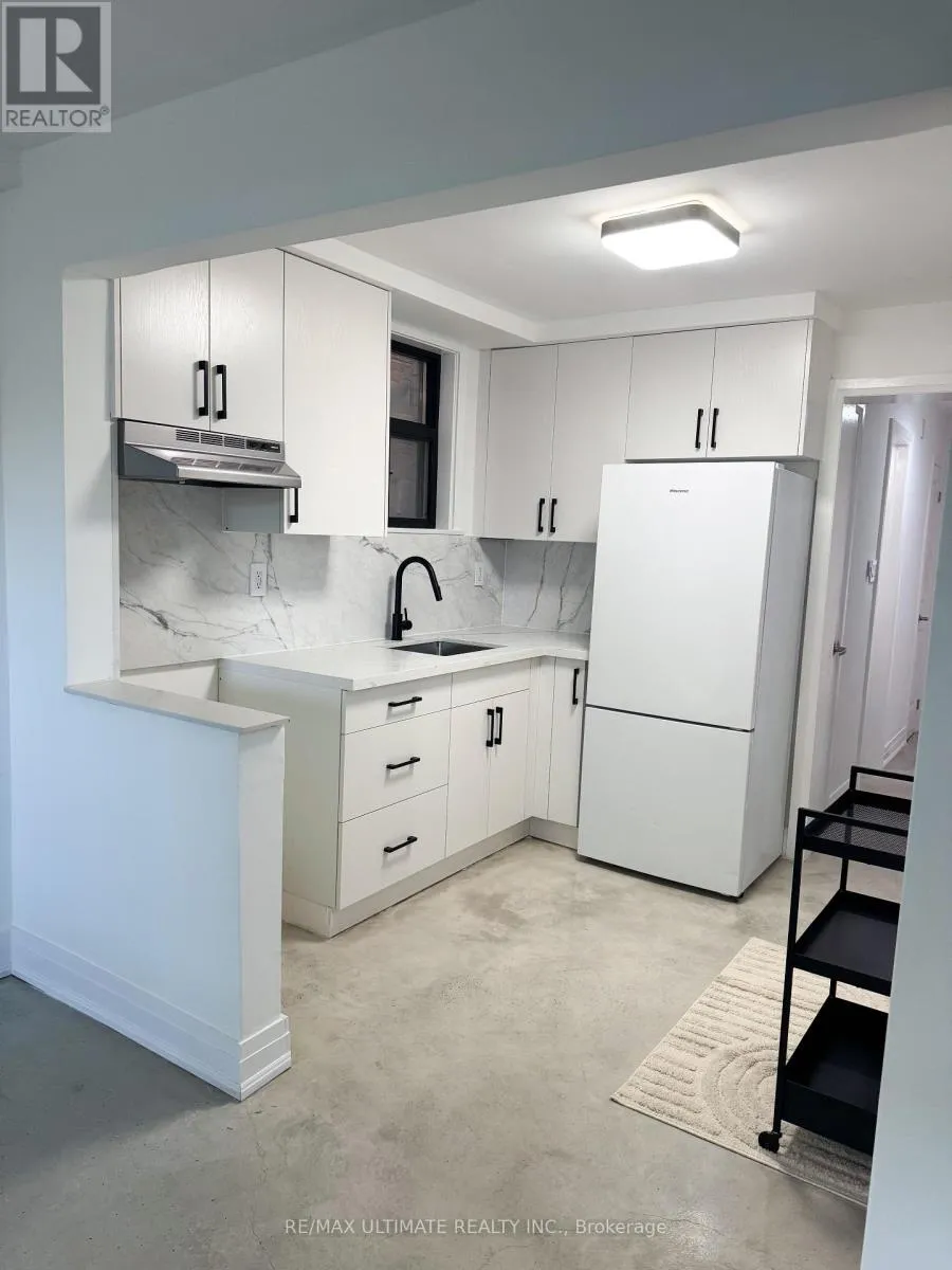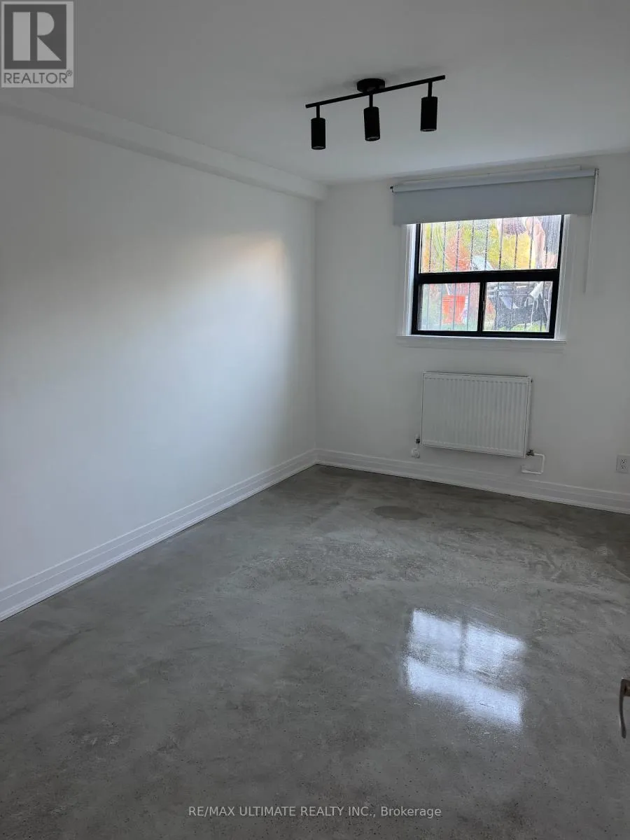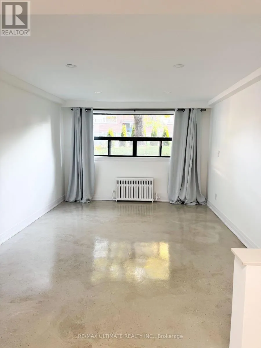 Eglinton Ave and Dufferin St This fully renovated 2-bedroom apartment exudes quality and style. It features insulated floors finished in polished concrete and is almost above ground, allowing for large windows that provide plenty of natural light. The spacious open-concept living and dining area boasts high ceilings and pot lights, creating a perfect atmosphere for entertaining, while overlooking a modern kitchen with quartz countertops. The apartment includes an ultra-modern three-piece bathroom with a glass shower and two large bedrooms, each equipped with a closet. Common laundry facilities are conveniently located on the same level. (id:27476)
