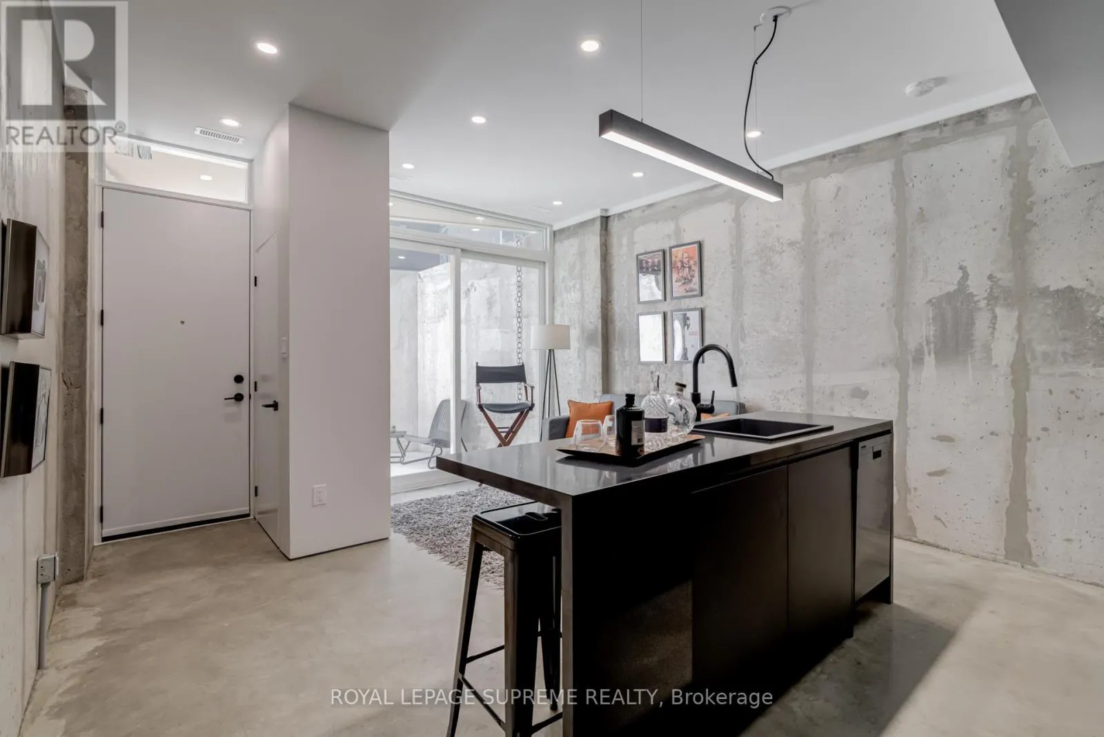 Scarlett and St Clair Ideal for corporate relocations, extended stays, or visiting professionals, this newly built 2-bedroom, 1.5-bath, two-level suite combines comfort, style, and convenience. Designed with flexibility in mind, the second bedroom can easily serve as a bright and functional home office. The open-concept living area features polished heated concrete floors, a modern kitchen with high-end appliances and a striking breakfast bar, plus in-suite laundry for added ease. Step outside to your own private patio, perfect for relaxing or entertaining. High-speed Wi-Fi, an abundance of natural light, and flexible lease terms make this home an excellent choice for any lifestyle. Situated in a professionally managed property within a vibrant, transit-friendly neighborhood close to shops, cafés, and city amenities - executive living has never been more effortless. (id:27476)