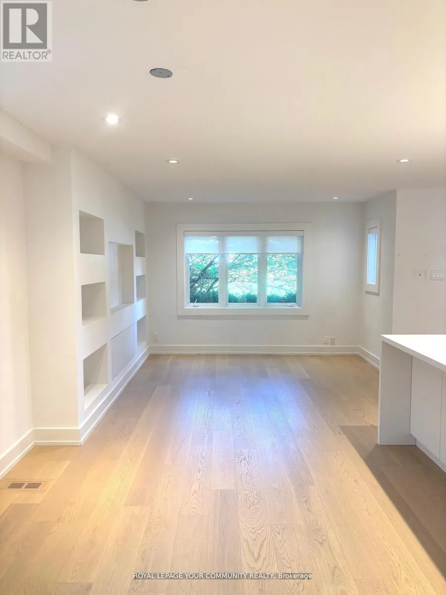 Avenue Rd & Lawrence Ave Great location, high end finishes from top to bottom including built-in panel ready appliances, calacatta marble kitchen backsplash, extra large custom kitchen island with quartz counters, white oak flooring throughout main and second floors, custom calacatta sink on main floor bath, custom double vanity with travertine counters and walk-in micro cement shower, lime wash custom millwork on both levels. All set in the sought after Bedford Park area on a deep corner lot with tiered decking, walk outs on all levels, hot tub and large shed/bar ideal for entertaining. Rare two car parking plus storage garage. (id:27476)