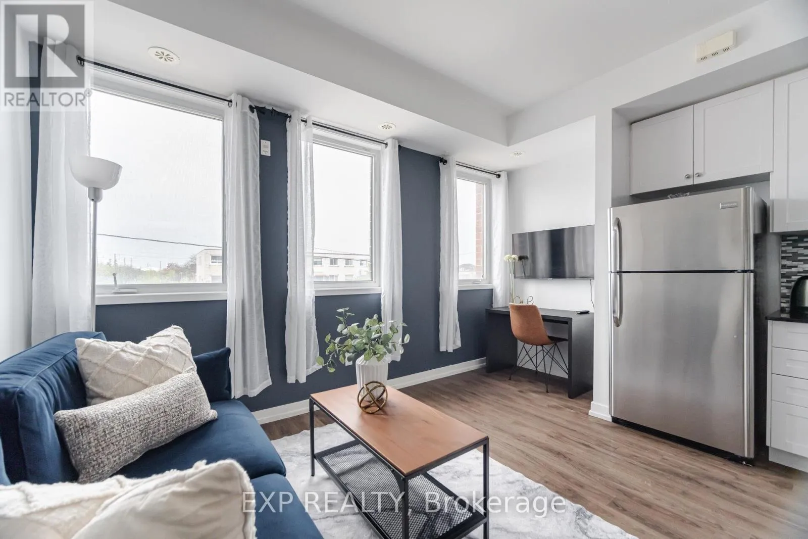 Cross Streets: Dufferin St & Wilson Ave. ** Directions: Dufferin & Wilson. AMAZING VALUE!!!...Experience urban living in the heart of Yorkdale Village! Boasting 883 sq ft of living space and a stunning 260 sq ft terrace, this bright and airy condo townhouse features 1 bedroom plus den and 2 bath. With its open-concept layout, 9-foot ceilings, and an abundance of natural light, this home offers both comfort and style. The generously sized den easily functions as a second bedroom, nursery, or home office. The sun-filled kitchen features stainless steel appliances, upgraded countertops, modern backsplash, and a large centre island with breakfast bar. Noteworthy is the expansive terrace, offering unobstructed city views and a convenient gas hook-up, perfect for enjoying summer BBQs and outdoor entertaining. Enjoy the convenience of an ensuite laundry, 1 underground parking spot, and ample visitors parking! Enjoy effortless commuting with quick access to TTC, Wilson Station, Downsview Park, HWY 401, Yorkdale Shopping Mall, schools, and the Humber River Hospital. Local businesses, coffee shops, and day to day amenities can be found right at your doorstep! Don't miss this incredible opportunity to live in one of North York's most desirable communities. Whether you're a first-time buyer, growing family, or an investor adding to your real estate portfolio, this unit offers incredible value and flexibility. Too much to mention!!... View the Virtual Tour! (id:27476)