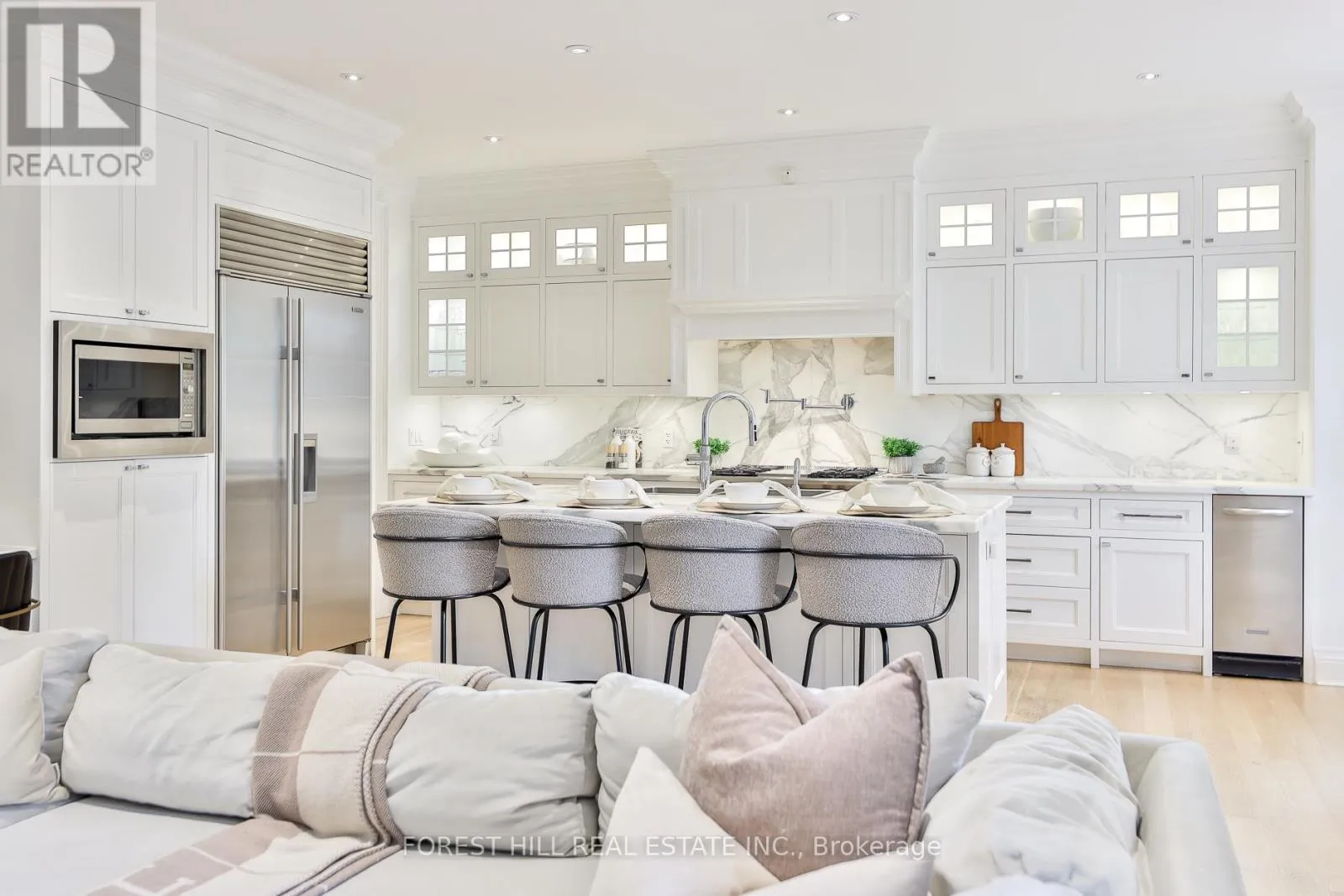 Avenue Rd & Brooke Luxurious Cricket Club Home Exuding sophistication and timeless craftsmanship, this recently renovated by Walden Homes; 2008 custom-built masterpiece sits proudly on an expansive 35 x 125 ft lot in the heart of Bedford Park/Cricket Club on a quiet highly desirable street. Offering nearly 3,900 sq. ft. of refined living space, this residence perfectly blends grandeur, warmth, and functionality.Beyond its elegant façade lies a home designed for both lavish entertaining and comfortable family living. The main level showcases soaring ceilings, gleaming hardwood floors, radiant in-floor heating, and an effortless flow between the formal living and dining rooms. The sun-drenched family room, anchored by a gas fireplace and exquisite built-ins, opens seamlessly to a gourmet, chef-inspired kitchen. This culinary haven features premium appliances, a generous eat-in area, large pantry and servery, and an abundance of natural light-equally suited for intimate breakfasts or festive soirées. Upstairs, the sumptuous primary suite is a true retreat, complete with a walk-in closet and spa-like ensuite bath. Three additional spacious bedrooms include a Jack-and-Jill bathroom pairing-ideal for family living or guests.The lower level extends the home's versatility with a sprawling recreation room, bespoke cabinetry, a fifth bedroom or private office/gym, and a full laundry room. Outside, discover an exceptional "pool-sized" backyard-private, serene, and perfect for entertaining, play, or tranquil relaxation.With solid construction, radiant comfort, thoughtful updates, and impeccable finishes throughout, this is a residence that will evolve gracefully with its owners. Situated steps from renowned schools (including Lawrence Park Collegiate), boutique shops, parks, and transit-this is not just a home, but a statement of lifestyle and legacy.A truly rare opportunity to own a forever home in one of Toronto's most coveted neighbourhoods. (id:27476)