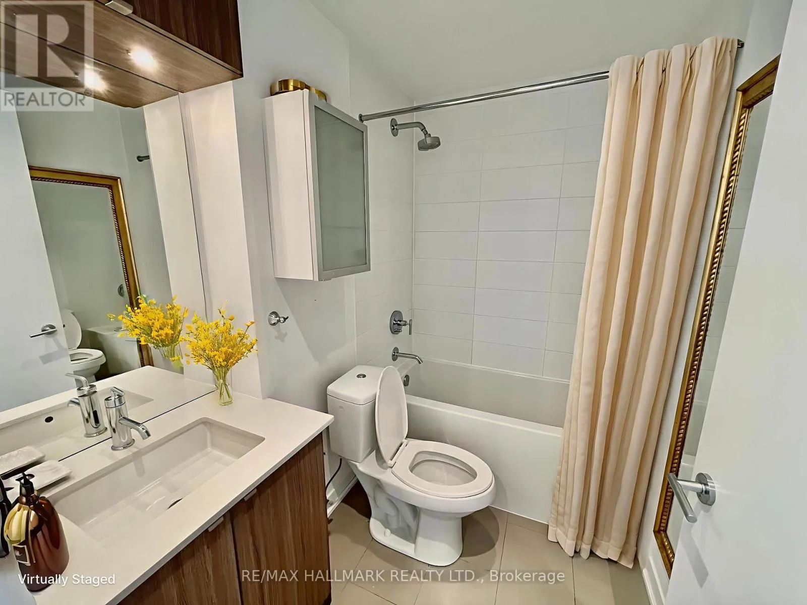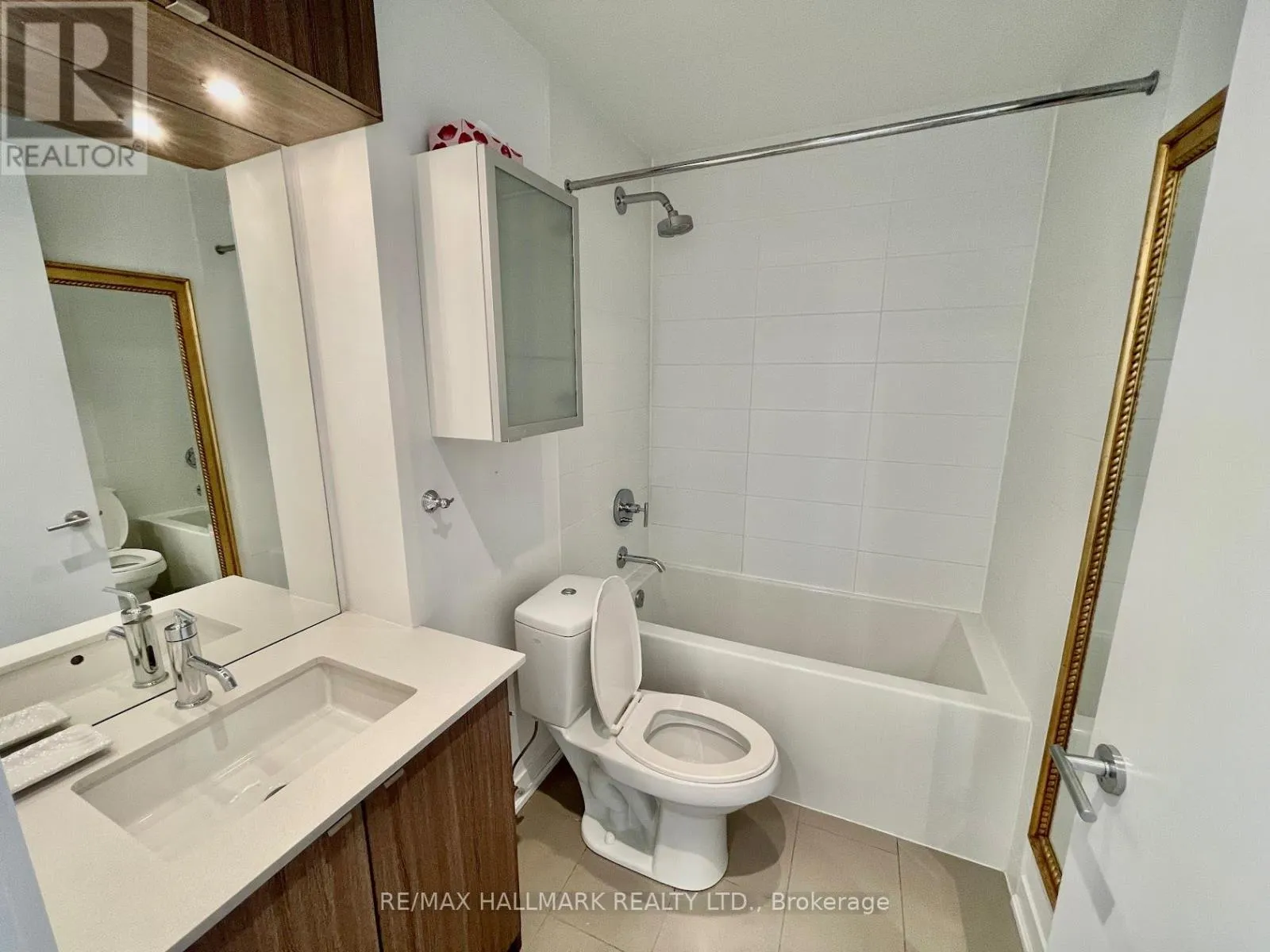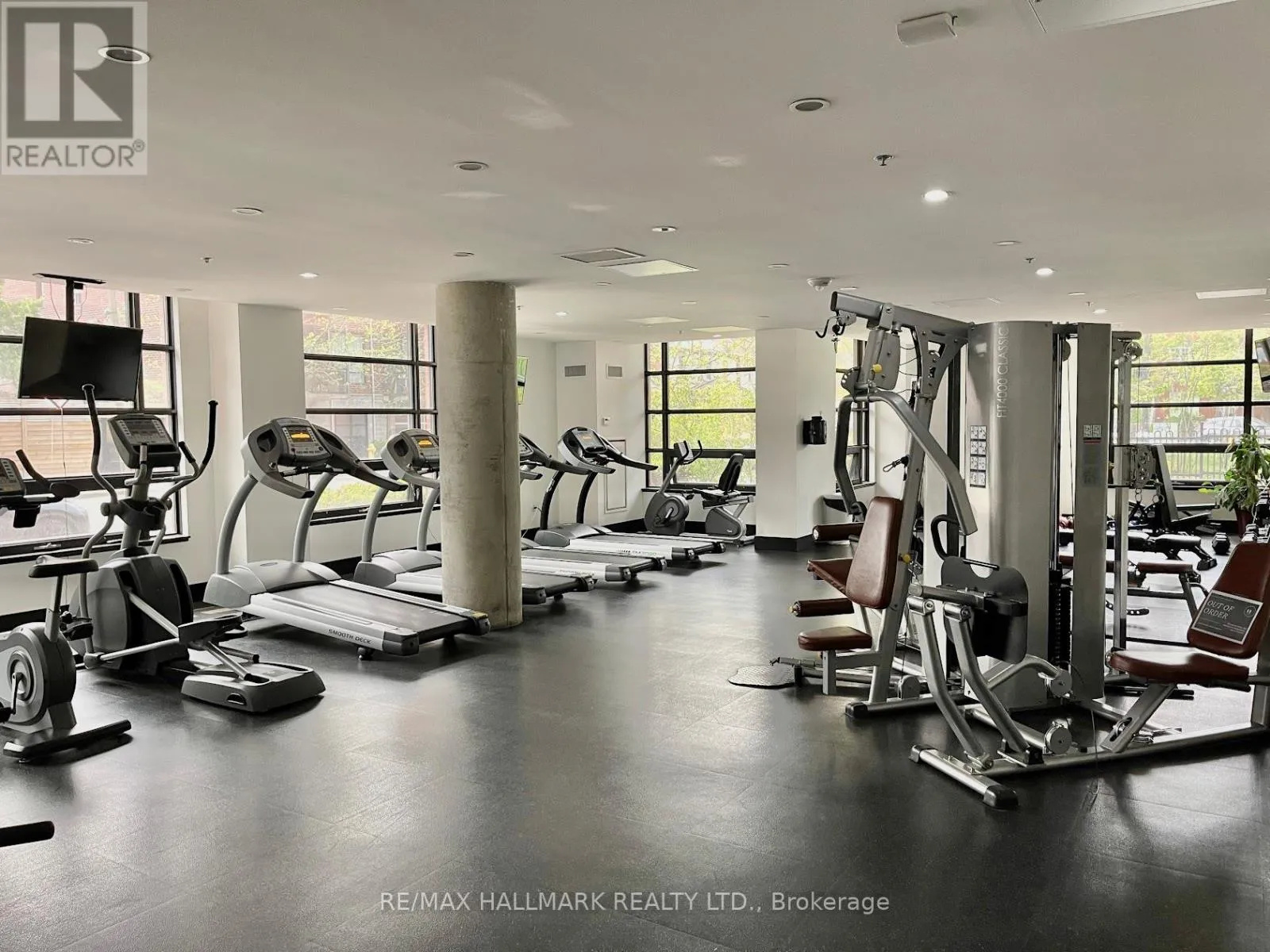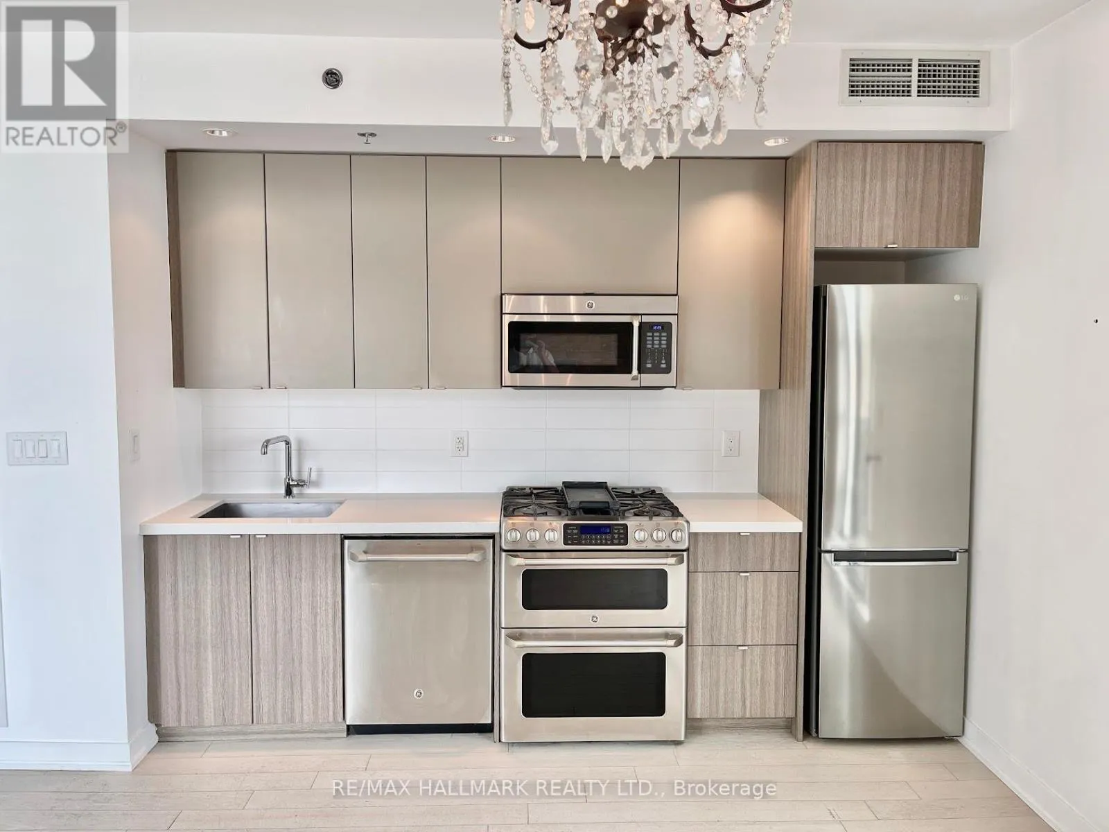 Cross Streets: Queen And Carlaw. ** Directions: Carlaw ave and Colgate ave. Experience loft living at Showcase Lofts in the heart of Leslieville. This sleek 1-bedroom suite blends exposed brick charm with a clean, modern open-concept layout. The kitchen features full-size stainless steel appliances, stone counters, and a gas cooktop-perfect for anyone who loves to cook. Hardwood floors run throughout, and the large bedroom window fills the space with natural light. You'll also find a spacious closet, in-suite laundry, a locker, and parking included. Enjoy a generous balcony overlooking the quiet courtyard-ideal for morning coffee or evening drinks. Step outside and you're moments from Queen Street's best cafés, restaurants, and transit. A stylish, move-in-ready home in one of Toronto's most vibrant neighborhoods. *Some photos have been virtually staged* (id:27476)