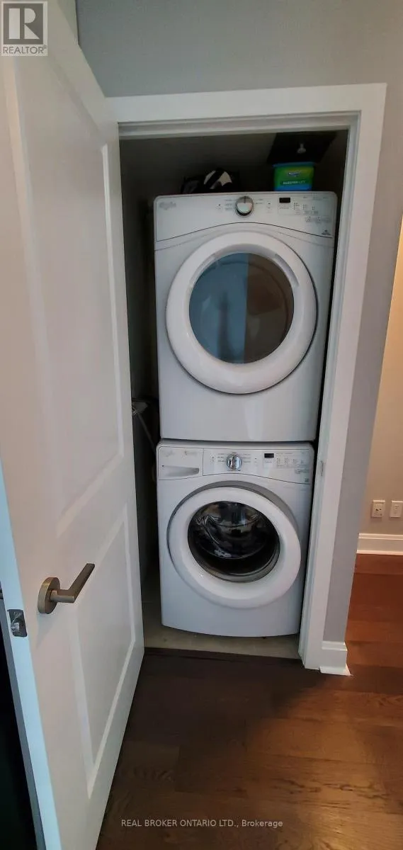 Cross Streets: Lake Shore Blvd W/ Park Lawn Rd. ** Directions: One Block East of Park Lawn Rd on the south side of Lake Shore Blvd W. Welcome to Jade Waterfront Condos, where contemporary design meets relaxed lakeside living. Perfect for a young professional, this refreshed 1-bedroom + media suite invites you to settle in and start your next chapter in style. Step inside to find a bright galley-style kitchen, beautifully equipped with stainless steel appliances, a deep sink, and lacquered cabinetry softly lit by under-cabinet LEDs. Every detail has been considered, from soft-close drawers to a dedicated filtered water tap for those small, everyday luxuries. The bathroom is truly a place to unwind, with marble finishes, a deep soaker tub, and glass shower doors that frame a space designed for quiet moments of calm. When it's time to rest, the queen-sized bedroom welcomes you with Hunter Douglas blackout blinds, balcony access, and something rare and truly special: this is the only 1-bedroom layout in the building that includes a full walk-in closet. Working from home? The pre-wired media alcove makes the perfect home office. Tucked neatly away, yet open enough to stay connected to the flow of the suite. Your in-suite laundry means convenience is never far - a full-sized GE washer/dryer hidden behind closed doors, ready when you need it. The open-concept living area gives you space to create, whether that means cozy movie nights or dinner parties with the lake as your backdrop. And speaking of the lake, step out to your 30-foot full-length balcony, where southwesterly views of Lake Ontario stretch endlessly beyond the glass-panelled railings. Could it get any better? With 620 sq. ft. inside and 144 sq. ft. outside, this suite offers 764 sq. ft. of thoughtfully designed living that effortlessly blends function, flow, and charm. Outside, enjoy the ultimate convenience with cafés, restaurants, groceries, and a scenic waterfront path just steps away. Here, every detail tells a story, and it's ready for you to make it your home. (id:27476)