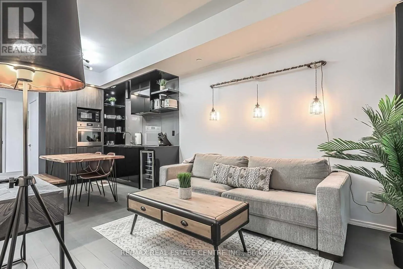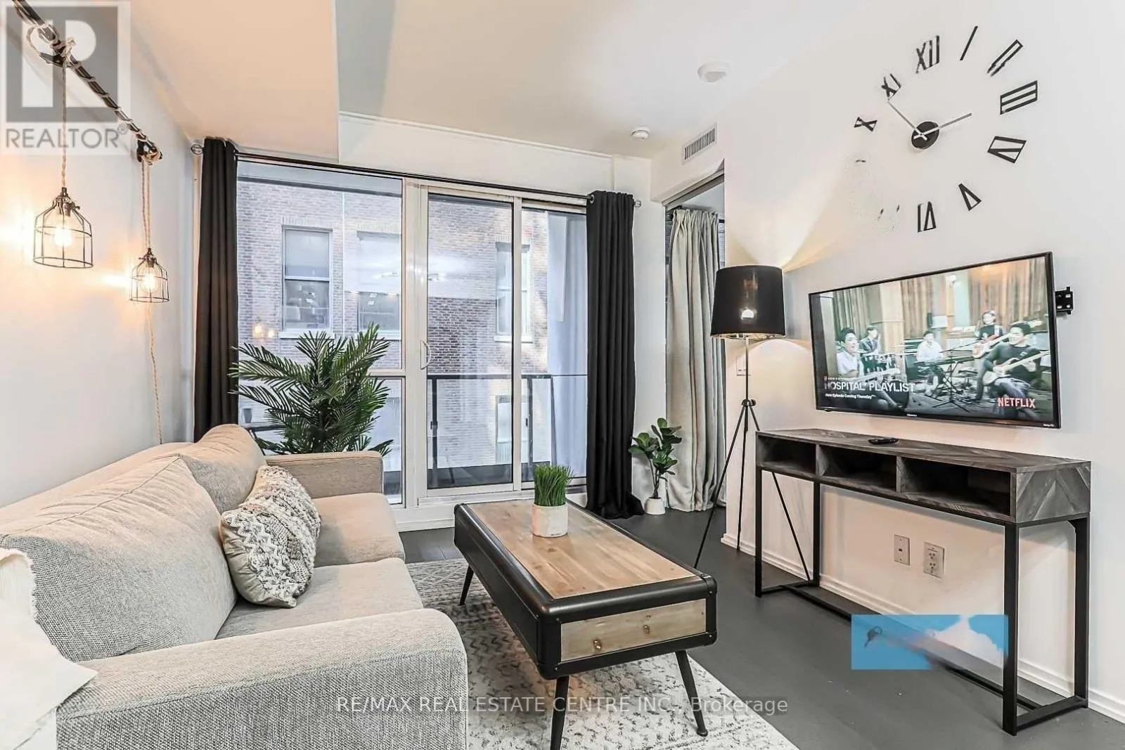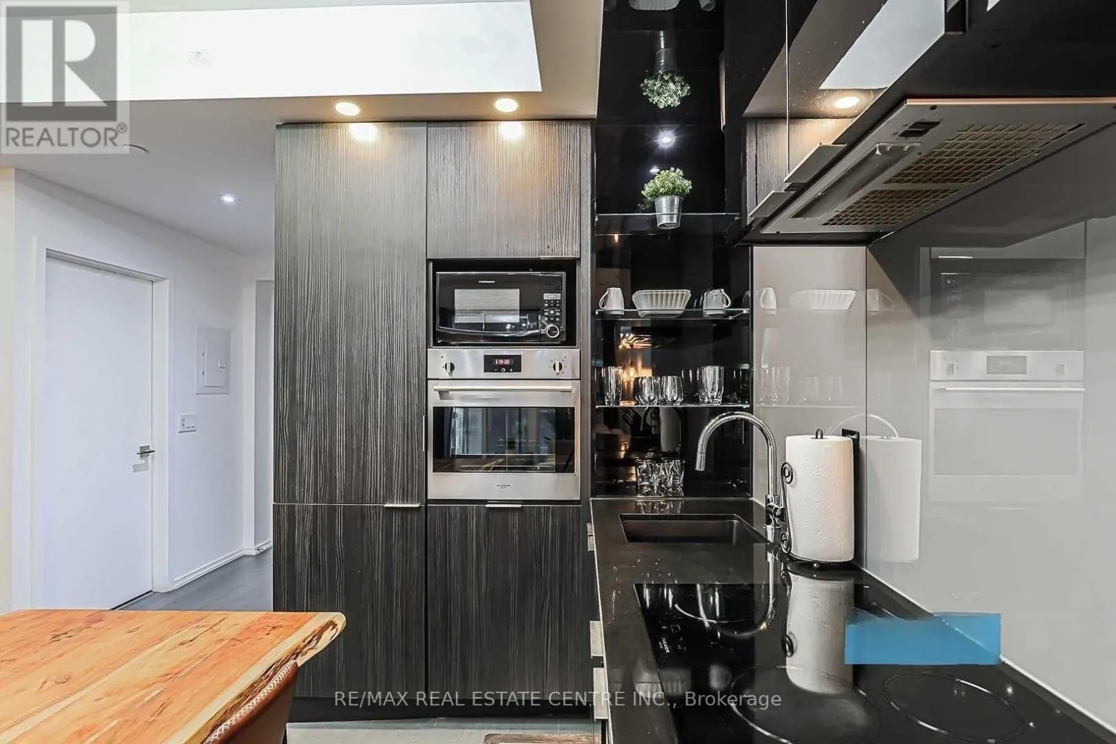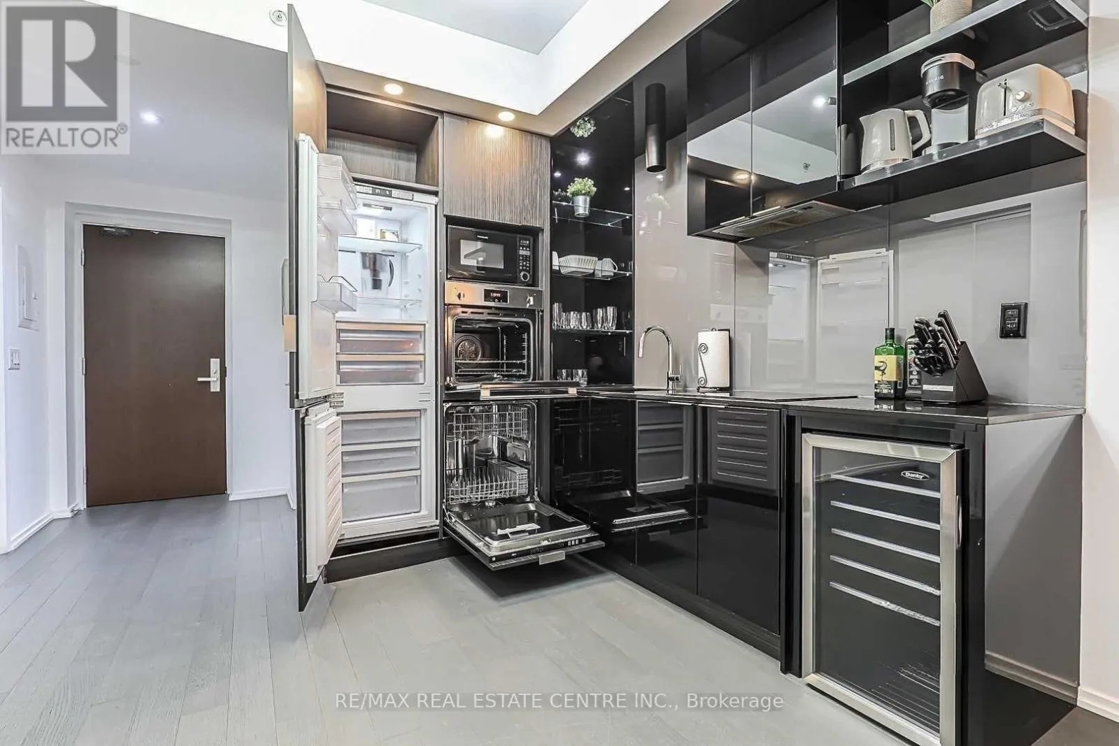 Bay/Adelaide Welcome to urban luxury at 70 Temperance St, Suite 807, a stylish one-bedroom plus den in the prestigious INDX Tower, ideally located in the heart of Toronto's Financial District. This bright and spacious suite features 9-foot ceilings, floor-to-ceiling windows, and a modern open-concept layout with a sleek kitchen showcasing quartz countertops, a chic backsplash, built-in wine cooler, and wide plank flooring throughout. The versatile den with sliding doors is perfect as a second bedroom or home office. Enjoy world-class building amenities including a fitness centre, spin studio, theatre room, outdoor terrace, and 24-hour concierge. Steps to the PATH, Bay Street, Nathan Phillips Square, Eaton Centre, and top dining spots, this residence offers the ultimate blend of luxury and convenience. (id:27476)
