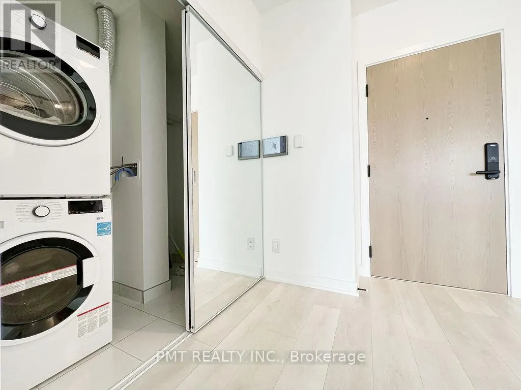 River St & Dundas St E Soak up incredible city views from the 23rd floor in this beautifully designed one-bedroom suite in Toronto's Downtown East/Corktown. The layout is thoughtfully designed, featuring 9-ft smooth ceilings, wide plank flooring, sleek quartz countertops, energy-efficient built-in appliances, a stacked washer/dryer, and a mirrored foyer closet all blending style with convenience. The east-facing windows bring in tons of natural light, making the space feel bright and inviting. Just steps from Underpass Park, local cafes, restaurants, and the Distillery District, you'll also enjoy unbeatable connectivity with a perfect 100 Transit Score and quick access to the DVP, Gardiner, and TTC routes. Beyond the unit, enjoy next-level amenities: a fully equipped gym, yoga studio, study and meeting rooms, a stylish party lounge, kids playroom, outdoor BBQ area, and a rooftop pool with jaw-dropping skyline views. Whether your working, relaxing, or entertaining, this condo delivers the ultimate downtown lifestyle. (id:27476)