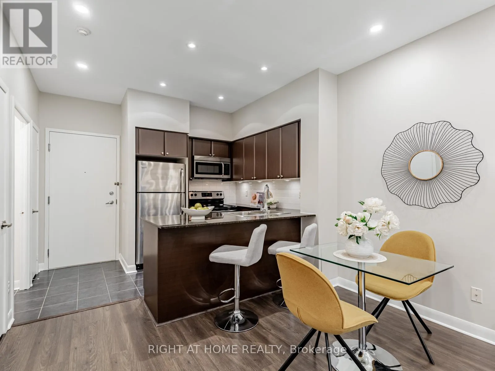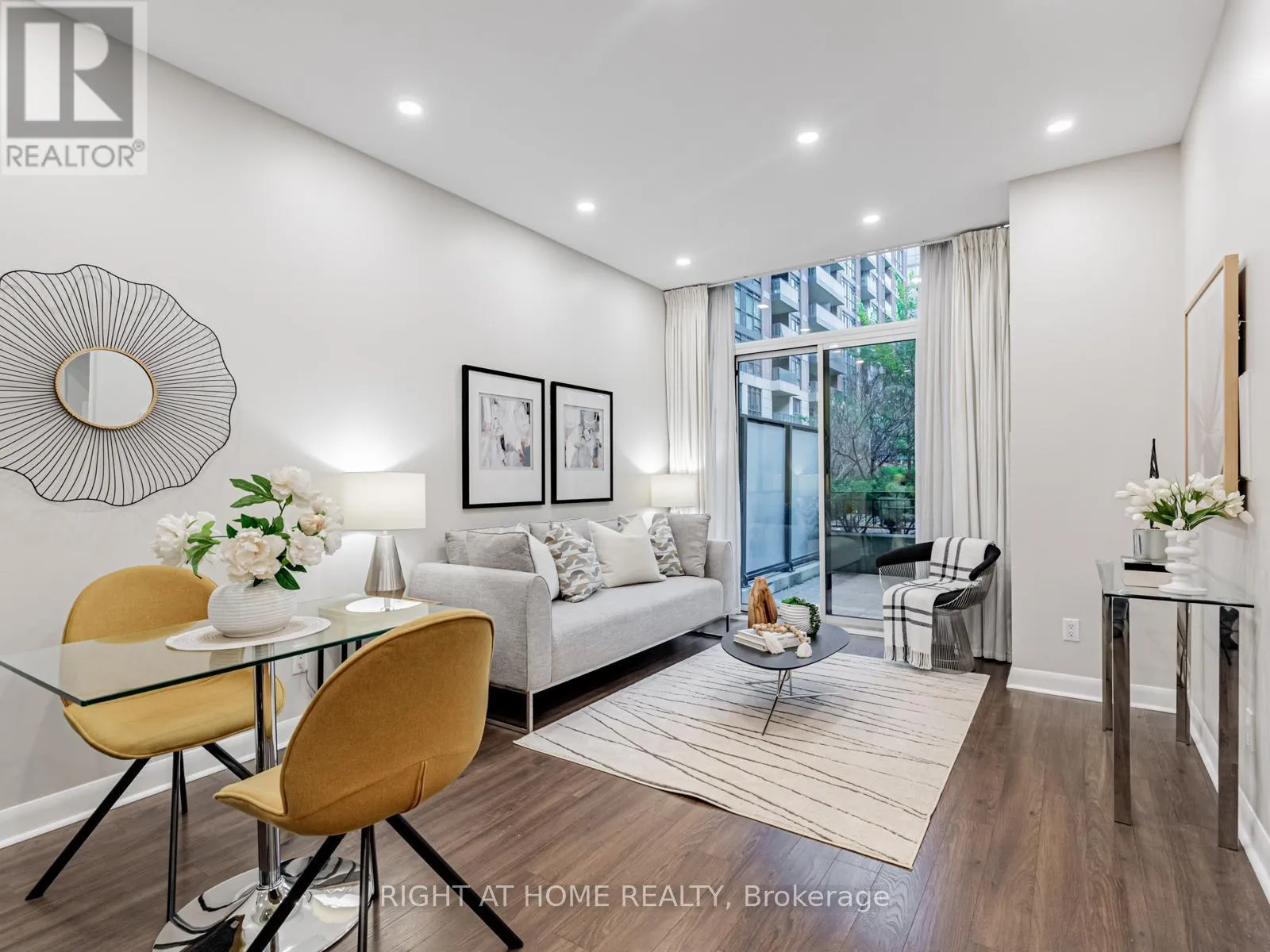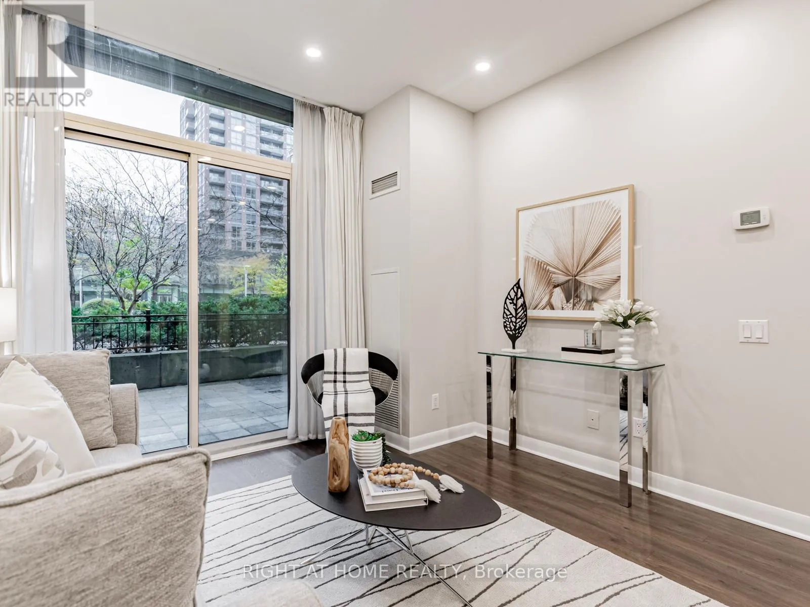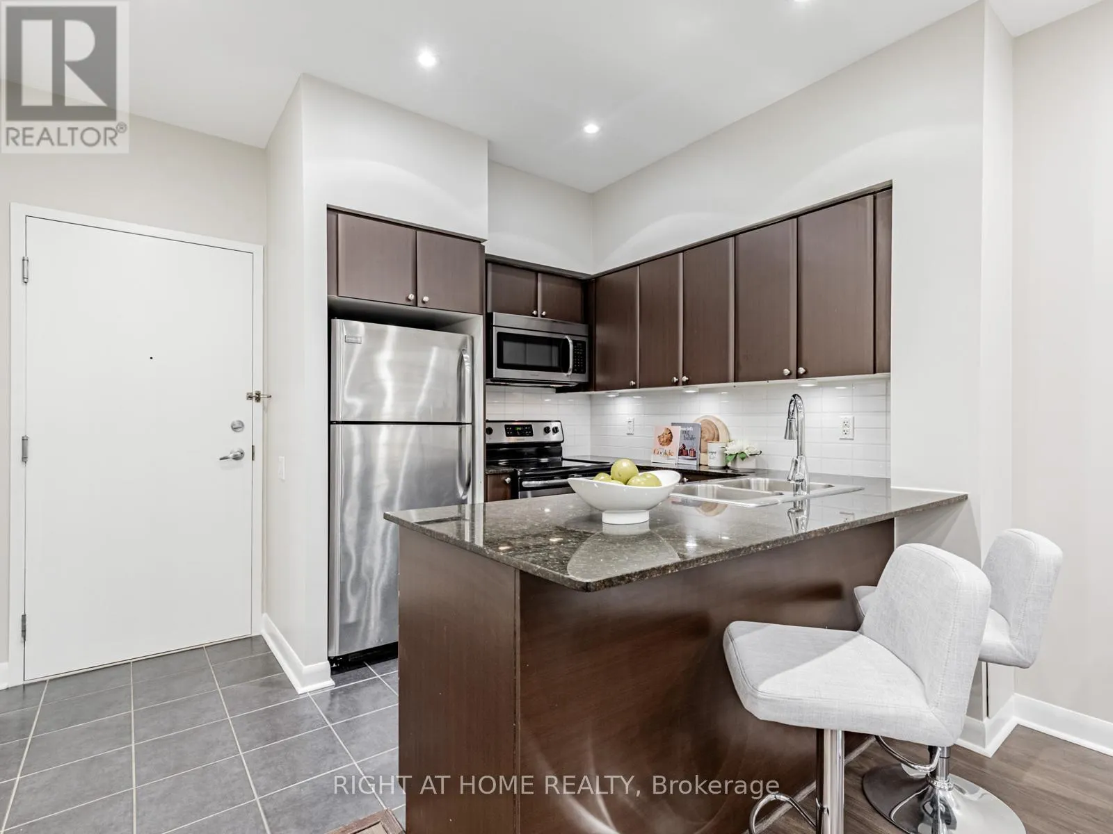 Cross Streets: Wilson Ave / Allen Rd. ** Directions: Wilson Ave & Tippett Road. Welcome to the Gramercy Park Lifestyle, just steps away from Wilson Subway Station. This unique 1 Bedroom + Large Den + a coveted, expansive Terrace unit on the ground floor is a rare gem. The unit is spacious & bright with a very functional layout and no wasted space. (Unit ~659 sqft + Terrace / Patio ~220 sqft). The very usable terrace overlooks a private & serene courtyard/ gardens and is perfect for entertaining guests outdoors. This unit is located in the quieter part of the building, with easy access to Wilson Ave and transit without needing to use an elevator or to exit through the lobby. The soaring 9 feet ceilings, large glass doors / windows and the coveted south exposure floods the unit with natural light! The primary bedroom has ample storage, more floor to ceiling windows and enough space for a large bed + office desk. The den can be a dedicated office space or it can do double duty as a guest bedroom with a double bed. The kitchen has a lot of cabinet space for storage, full size Stainless Steel Appliances, a Granite Countertop and a space saving Breakfast Bar. This turnkey unit is freshly painted and comes with pot lights galore! Gramercy Park is served by multiple bus routes, the subway and is just minutes from Yorkdale, Costco and lots more shopping along with easy access to Hwy 401 and Allen Rd. (id:27476)
