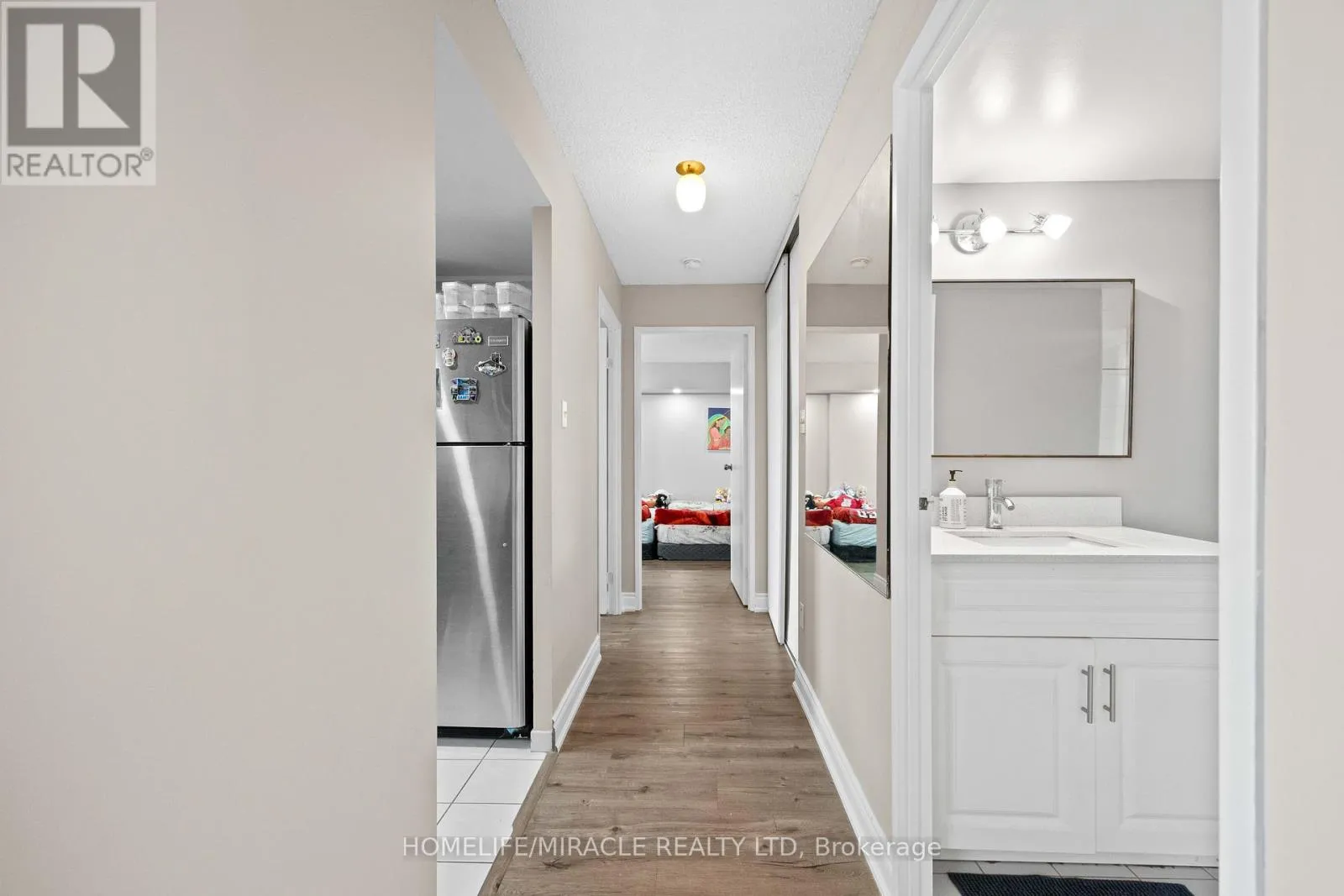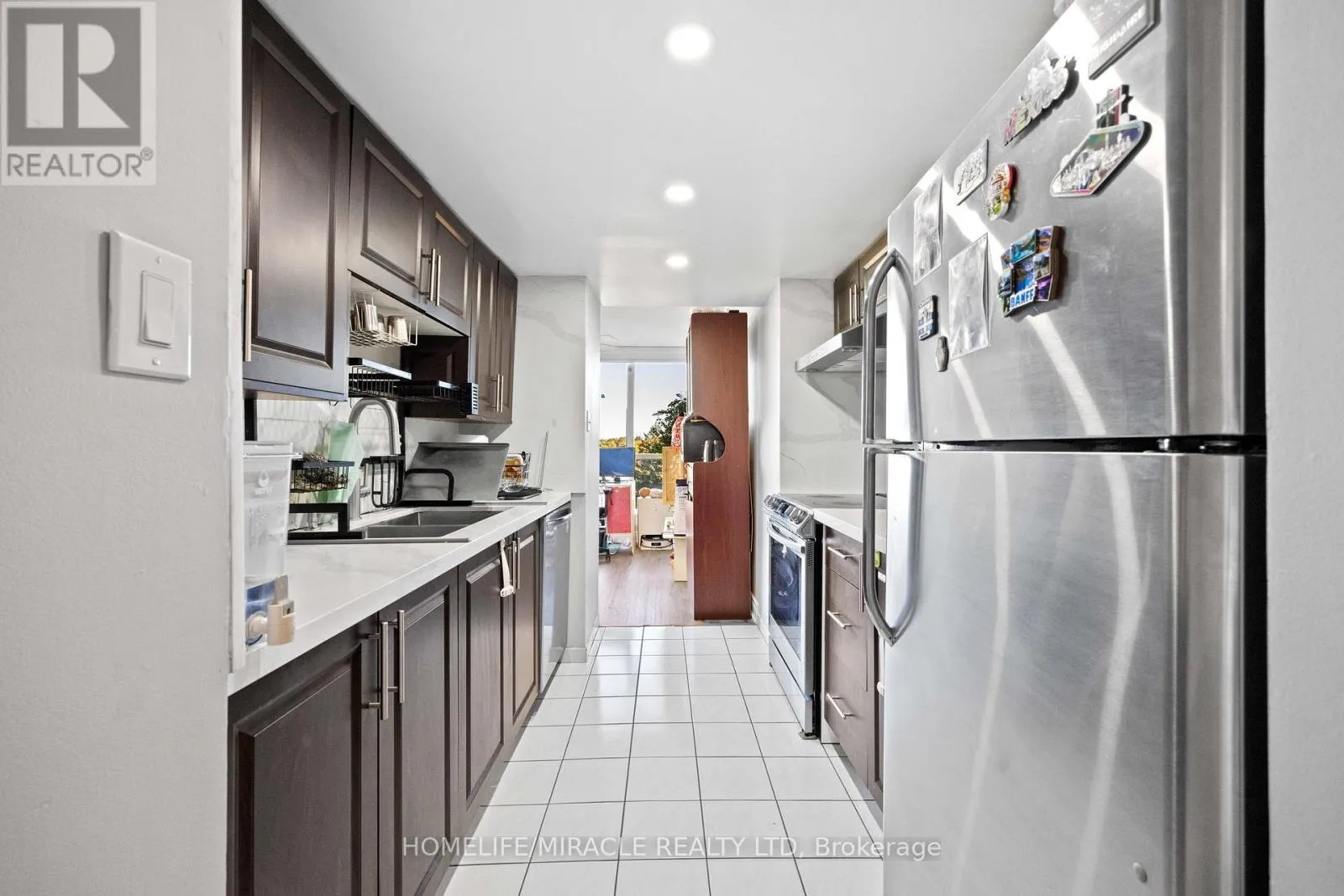 Kipling/Steeles Welcome to this bright and spacious 2-bedroom, 2-bathroom condo on the 3rd floor, where natural light, modern finishes, and thoughtful design come together to create an exceptional home. From the moment you enter, the open-concept layout and freshly painted walls set the tone for a warm, inviting space perfect for everyday living. The large living and dining area offers comfort and flexibility, ideal for relaxing after a long day or entertaining family and friends. Upgraded laminate flooring runs throughout the unit, giving it a clean, modern look that is stylish, durable, and easy to maintain. The kitchen is a standout, designed with both function and beauty in mind. Featuring stainless steel appliances, a contemporary tiled floor, and a sleek backsplash, it's a space where cooking and entertaining feel effortless. The primary suite is generously sized, offering a private retreat with a large walk-in closet and a beautifully updated 4-piece ensuite that makes every day feel like a spa day. The second bedroom is equally spacious and versatile, making it perfect for children, guests, or even a home office. Both bedrooms are enhanced by floor-to-ceiling windows that flood the rooms with natural light, creating bright, cheerful spaces all day long. The second bathroom has been thoughtfully upgraded with modern fixtures and a luxurious rainfall shower set, adding style and comfort your family will appreciate. one of the highlights of this condo is the expansive covered balcony, a true extension of your living space where you can enjoy morning coffee, unwind in the evening, or entertain year-round, rain or shine. This family-friendly building also offers an impressive list of amenities including a gym, sauna, squash court, tennis courts, and swimming pool, giving you endless options for fitness and recreation without leaving home. With schools, parks, shopping, and transit just steps away, this condo delivers the perfect balance of lifestyle, convenience, and community. (id:27476)