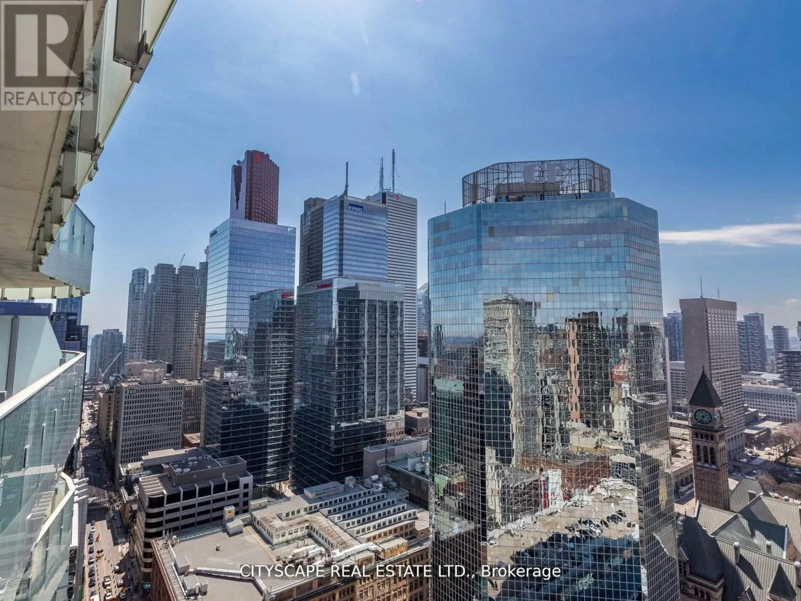 Cross Streets: Yonge st/Queen St. ** Directions: Queent st/ YongeSt. Beautiful 1 Bedroom + Den suite at the iconic Massey Tower, 197 Yonge St - perfectly situated across from the Eaton Centre in the vibrant heart of downtown Toronto! This high-floor residence showcases unobstructed west-facing views and a large private balcony. Thoughtfully designed layout with a separate den, ideal for a home office or study area. Steps to the subway, Financial District, hospitals, U of T, and Toronto Metropolitan University. Experience luxury urban living with world-class amenities and unbeatable Walk & Transit Scores of 100.Excellent location - steps to subway, Eaton Centre, and Financial District. (id:27476)