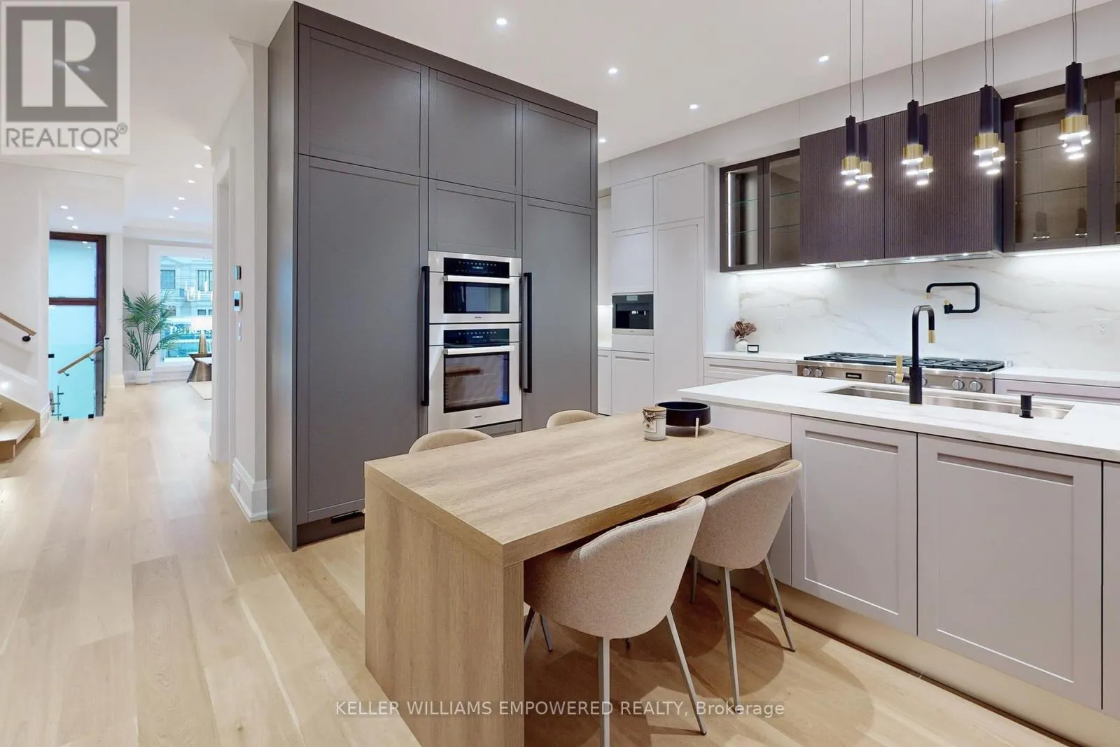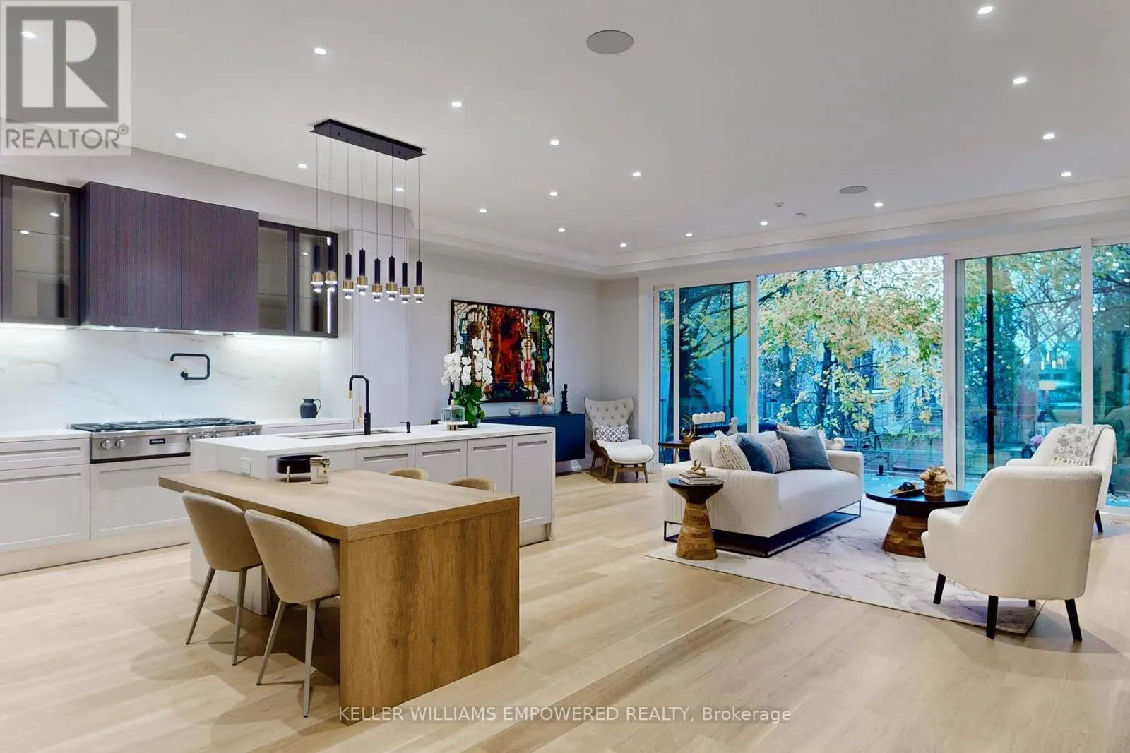 Cross Streets: Avenue Rd/Joicey Blvd. ** Directions: On Joicey Blvd, East of Avenue Rd. Situated on an exceptional 31 x 150 ft south-facing lot, this newly constructed 4,200 sq. ft. residence offers refined living in the heart of the coveted Cricket Club community, an address synonymous with prestige and family appeal. The home welcomes with a stately Mahogany front door and a heated driveway, walkway, and steps providing year-round comfort and ease. Soaring 10-foot ceilings and full-height windows create an airy, light-filled ambiance, while wide-plank white oak floors and tailored LED lighting add warmth and sophistication throughout. At the heart of the home, the Italian-crafted Scavolini kitchen is both striking and highly functional featuring Miele Series integrated appliances, stone countertops, custom cabinetry, and an elegant waterfall island with wood table extension. The open-concept family room flows seamlessly outdoors through oversized sliding glass doors, revealing a spacious deck perfect for hosting or relaxing in privacy while enjoying the surround sound system. The upper level is designed with family comfort in mind, offering four generously scaled bedrooms each with its own private en-suite and custom built-in closets. The primary suite is a sanctuary unto itself, complete with a spa-like bath, expansive walk-in, and balcony w/tranquil views. The 2nd Bdrm is as spacious as the primary Bdrm! The lower level offers versatility and elegance with radiant in-floor heating, Italian porcelain slab floors, a separate entrance, private bedroom with en-suite bath, laundry, and wet bar ideal for guests, extended family, or live-in support. An unmatched location walking distance to Avenue Road Shops/Cafes/Restaurants, the prestigious Cricket Club, minutes to Rosedale Golf Club, and close to Toronto's top private and public schools including Havergal, Crescent, TFS and Lawrence Park Collegiate. Quick access to Hwy 401 and York Mills subway. A rare opportunity to enjoy discreet luxury in one of Toronto's most established family neighbourhoods. (id:27476)