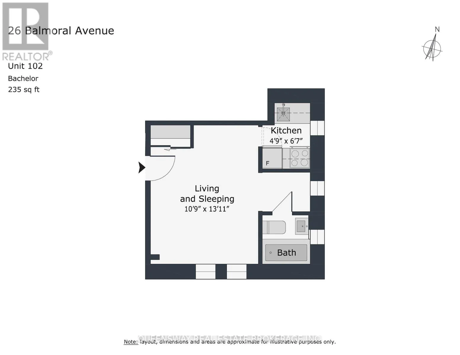 Cross Streets: Balmoral Avenue & Yonge Street. ** Directions: St. Clair Avenue West & Yonge Street. Experience modern city living in this fully renovated, never-lived-in bachelor apartment located in the heart of Midtown Toronto. Offering approximately 235 sq. ft. of efficiently designed living space, this suite delivers exceptional value just steps from Yonge Street in the highly sought-after Yonge & St. Clair neighbourhood. The apartment features a brand-new kitchen with stainless steel appliances (fridge, stove, built-in microwave with hood vent) and a window, a bright open living area with two windows, and a newly renovated 3-piece bathroom finished with contemporary fixtures and a window. Thoughtful design details and optimized layout make this compact space ideal for comfortable city living, with a closet and a pocket area possible for an office. Residents have access to a shared laundry room, and water and heat are included in the lawful rent. Perfectly positioned within walking distance to boutique shops, major retailers, fine dining, grocery stores, and parks-with direct subway access property combines modern comfort with unmatched convenience. Limited-time incentive: enjoy a $200 monthly rent discount from months two through seven, providing $1,200 in total savings. A rare opportunity to lease a fully renovated bachelor suite in one of Toronto's most desirable urban communities at a very affordable price. (id:27476)