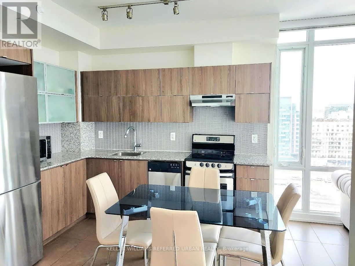 Bathurst And Fort York Rarely offered, beautifully furnished corner unit with unobstructed city and lake views, and a huge balcony! Bright and spacious 1-bedroom with 9-ft ceilings and a modern open-concept kitchen featuring granite countertops and stainless-steel appliances. Fully furnished with high-end furniture; renovated, freshly painted, with new flooring and a new washer/dryer. Enjoy excellent building amenities including a gym, BBQ area, 24-hour concierge, and visitor parking. Steps to shops, cafes, restaurants, the waterfront, and streetcar. Landlord prefers furnished but is open to unfurnished and flexible on move-in date! (id:27476)