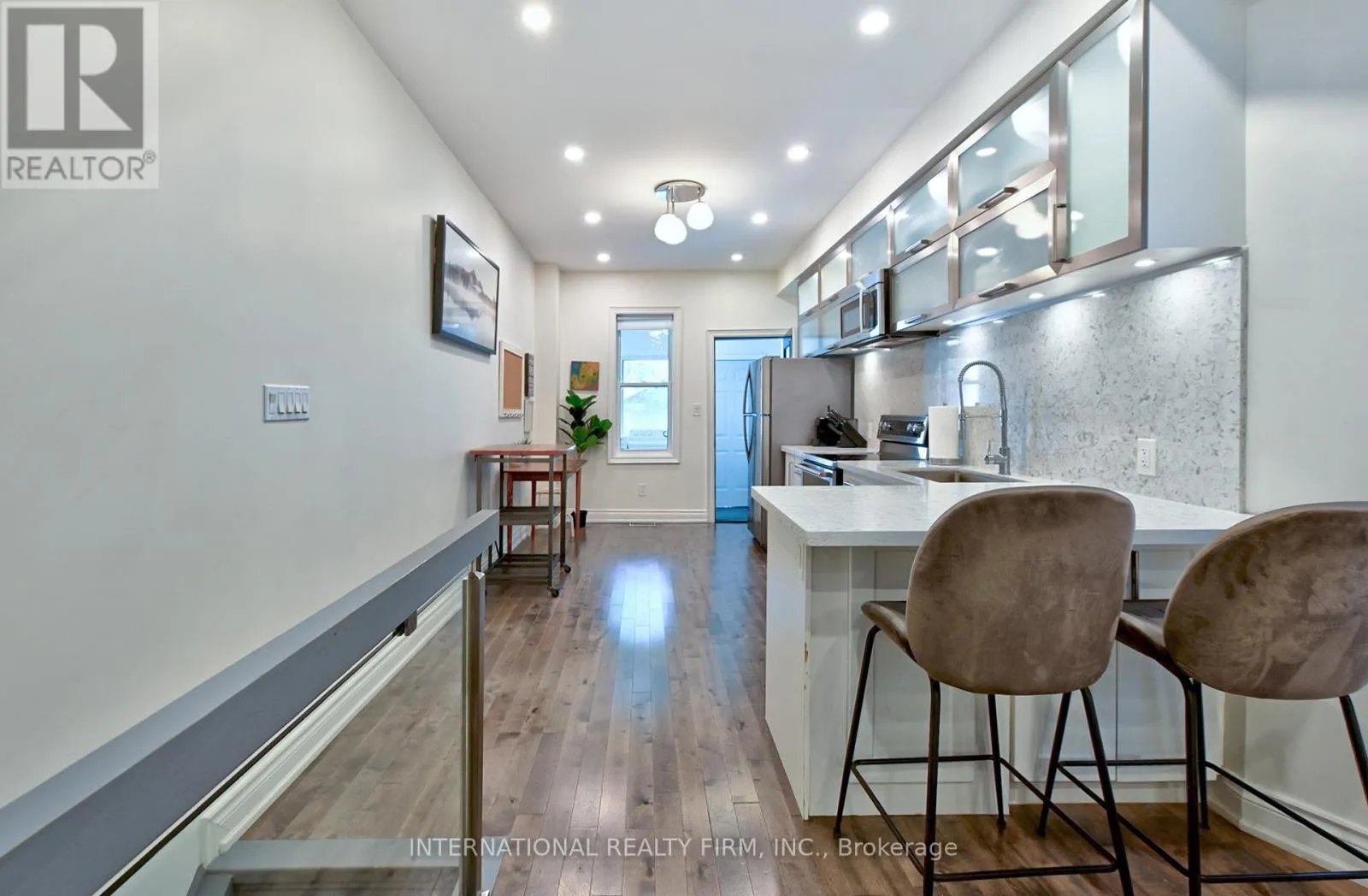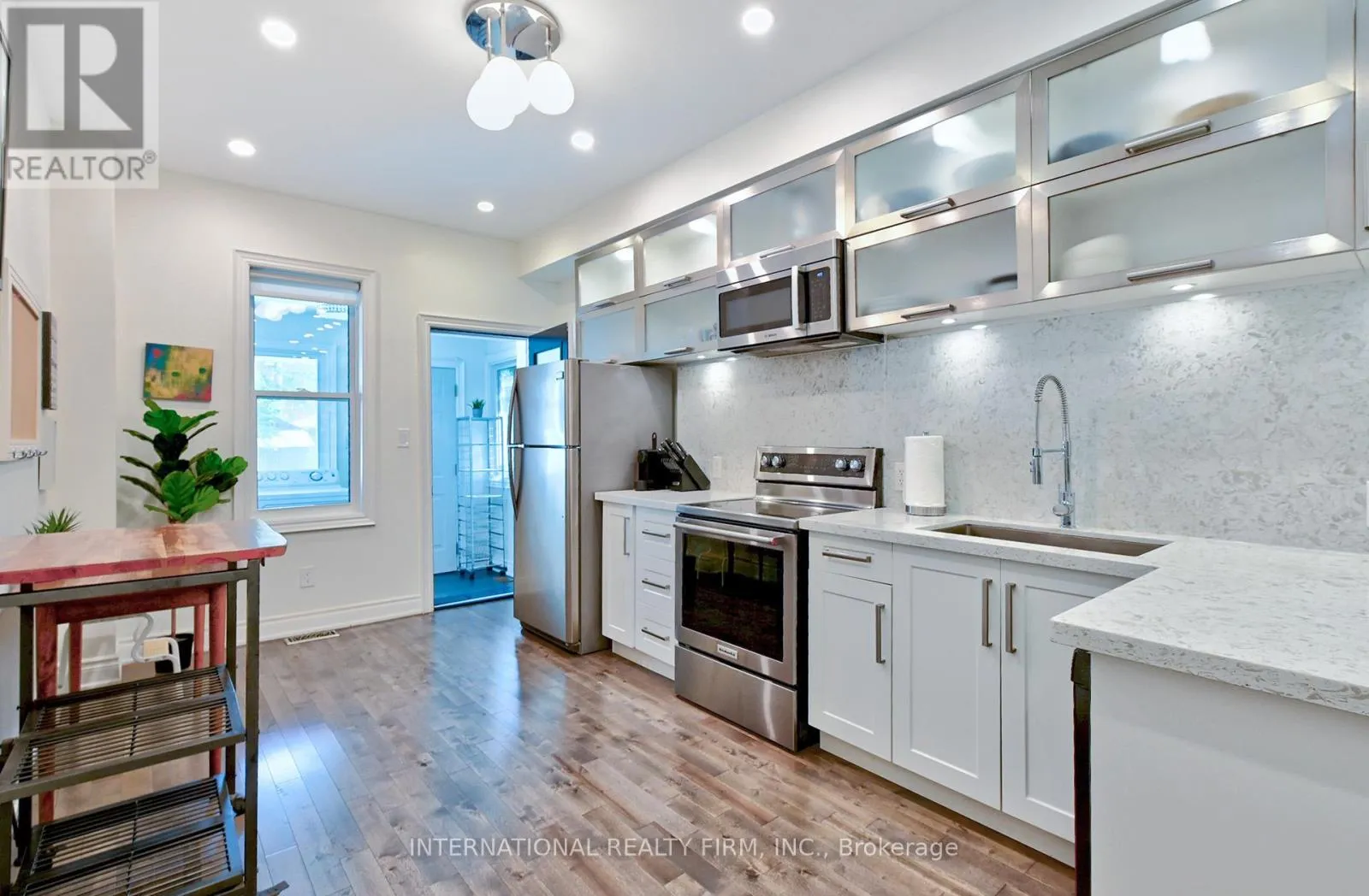 Cross Streets: Barton Ave & Bathurst St. ** Directions: Follow GPS, street is one way. Located in the heart of Seaton Village/Annex, this charming all-brick 2-storey semi offers style, comfort, and a top-tier neighbourhood. A rare find, the home includes a private garage and a bright, open main floor with high ceilings, pot lights, hardwood floors, and a modern powder room.The updated chef's kitchen features quartz counters, matching backsplash, stainless steel appliances, and a rear mudroom with laundry for added convenience. Upstairs, enjoy three sun-filled bedrooms and two renovated bathrooms, including a primary ensuite.The finished basement adds flexible living space with potential for a separate entrance. Nestled on a quiet, tree-lined street, yet just steps to Bloor St. W., cafés, shops, transit, and Palmerston Ave Jr. PS (98 Transit Score, 92 Walk Score). Minutes to UofT, Yorkville, parks, and top French immersion schools.Move-in ready with future upside, including laneway housing potential like neighbouring homes. A rare opportunity in one of Toronto's most family-friendly communities. Some furniture may also be included. (id:27476)