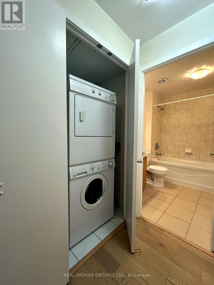 York & Bremner Maple Leaf Square - Urban Living at Its Best in the Heart of Toronto: This 1-bedroom, 1-bathroom suite offers a spacious open-concept layout with 9' ceilings, laminate flooring & a large balcony showcasing a CN Tower view. The kitchen is equipped with stainless steel appliances including a range with oven, over-the-range microwave with range fan, refrigerator & dishwasher, creating a practical & stylish space for daily living. In-suite laundry with washer & dryer adds everyday convenience, while the included storage locker provides extra room to keep things organized. Residents enjoy premium amenities such as a 24-hour concierge, indoor & outdoor pools, a fully equipped gym & a business centre ideal for working remotely. With direct access to Scotiabank Arena, boutique hotels, fine dining, a sports bar, TD Bank, LCBO & Longos located within the same complex, everything you need is just steps away. Commuting is effortless with direct building access to the PATH leading to Union Station & a short walk to the Financial District, CN Tower, Rogers Centre & Harbourfront. Book your showing to visit & see how this exceptional suite connects comfort, convenience & city energy all in one place. (id:27476)