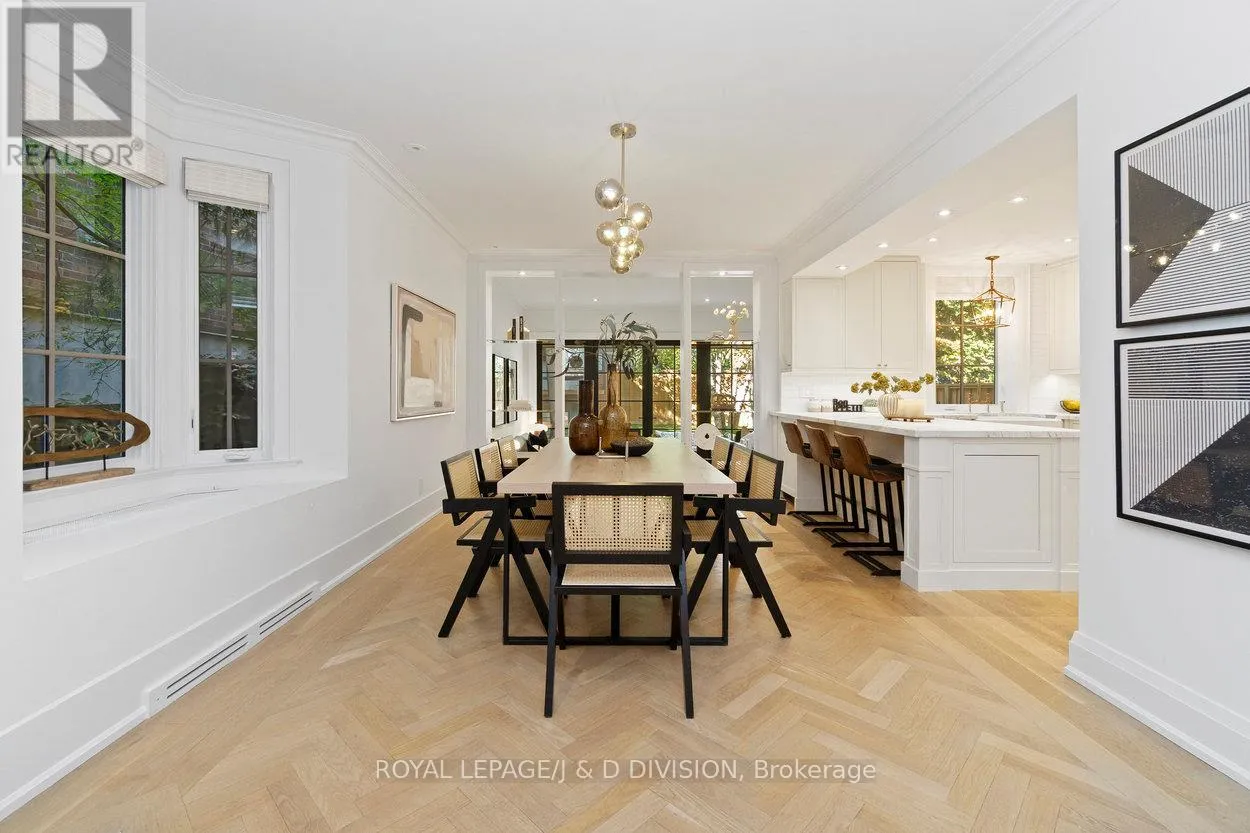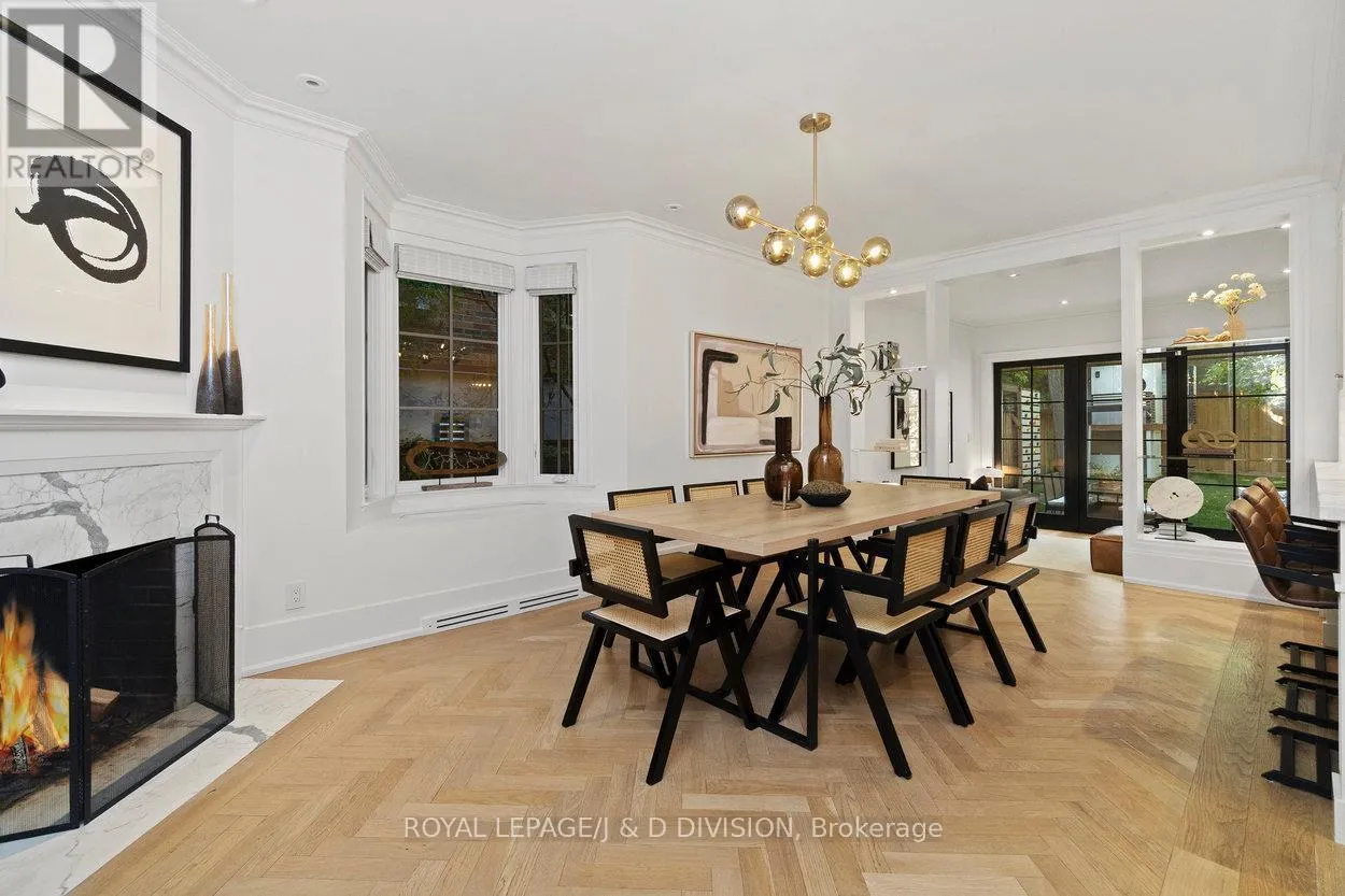 Cross Streets: Avenue and Balmoral. ** Directions: East on Balmoral from Avenue or West on Balmoral from Yonge. Located in the heart of Deer Park, 146 Balmoral Avenue is a rare blend of timeless sophistication and modern comfort. This detached four-bedroom residence was completely reimagined with exceptional craftsmanship, offering approximately 2,305 square feet above grade plus a finished lower level, for a total of 3,407 square feet of beautifully designed living space. The main floor flows through elegant formal rooms with statuario marble fireplaces and white oak hardwood floors, into a custom chef's kitchen featuring La Cornue, Thermador, and Miele appliances. Statuario marble counters pair beautifully with the clean-lined backsplash and bespoke cabinetry, creating a space that is both functional and refined. The adjoining family room is warm and inviting, with radiant-heated floors and French doors that open to a private, landscaped garden with a nearly maintenance-free turf, a children's play area with climbing wall, sandbox, and clubhouse, and a large garden shed surrounded by mature trees. Upstairs, the primary suite offers a wood-burning fireplace, dressing room, and spa-inspired ensuite, while French doors from the bedroom lead to a peaceful treetop terrace. A second bedroom and a five-piece main bath complete this level, with two additional bedrooms above. The lower level includes a recreation room, powder room, laundry, and storage. With legal front-pad parking, this home is steps to top schools, parks, transit, and Yonge Street amenities. (id:27476)