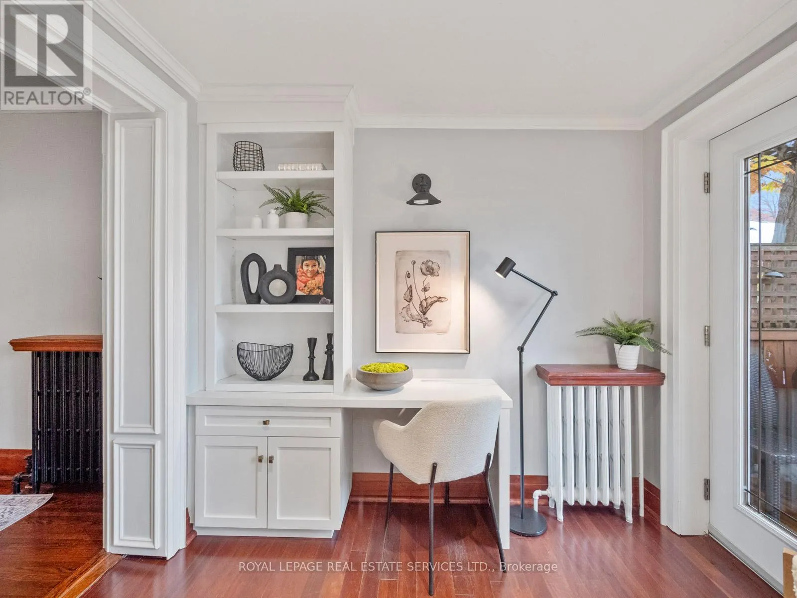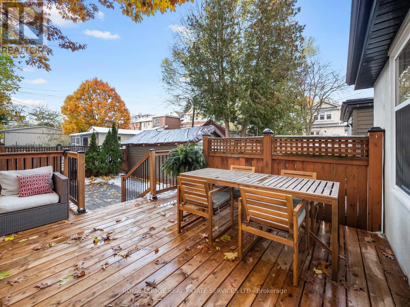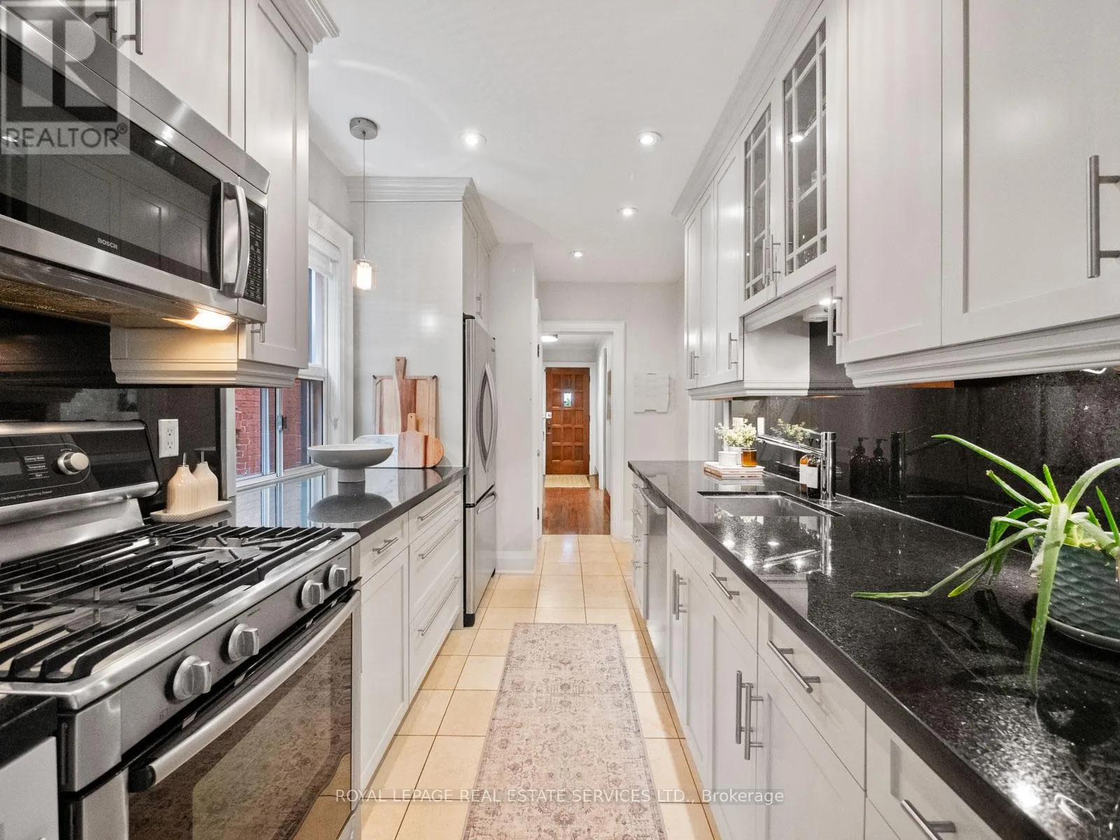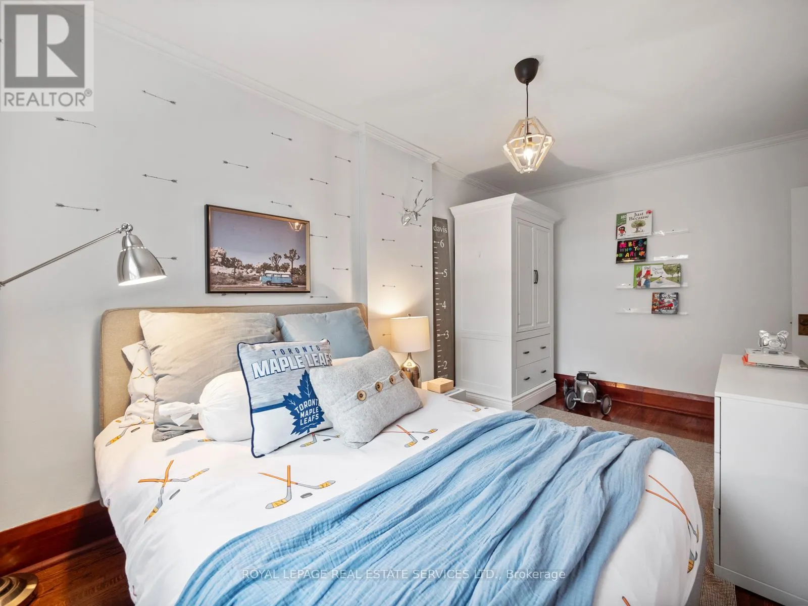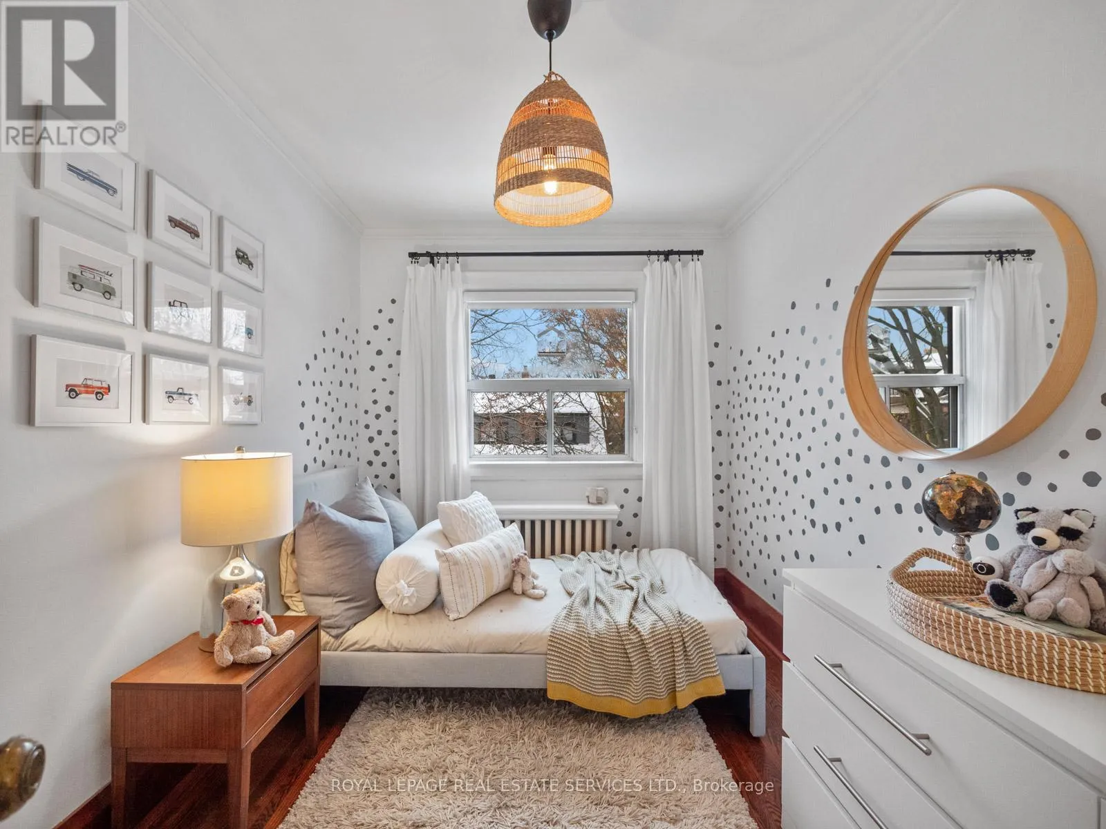 Cross Streets: St. Clair And Christie. ** Directions: South of St Clair, East of Alberta. Welcome to this contemporary detached in the heart of coveted Wychwood, renowned for its highly rated schools, vibrant community, and charming tree-lined streets. This 3+1 bedroom, 2-bathroom home combines modern comfort with timeless character in one of Toronto's most sought-after neighbourhoods. Step inside to a bright and spacious main floor showcasing hardwood floors, picture windows, a cozy gas fireplace. The inviting front porch is a standout feature, offering wonderful privacy. It's the perfect spot for your morning coffee, with ample room for an outdoor sectional sofa, creating an effortless extension of the home's living space. The custom kitchen is designed for both function and style, featuring heated floors, Bosch stainless steel appliances, granite countertops, and ample cabinetry. A main floor family room offers custom built-in shelving and a desk-perfect for working from home or family living. Upstairs, the primary bedroom impresses with hardwood floors and his-and-hers closets with custom organizers. The renovated main bathroom features heated floors and a glass shower/tub enclosure. The lower level offers flexibility with a lrg rec room, 4th bedrm, laundry, 3-piece bathroom, and built-in storage. With two entrances, it's perfectly suited for a guest or in-law suite. Walk out to a beautifully landscaped backyard complete with perennial gardens, a new deck, and a gas BBQ hookup; ideal for entertaining, relaxing, and summer dining. The rear patio provides plenty of space for play and features a moveable fence to easily accommodate the parking. Located just steps from Wychwood Barns, the Saturday Farmers Market, St. Clair shops and restaurants, Hillcrest Park, and McMurrich & Winona Public Schools, and just a short stroll to the St. Clair TTC streetcar line, connecting you within minutes to the rest of the city. This home truly has it all, just move in and enjoy the best of urban living in one of Toronto's most beloved communities. (id:27476)