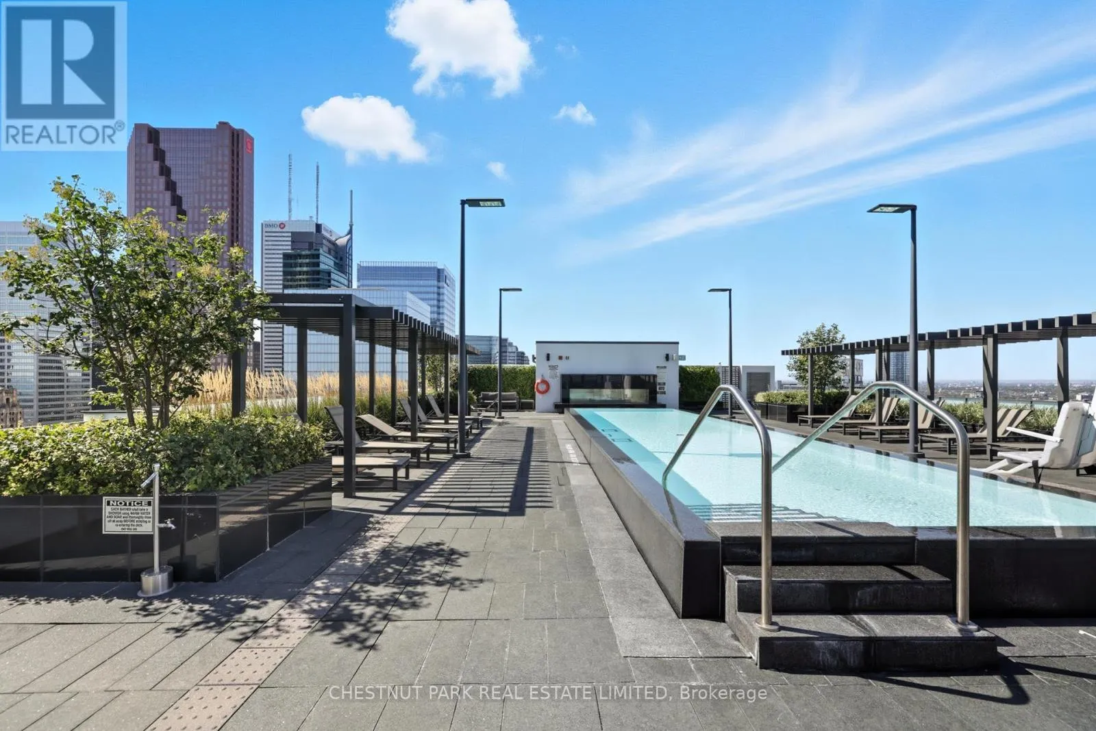 Yonge & Richmond This lower penthouse 1-plus-den suite offers the perfect blend of style and function at the prestigious 20 Lombard. Located in a quiet, yet central pocket steps from Yonge and Richmond, this is your chance to own a piece of Toronto's most dynamic neighbourhood. The thoughtfully designed, open-concept living and dining area is an entertainer's dream, flowing effortlessly into a modern gourmet kitchen. It features sleek integrated appliances, making it as beautiful as it is practical. The tranquil primary bedroom offers a private retreat, complete with a spa-like ensuite. The separate den is a versatile bonus, perfect for a home office, a cozy media room, or a private space for guests. The balcony provides an expansive view! Great Gulf has built something that Toronto has longed for, a condo building community like this, typically reserved for cutting-edge thinkers found in New York City and Brooklyn, where you will find new builds like this. The list of benefits is simply incredible, including a stunning rooftop pool and terrace with panoramic city views, a state-of-the-art gym, a stylish party room, and a concierge. In fact, there is a bonus of a second outdoor pool, party room, yoga room, work centre, BBQs, kitchenette, billiards, lounge, and gym that this unit gets access to on the sprawling 5th floor. This is an ideal condo for a young professional seeking a sophisticated urban retreat or an astute investor looking for a high-demand property. Its prime location provides unparalleled access to everything you need: a short walk to the St. Lawrence Market, the Distillery District, the bustling Financial and Entertainment Districts, the Eaton Centre, the city's vast PATH system, and the TTC subway. This is more than just a condo - it's a lifestyle. Don't miss this opportunity to live at the heart of it all. (id:27476)