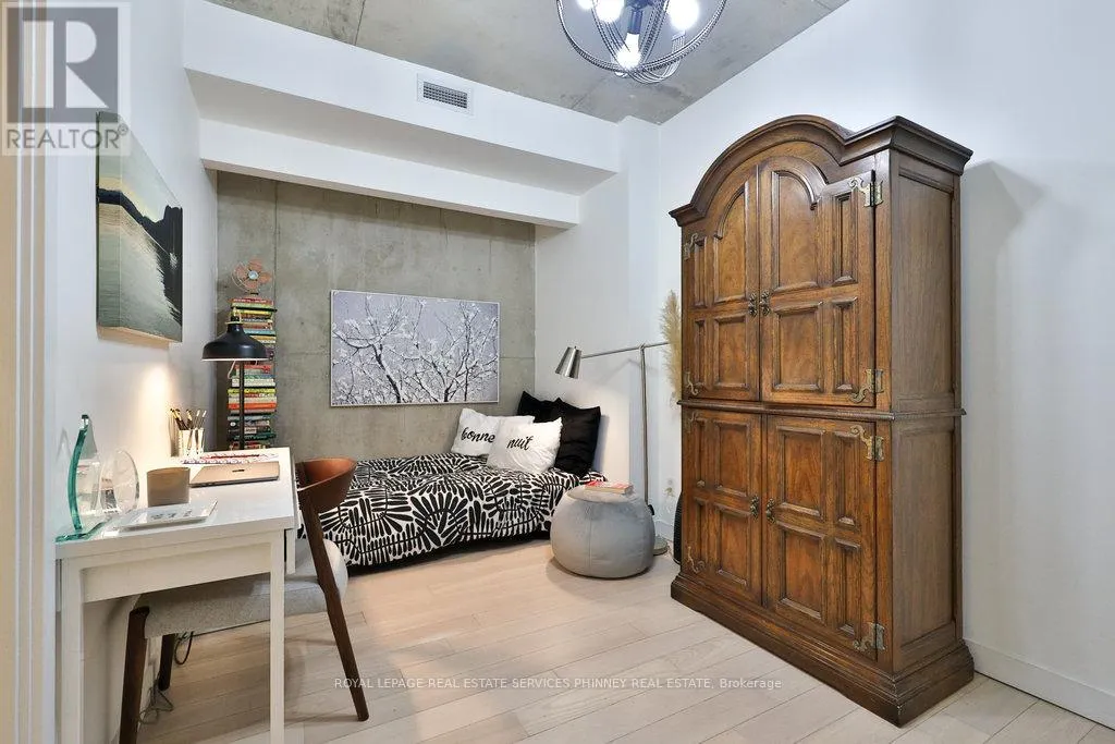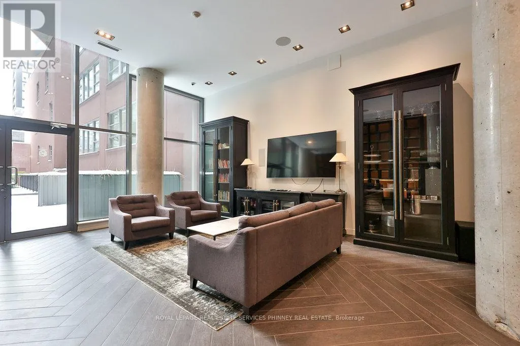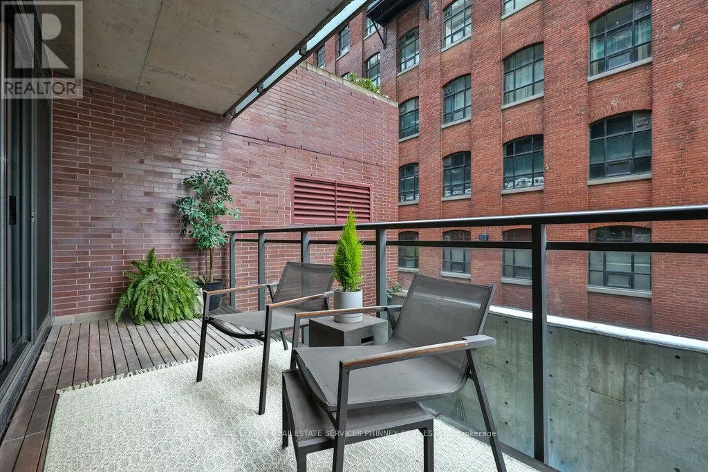 Broadview Ave & Queen St S Discover modern sophistication in this meticulously designed 2-bedroom, 2 bath unit located in the highly sought-after Ninety Lofts. Spanning over 1,000sqft, this stunning residence combines industrial charm with high-end finishes and thoughtful design details throughout.Step inside to find soaring ceilings, exposed concrete walls and ceilings, and floor-to-ceiling windows that flood the space with natural light. The open-concept living and dining area is anchored by a custom fireplace and entertainment unit, creating the perfect setting for relaxation or entertaining. The chef's kitchen features stainless steel appliances, a LG gas stove, LG Mircowave, Bosch dishwasher, and a large island ideal for hosting guests.The primary bedroom offers a serene retreat with a spa-inspired ensuite featuring a soaker tub and luxurious finishes. Enjoy seamless indoor-outdoor living with a terrace spanning the width of the unit, complete with a natural gas hookup. Additional highlights include hardwood floors, internet included in maintenance fees, and access to top-tier amenities such as a courtyard terrace, party room, and concierge service.Perfectly situated in the heart of South Riverdale, this vibrant neighbourhood offers a 10/10 location-just steps from Queen Street East's cafes, restaurants, and boutiques, as well as parks, trails, and transit (TTC and future Ontario Line). Easy access to the DVP and Gardiner Expressway ensures seamless connectivity across the city.Urban living at its finest-own a piece of Toronto's most desirable boutique loft lifestyle at The Ninety. LG Gas stove and mircowave replaced 6 months ago. (id:27476)