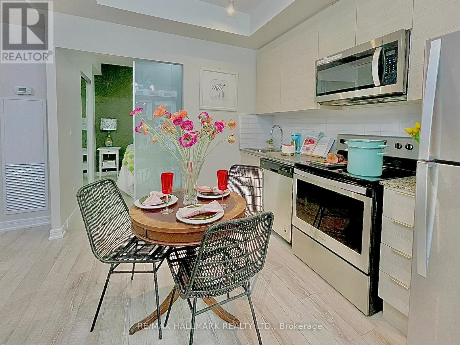 Cross Streets: Bayview/Sheppard. ** Directions: North. WOW- Wow- Wow Wow - If you are starting out in life and wanting to stop renting and have an opportunity to own your own private oasis? Then, you will not find anything like this, an impeccable perfect layout, Junior 1 bedroom with 1 bathroom, with full size kitchen with stainless steel appliances, living and dining combo, good size private balcony for fresh air, ensuite laundry and so much more. This home is move in ready, fully styled with a touch of modern contemporary designed, bright new lighting fixtures, Freshly painted with focal point walls, This place is ready for someone who wants a cozy place to call home and not break the bank. OH YEAH, OH WAIT, WHAT??? IT INCLUDES ONE (1) PARKING SPOT AND ONE (1) LOCKER AT THIS PRICE? Whoaaa... this is an absolute GREAT FIND for the budget. Oh yes hang on did we mentioned that the current interest rates and the fact that maybe Investor market is out of the question? Well, I can tell you that this home is a good fit for all. (1) An Investor looking for a Solid Rental Income property with growth potential later on. (2) A move up from Renting to Owning 1st time home buyer. (3) Mom and Dad helping their young adults to Start owning and start living their own start up adulting dream home. (4) An Elderly downsizers who would rather live in a Luxury Condo instead of an Assisted Living Facility and still call this place home. This place with Parking and Locker will not disappoint your most discerning buyers. Great location, close to everything, a Commuter delight between Bayview and Bessarion Subway Station, TTC everywhere, Hwy 404-401 and so much more. Bayview Village Mall within 300 meters, Hospitals, Place of Worship, Multi cultural Dining Options and Groceries within 2-6 km radius. Possibilities are ENDLESS...SEE, potentials.. book a showing today! (id:27476)
