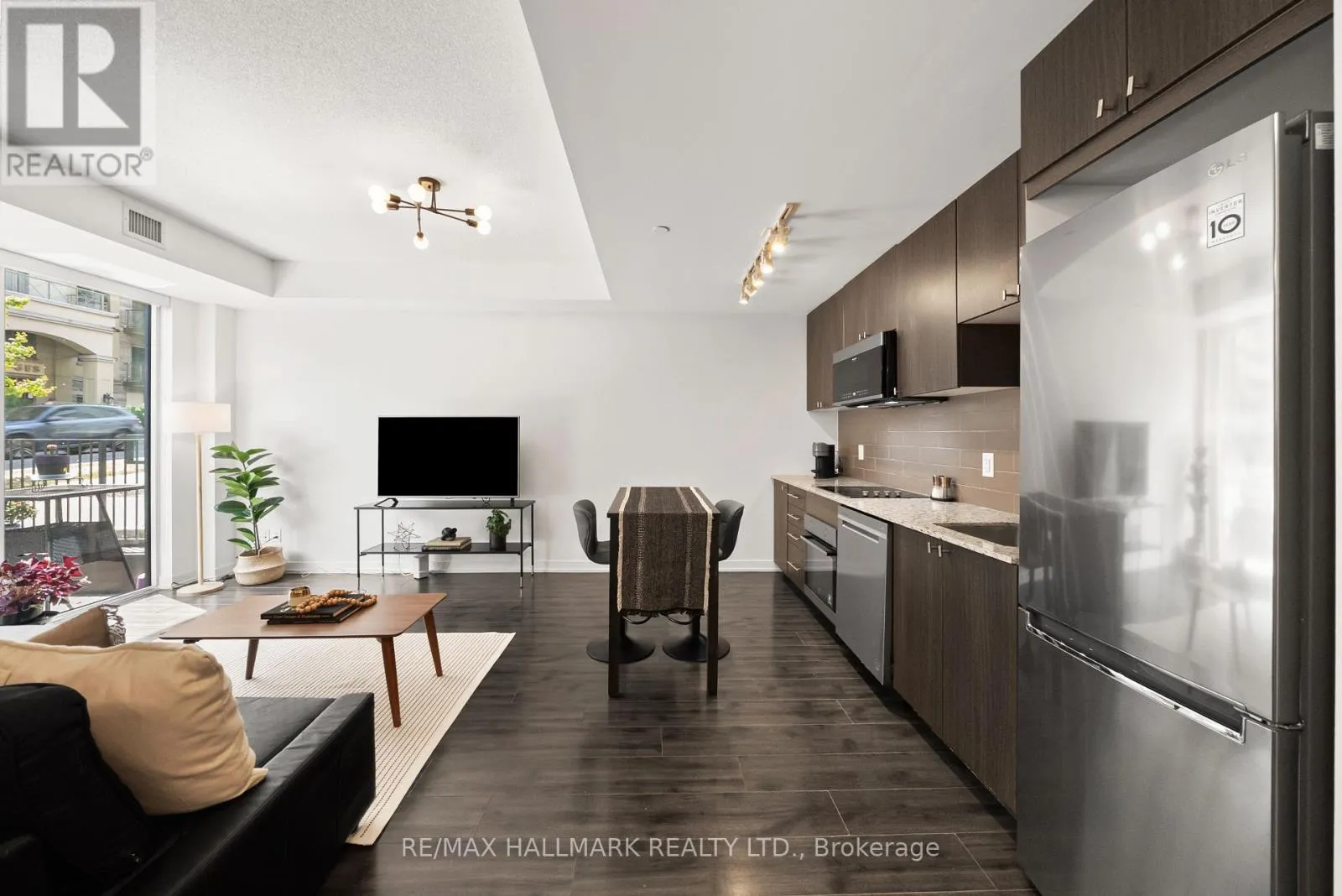 Cross Streets: Bayview & Sheppard. ** Directions: SE of Bayview & Sheppard. Step into easy living with this spacious and beautifully appointed 2-bedroom, 2-bathroom townhome, with parking and two storage lockers(!), nestled in the heart of Bayview Village! Boasting 1133sqft, this bright and spacious urban retreat offers the ideal combination of modern comfort, stylish finishes, and functional design, in a location that has it all. Step inside to discover an open-concept main floor flooded with natural light from floor-to-ceiling windows and gleaming (and durable) vinyl wood floors, creating an inviting atmosphere perfect for both everyday living and entertaining guests. The open modern kitchen features sleek stainless steel appliances (dishwasher, microwave, and fridge in 2023), elegant stone counters, a chic tile backsplash, and ample cabinetry. A walk-in storage room adds an extra layer of convenience rarely found in condo living, making organization effortless. Upstairs, the generous primary bedroom retreat boasts floor-to-ceiling windows with roller shades, a walk-in closet and a private 4-piece ensuite, offering a peaceful escape at the end of the day. The second bedroom features a double closet and a separate 3-piece bathroom, making the layout perfect for families or guests. Enjoy a private and fully fenced terrace with patio stone, privacy trees, and a gas BBQ hookup with South exposure. Includes indoor and quick access to your underground parking space and two storage lockers. Get the best of both worlds with the carefree and convenient lifestyle of a condo paired with the space and flexibility of a townhouse! Amazing building amenities include concierge, gym, rooftop terrace, party room, visitor parking, bike storage and more! Situated just steps from Bayview Village Shopping Centre, TTC subway, parks, schools, dining, cafes, Yonge & Sheppard amenities, and major commuter routes, this location is as convenient as it is prestigious. (id:27476)