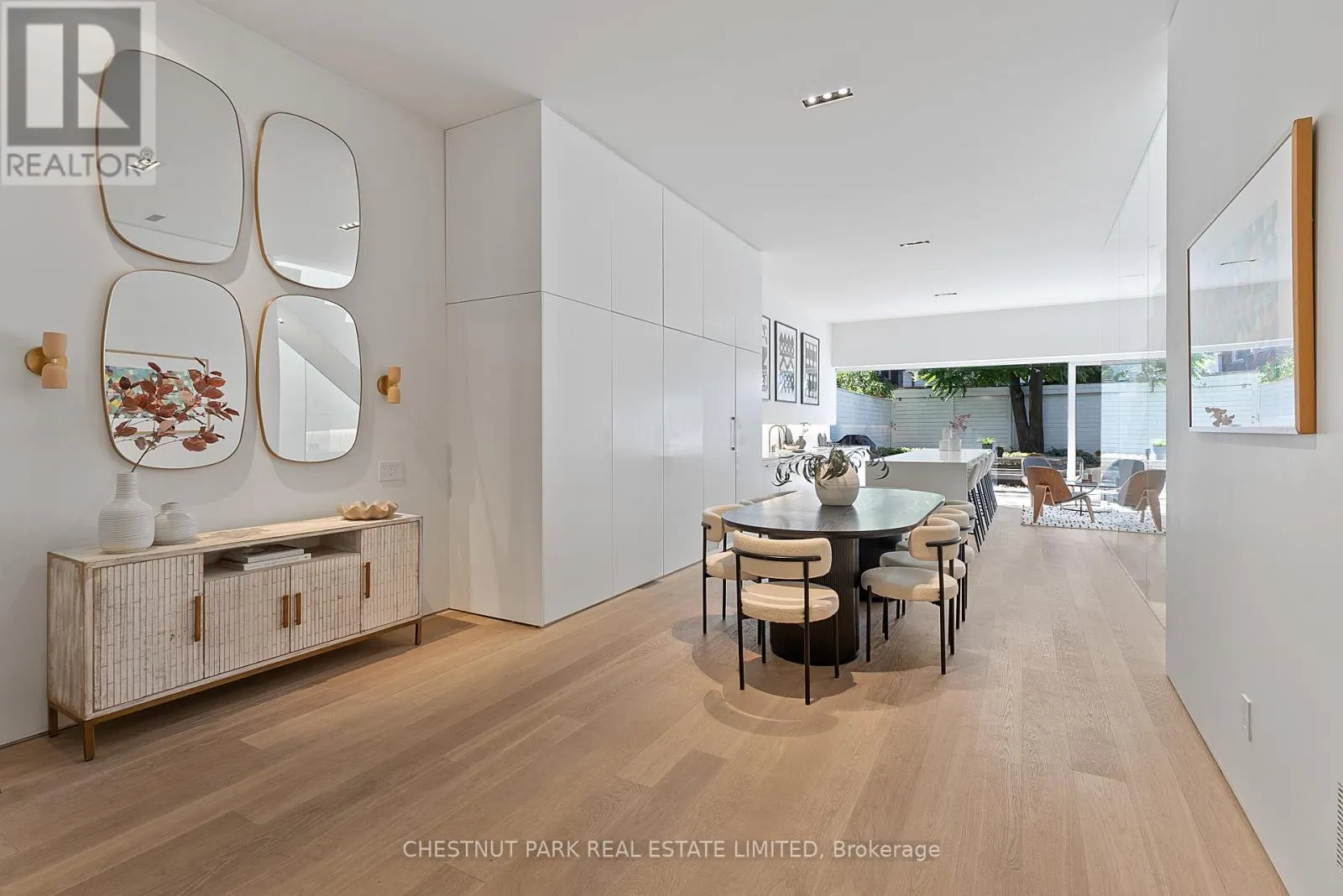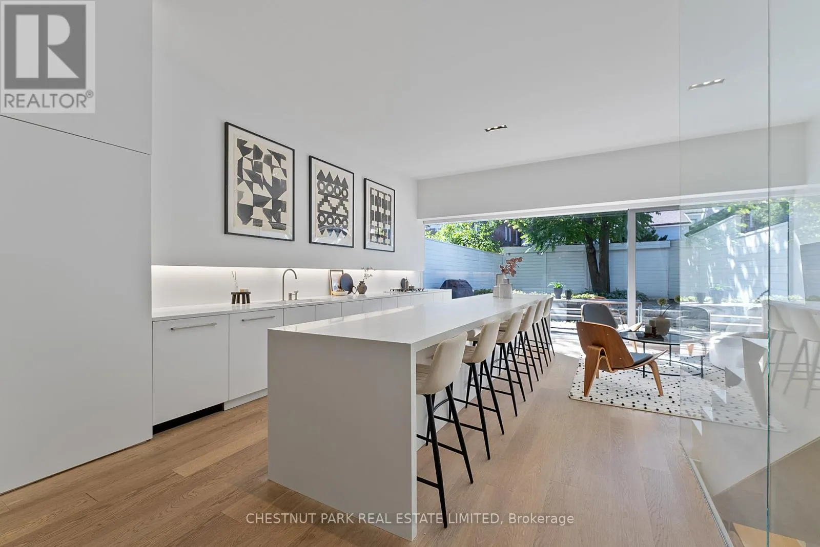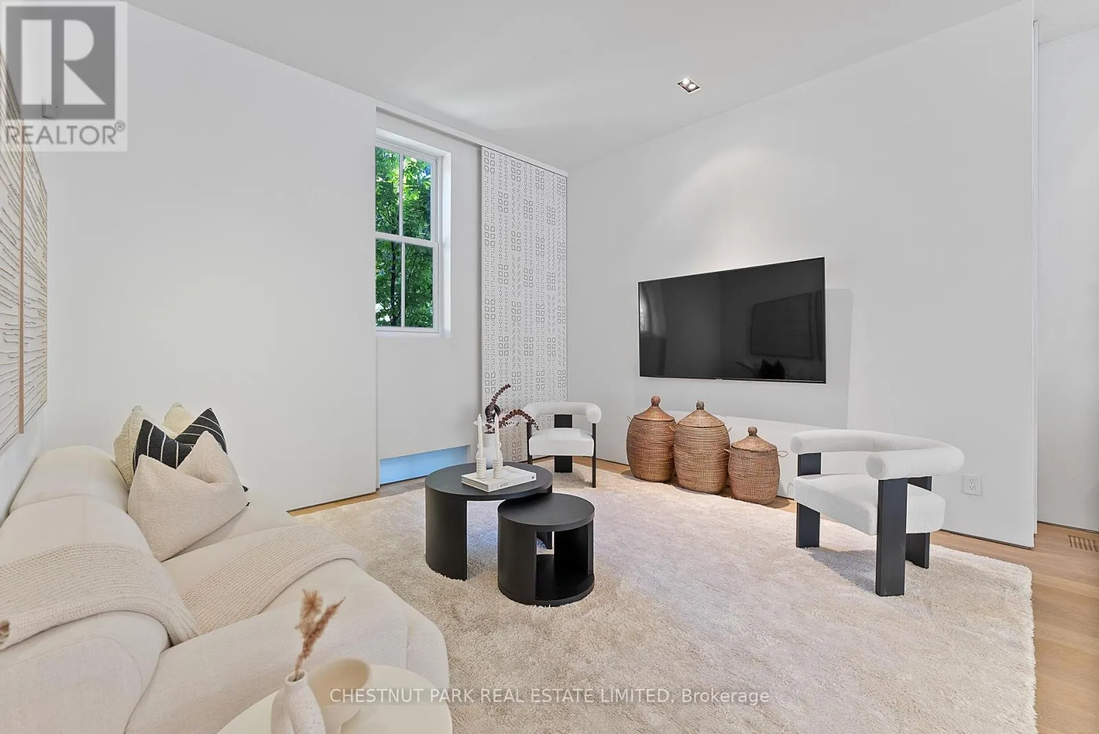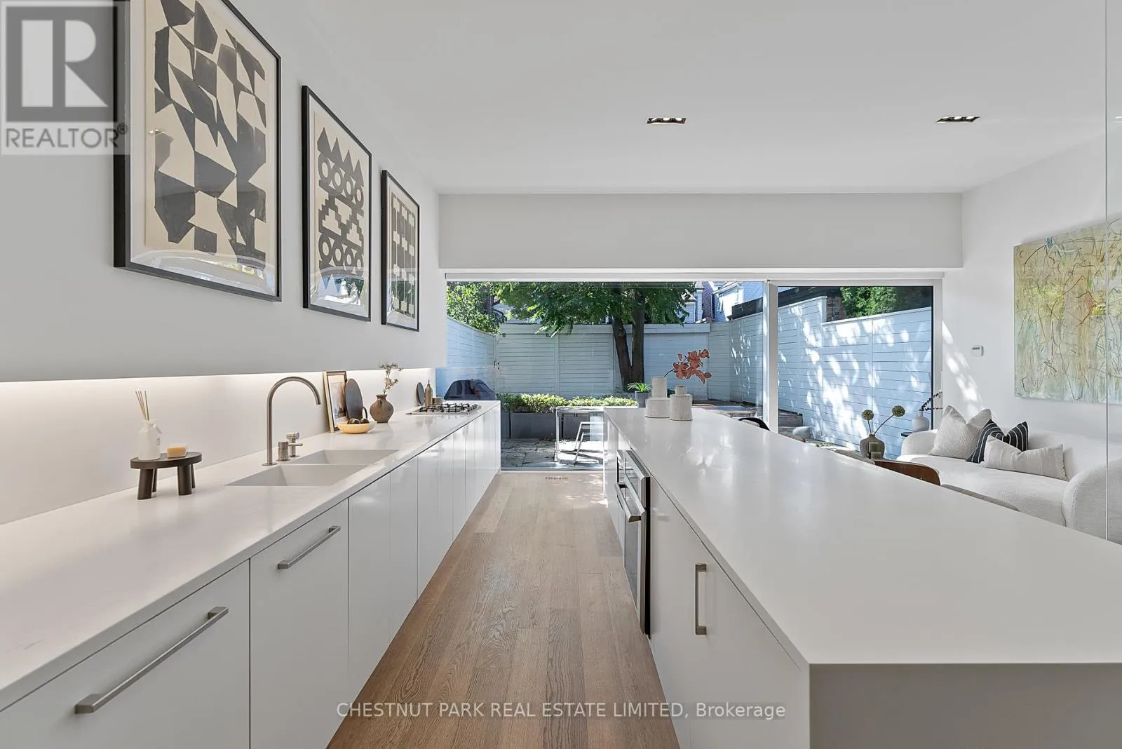 Cross Streets: Spadina & College. ** Directions: South of Willcocks St. Modern architecture meets effortless luxury at 82 Robert Street, a masterfully rebuilt residence tucked behind its preserved heritage façade in one of Toronto's most coveted neighbourhoods. Completely reconstructed from the ground up, the home was dug down to create soaring ceiling heights on both the main and second floors, and extensively soundproofed along the shared neighbour wall - a testament to its quality of construction and attention to detail. Reimagined by award-winning firm GH3 under the direction of Pat Hanson, this property has been featured in leading design publications for its bold yet livable aesthetic. A full-height glass wall floods the interior with natural light and blurs the line between indoors and out, opening to a private, landscaped backyard - an ideal extension of the main living area for both family life and entertaining. Wide-plank oak floors, custom millwork, and a sculptural chef's kitchen set an elevated tone across the open-concept main level. Upstairs, generously sized bedrooms feature bespoke built-ins, including a flexible room perfect for a home office, studio, or nursery. The lower level continues the thoughtful design with a wrap-around children's workstation, spacious recreation lounge, dedicated laundry room, powder room, and a private guest suite with ensuite bath. Private parking is discreetly positioned at the rear, accessed via the laneway for effortless convenience. A rare offering where architectural pedigree, structural integrity, and functional elegance converge - 82 Robert Street is a home designed to impress and built to be lived in. (id:27476)