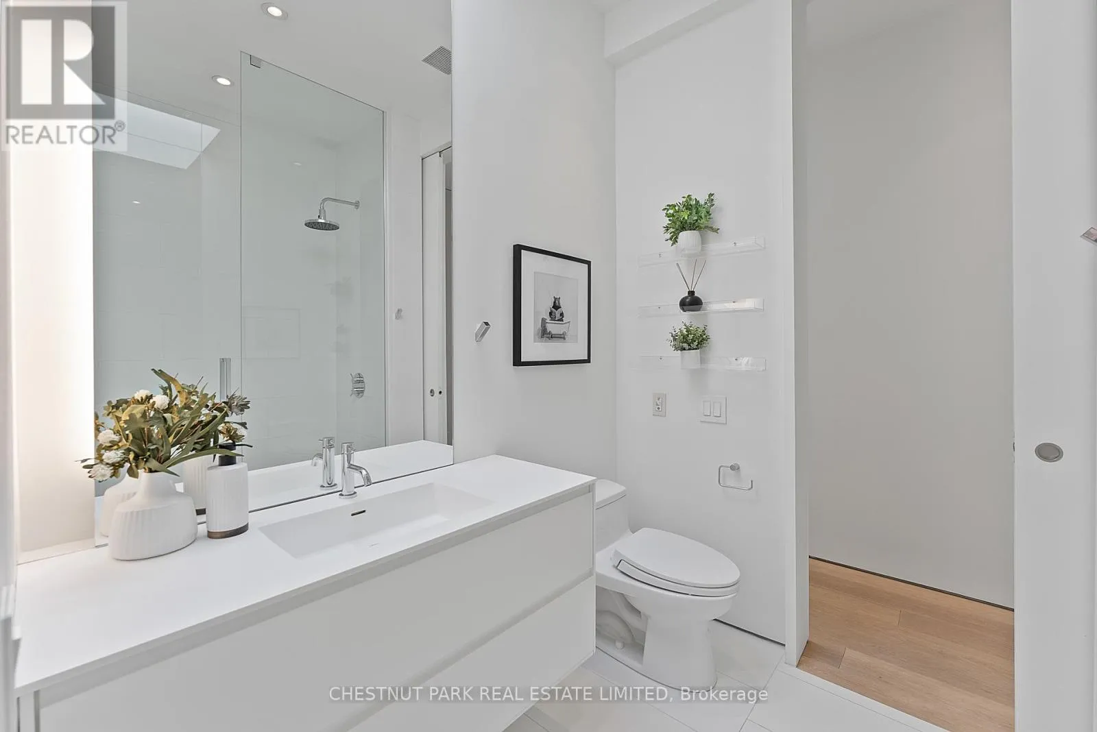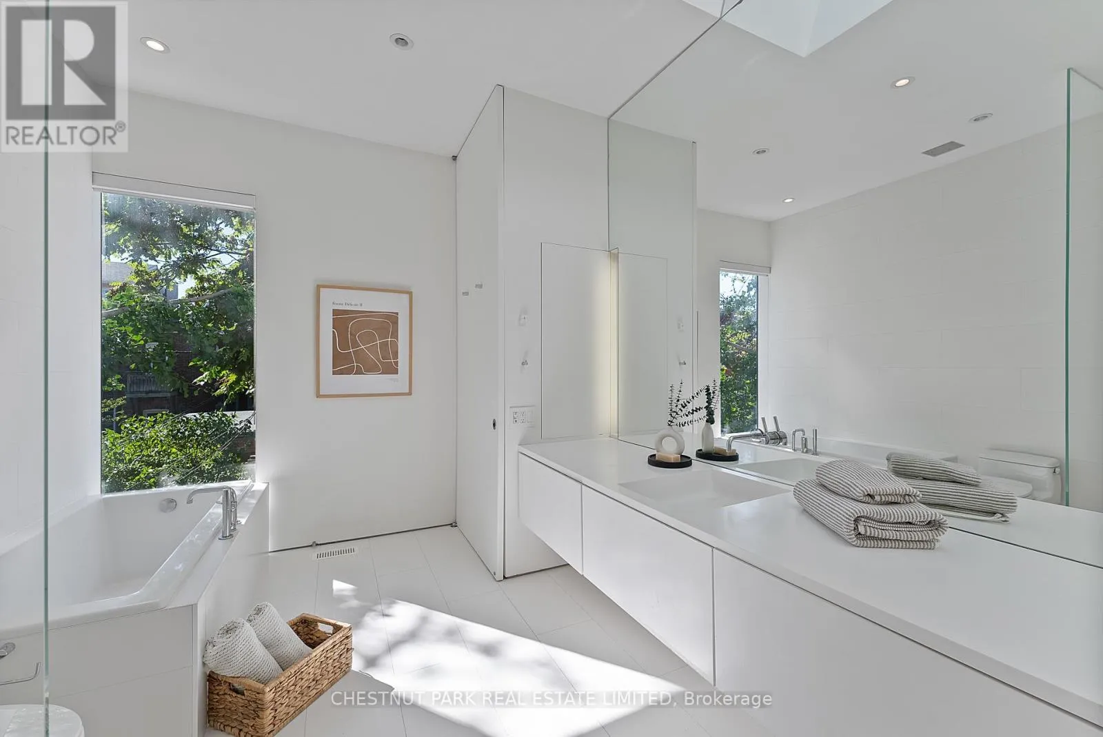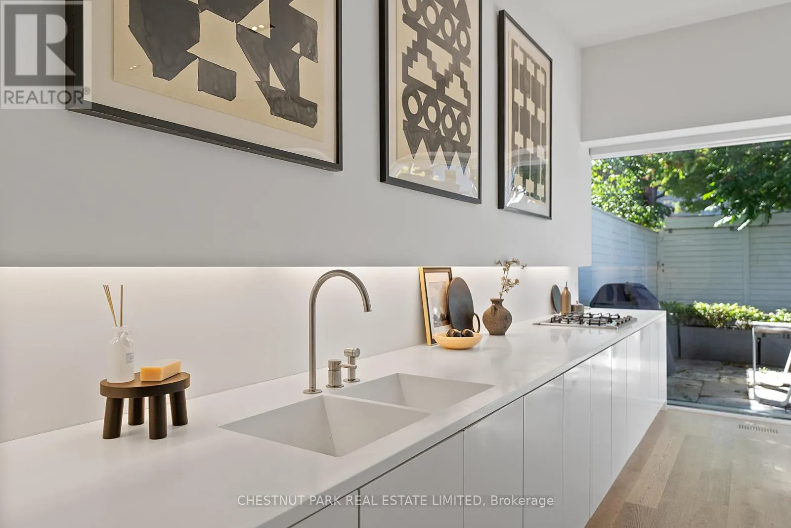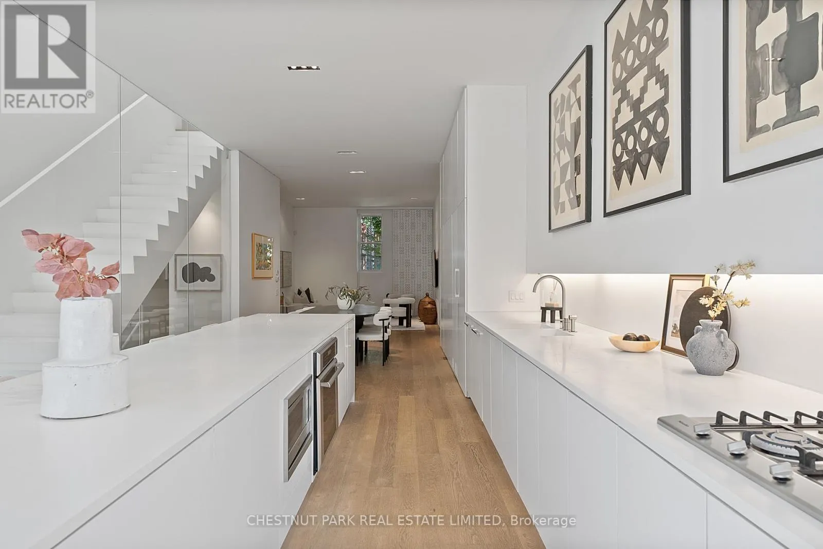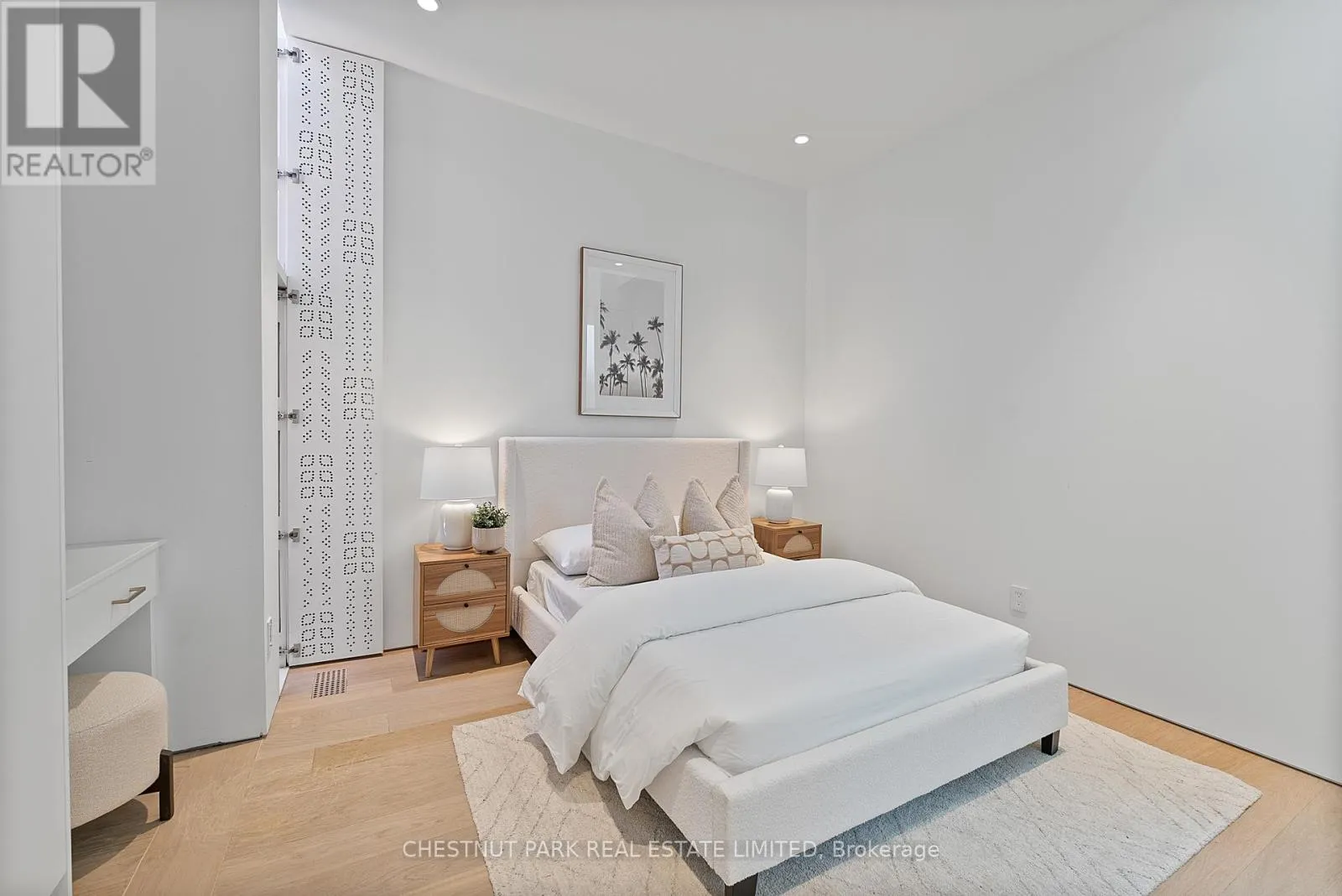 Cross Streets: Spadina & College. ** Directions: South of Willcocks St. Modern architecture meets effortless luxury at 82 Robert Street, a masterfully rebuilt residence tucked behind its preserved heritage façade in one of Toronto's most coveted neighbourhoods. Completely reconstructed from the ground up, the home was dug down to create soaring ceiling heights on both the main and second floors, and extensively soundproofed along the shared neighbour wall - a testament to its quality of construction and attention to detail. Reimagined by award-winning firm GH3 under the direction of Pat Hanson, this property has been featured in leading design publications for its bold yet livable aesthetic. A full-height glass wall floods the interior with natural light and blurs the line between indoors and out, opening to a private, landscaped backyard - an ideal extension of the main living area for both family life and entertaining. Wide-plank oak floors, custom millwork, and a sculptural chef's kitchen set an elevated tone across the open-concept main level. Upstairs, generously sized bedrooms feature bespoke built-ins, including a flexible room perfect for a home office, studio, or nursery. The lower level continues the thoughtful design with a wrap-around children's workstation, spacious recreation lounge, dedicated laundry room, powder room, and a private guest suite with ensuite bath. Private parking is discreetly positioned at the rear, accessed via the laneway for effortless convenience. A rare offering where architectural pedigree, structural integrity, and functional elegance converge - 82 Robert Street is a home designed to impress and built to be lived in. (id:27476)